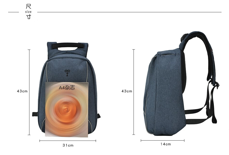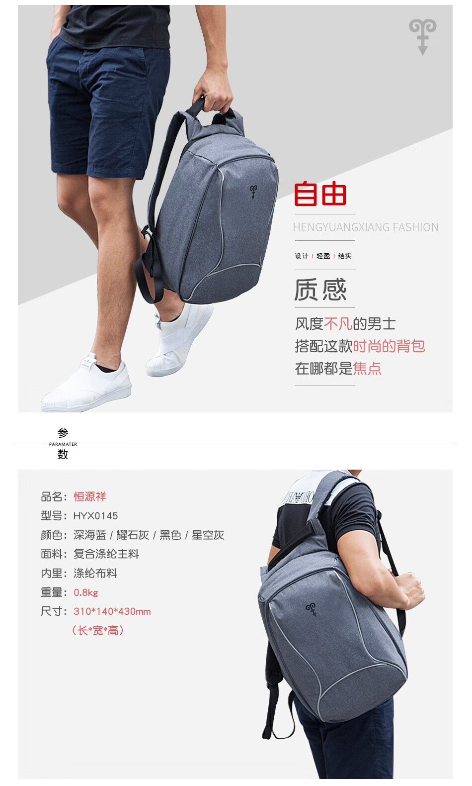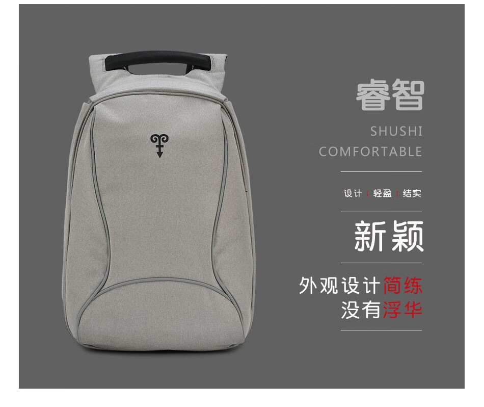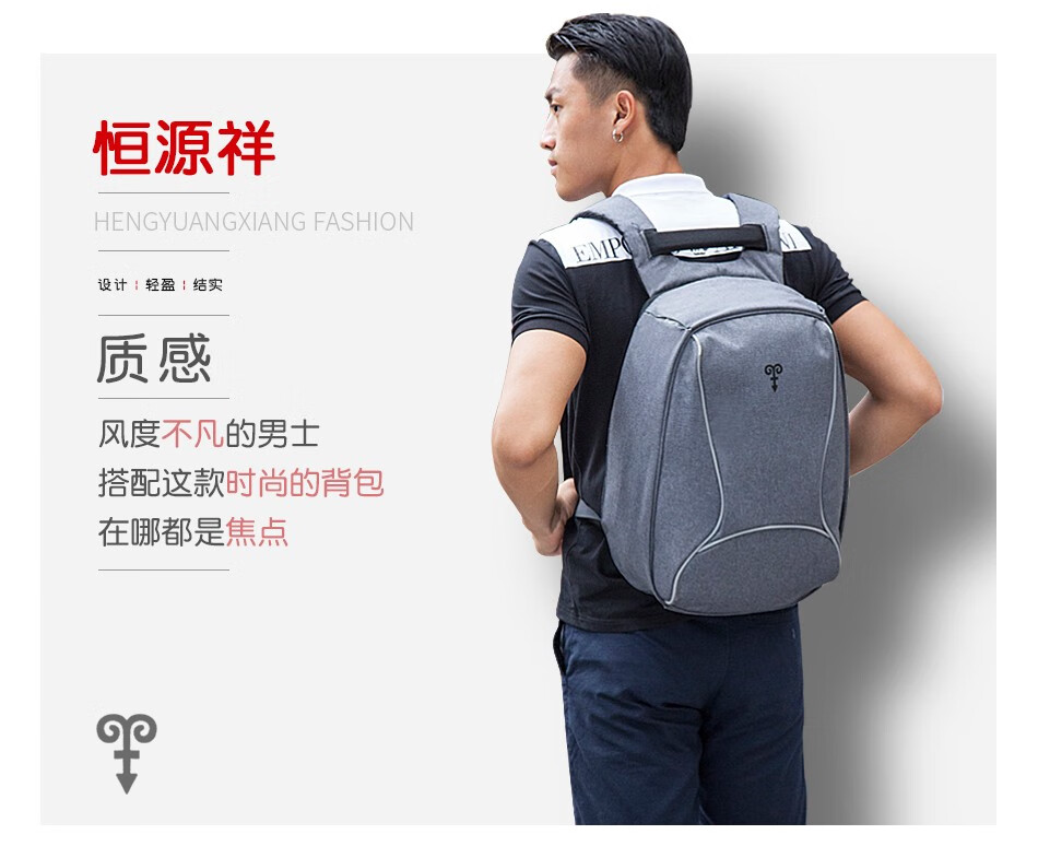 恒源祥(HYX)电脑双肩包防盗背包通勤包 HYX0145灰色
