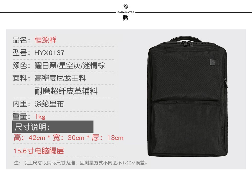 恒源祥(HYX)双肩包电脑包旅行包单肩包 HYX0137黑色