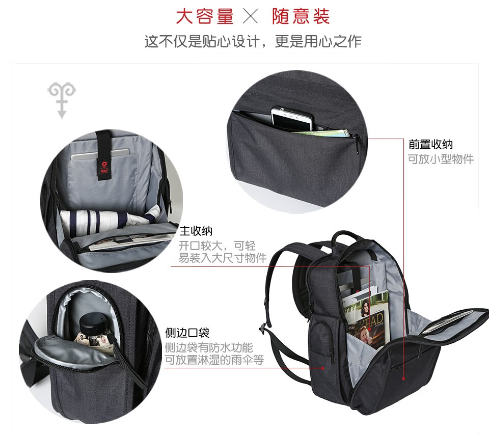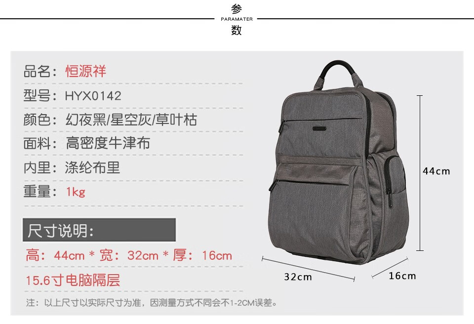 恒源祥(HYX)商务双肩包电脑包上班通勤背包 HYX0142灰色