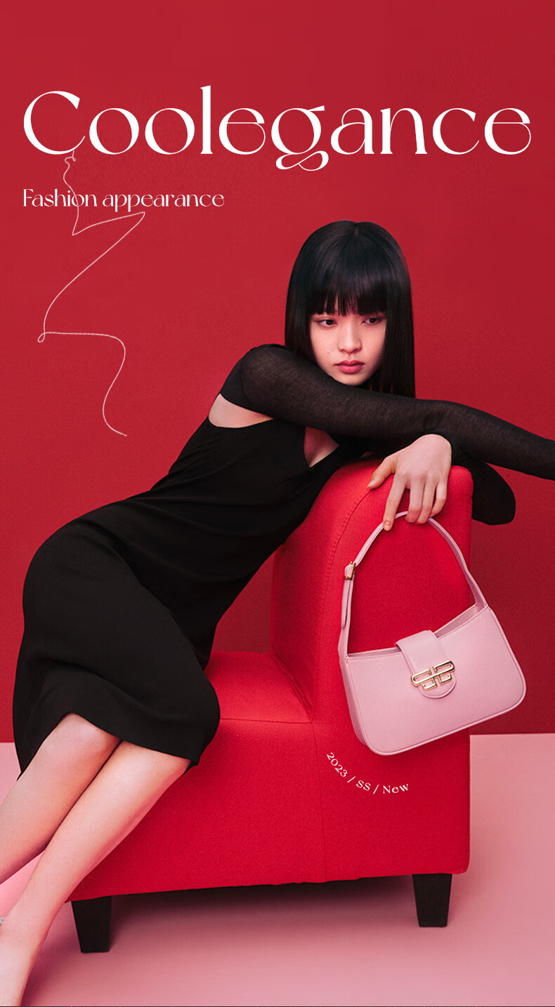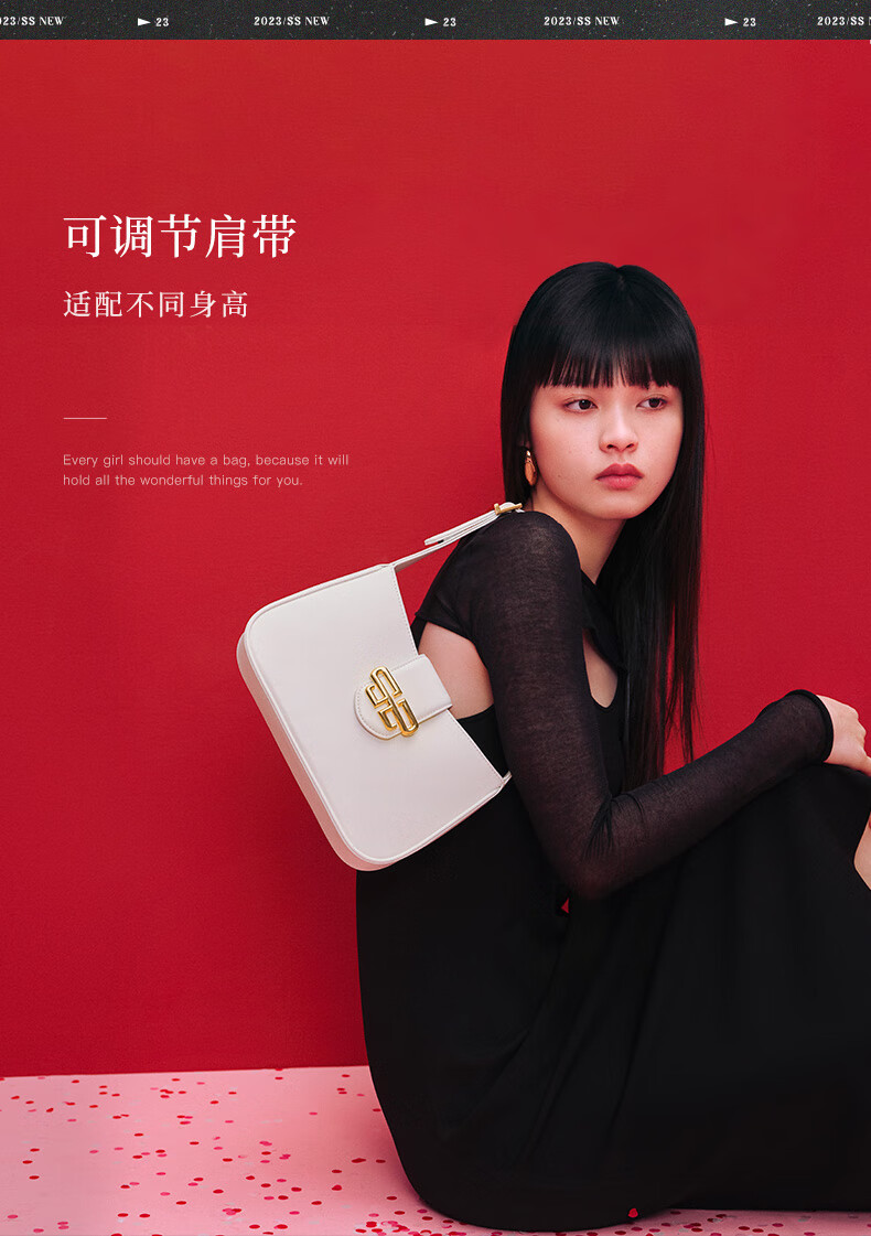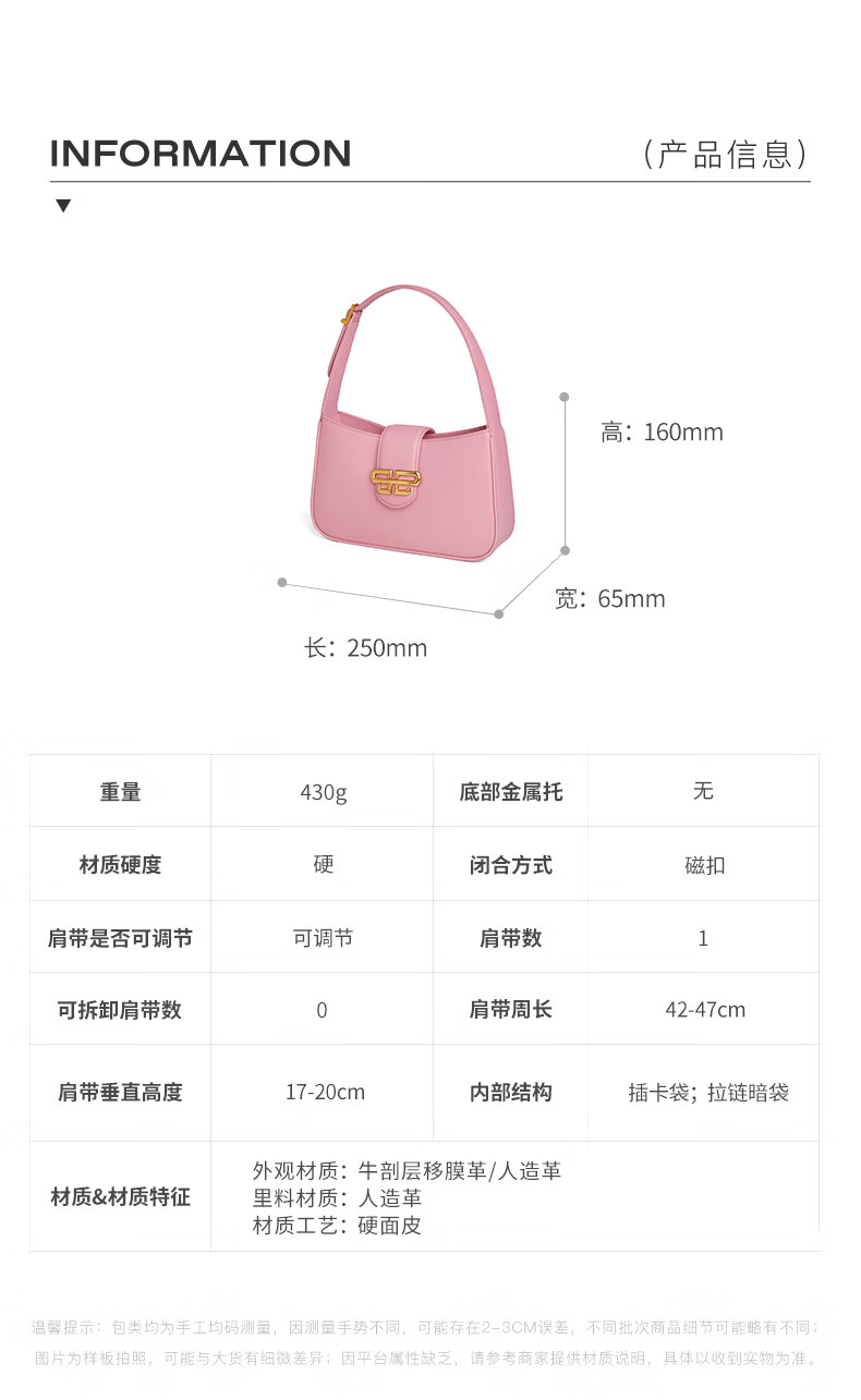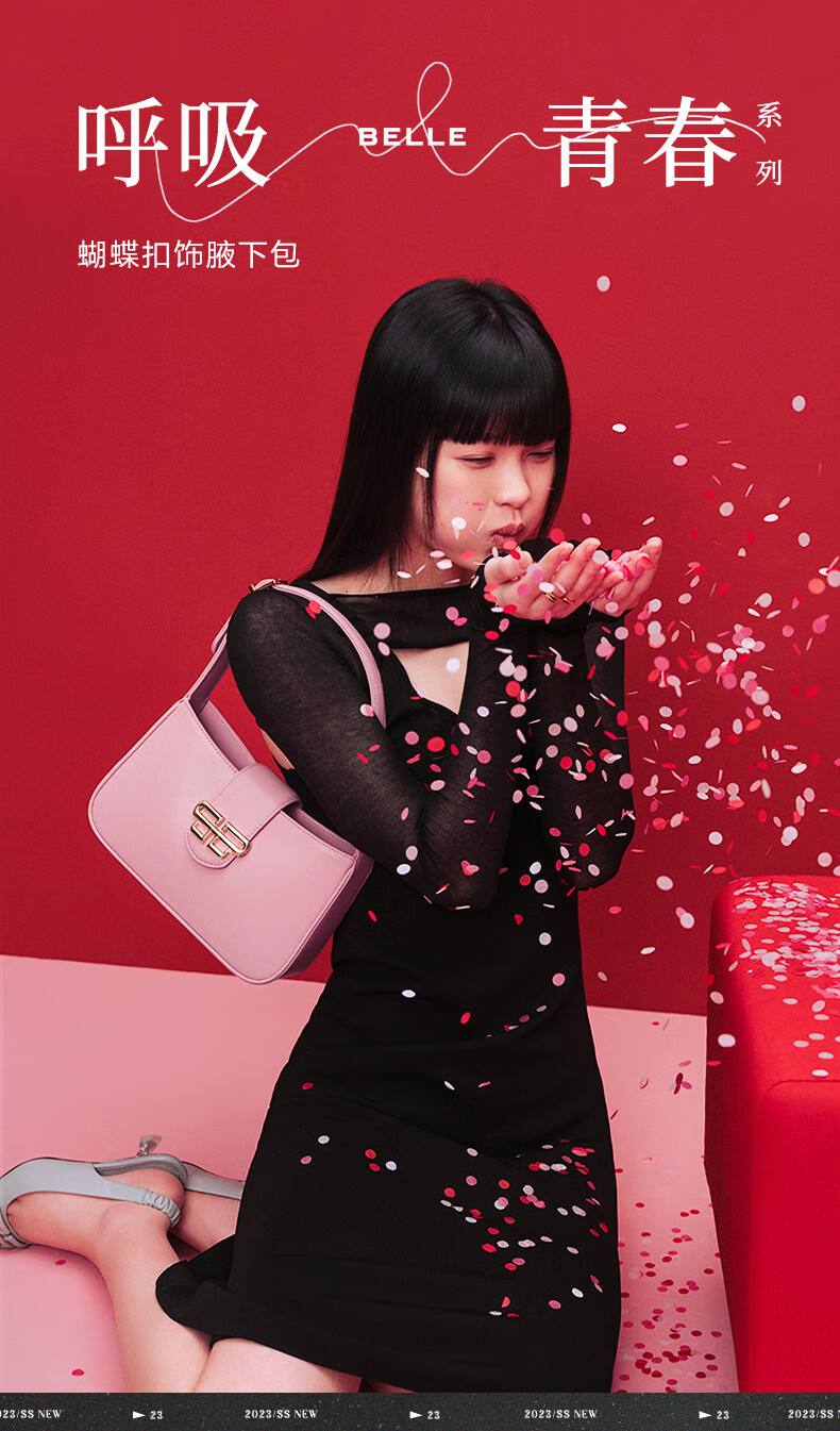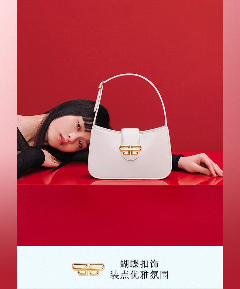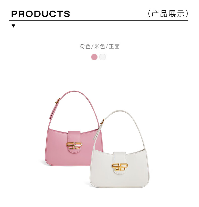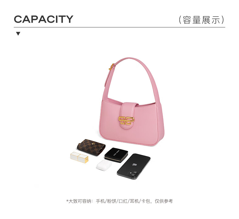 百丽包包女2023夏季新款简约质感轻奢腋下包X9060BX3 粉色 F