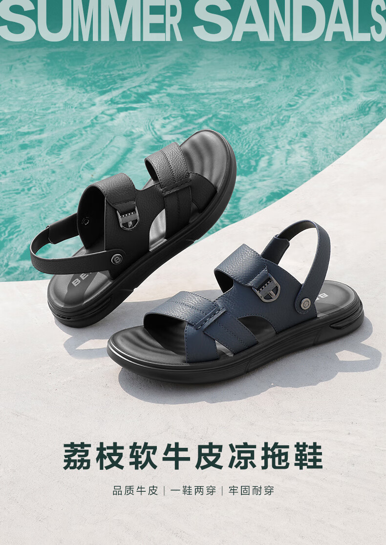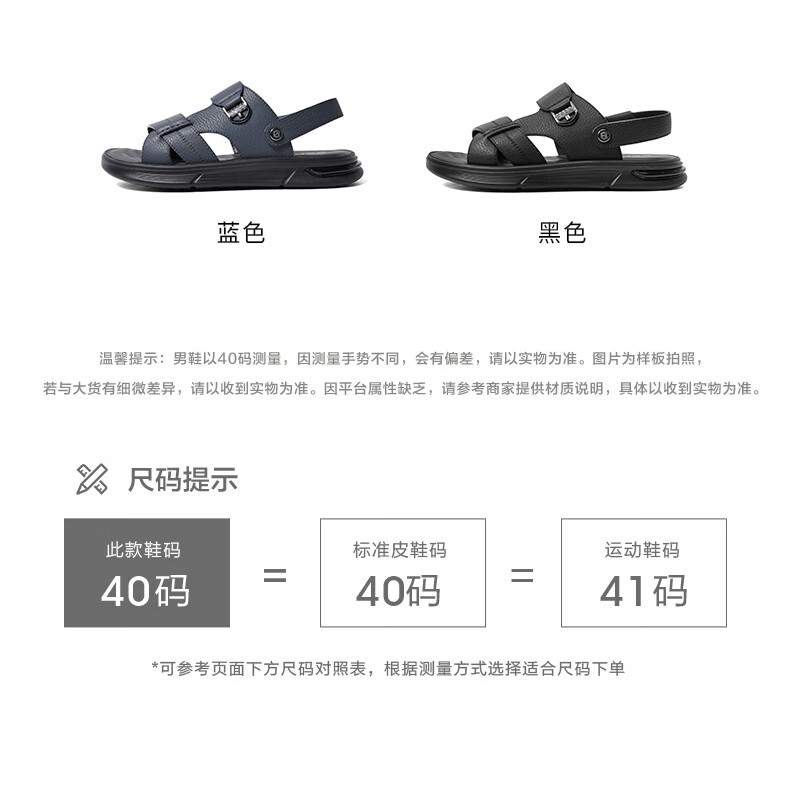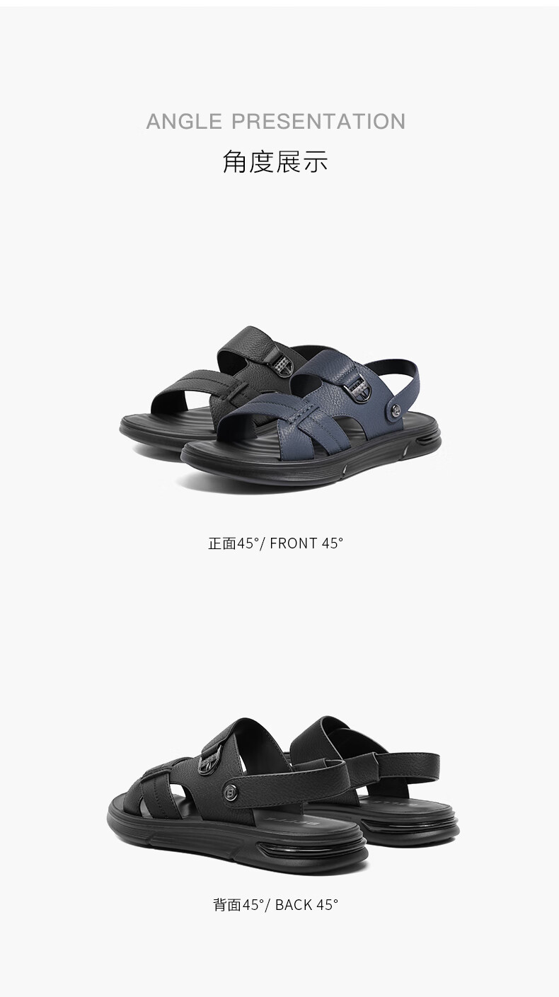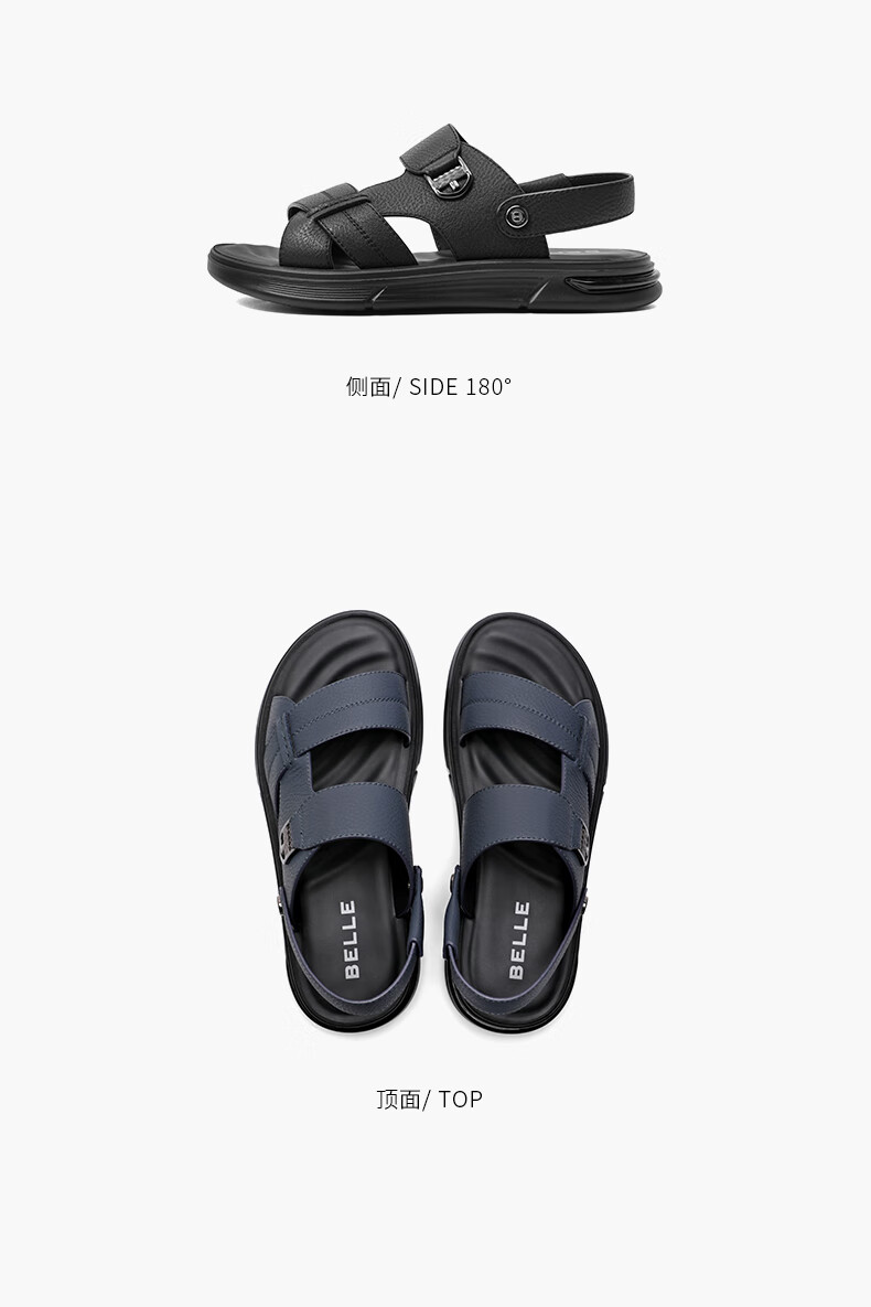 百丽百搭凉鞋男2023夏季新款牛皮两穿皮清爽透气凉鞋A1098BL3 蓝色 40