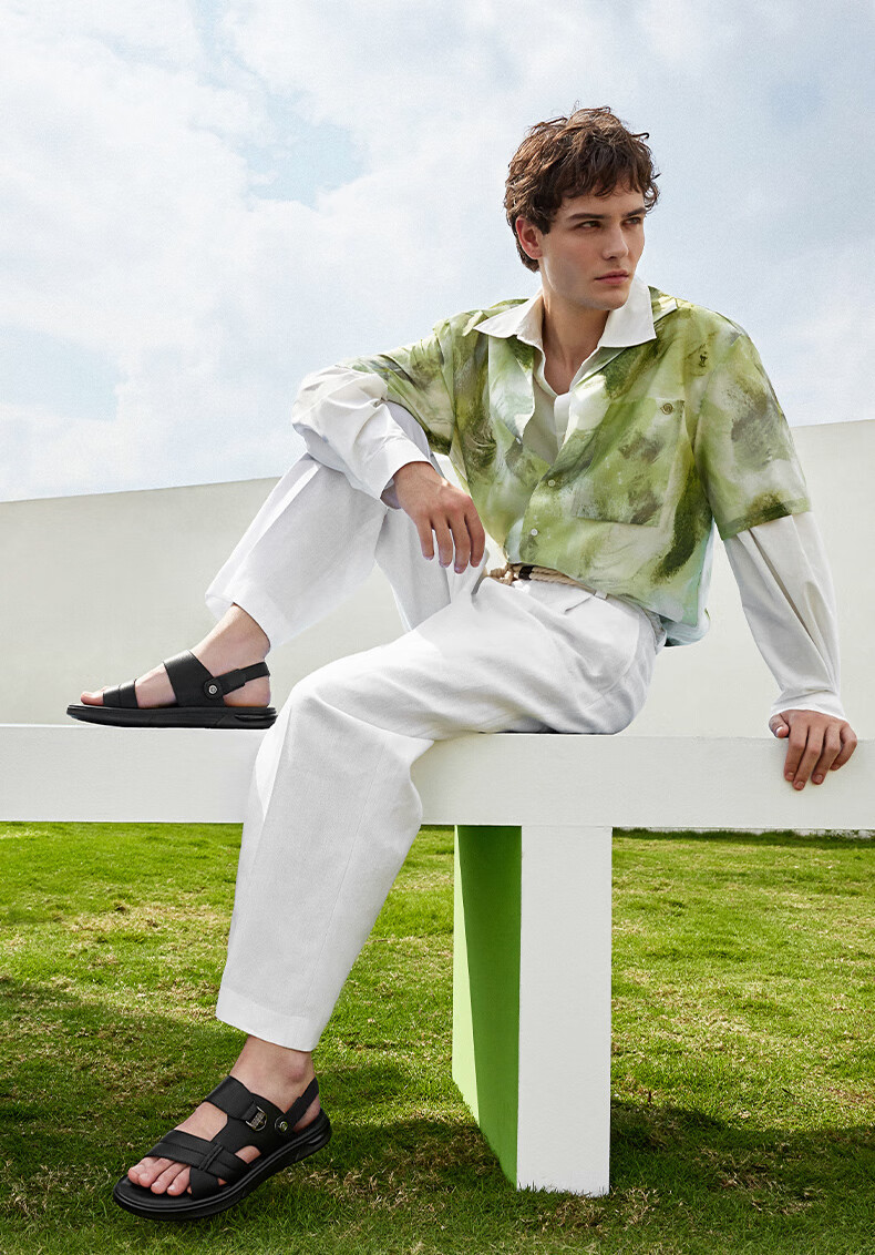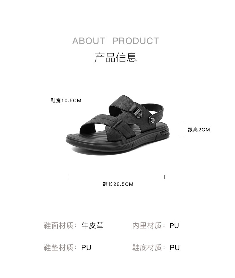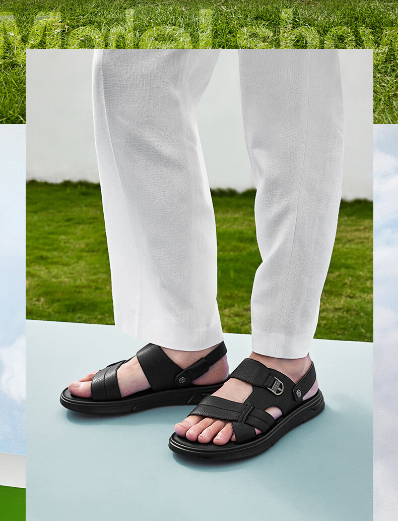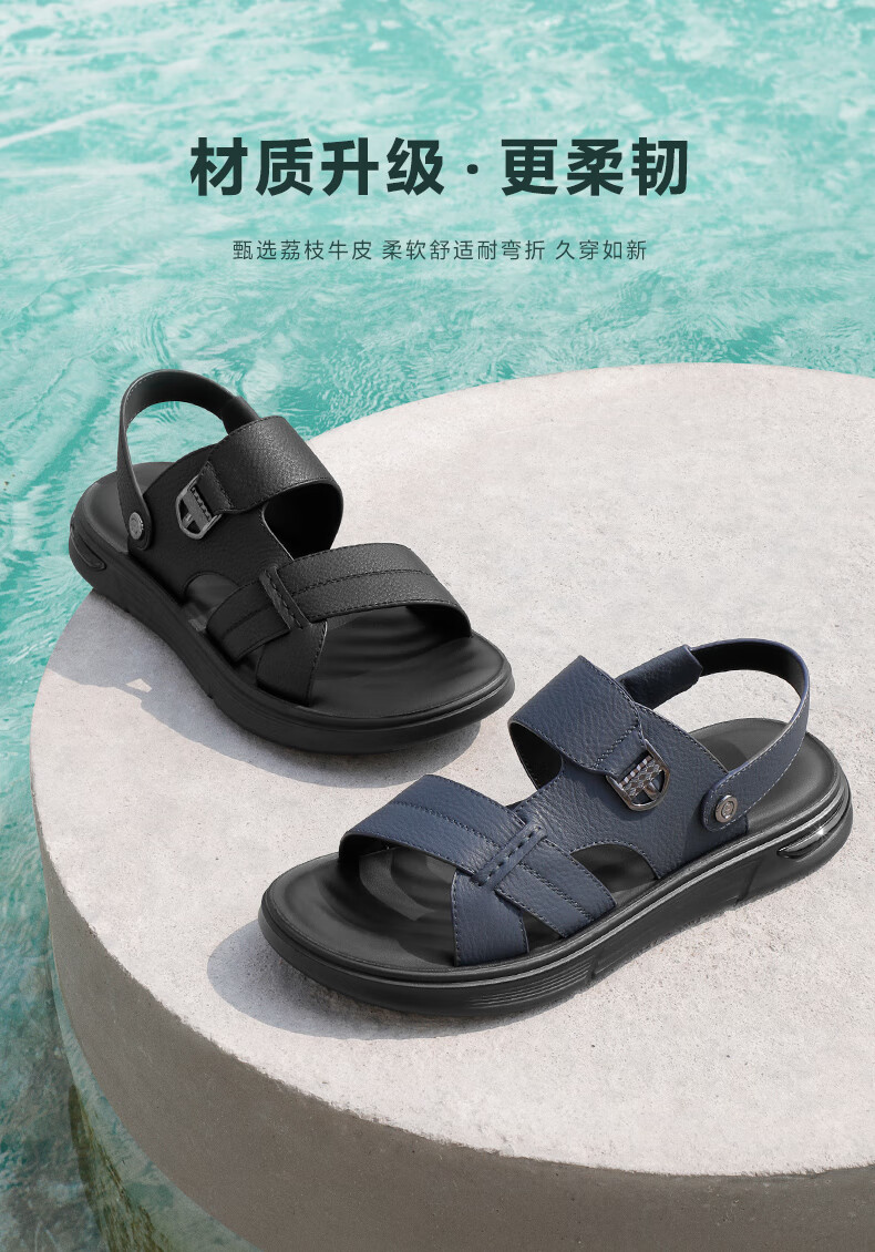 百丽百搭凉鞋男2023夏季新款牛皮两穿皮清爽透气凉鞋A1098BL3 蓝色 40