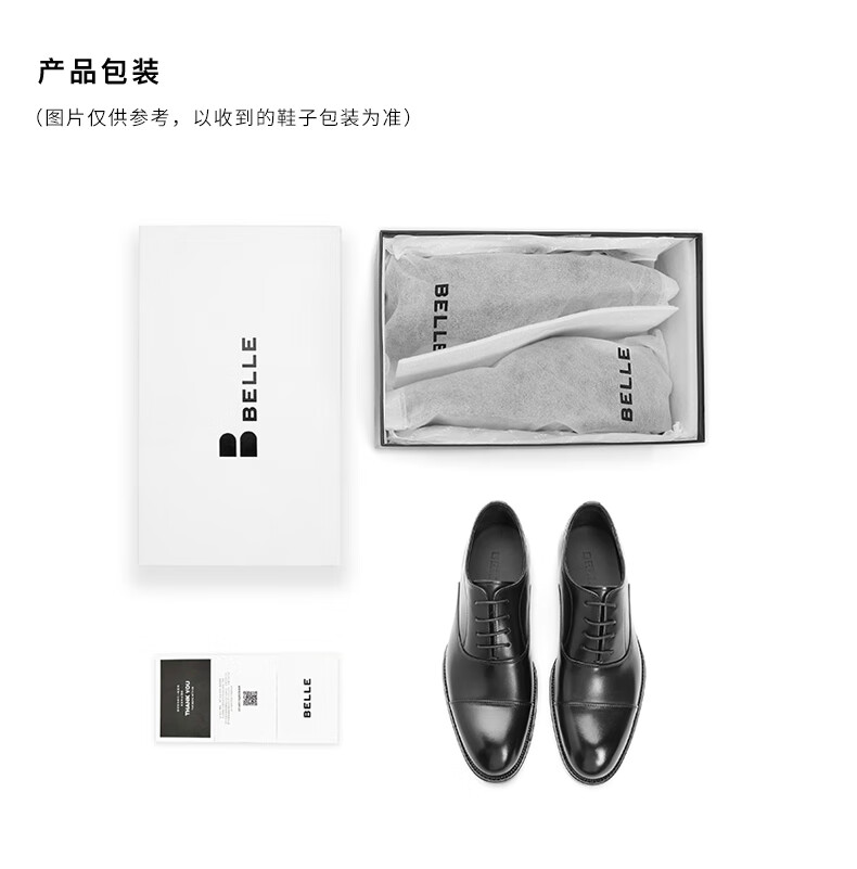 百丽牛皮商务休闲皮鞋男百搭马丁鞋子橡胶底86181CM0 黑 42