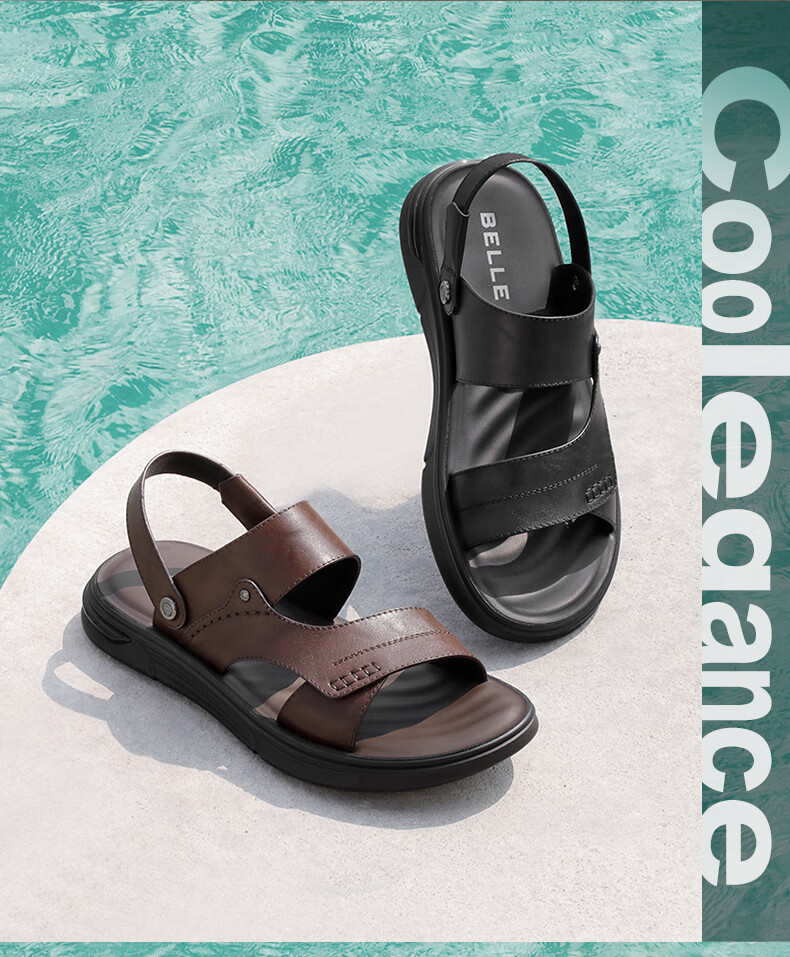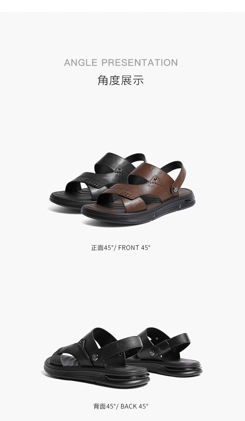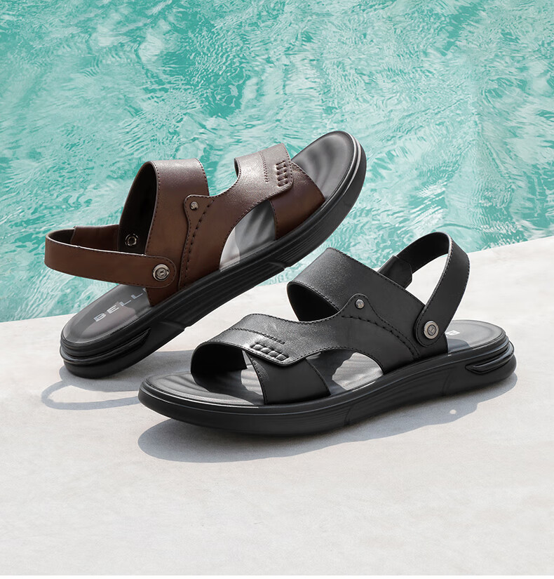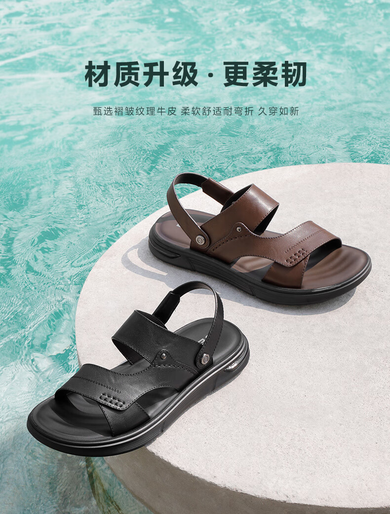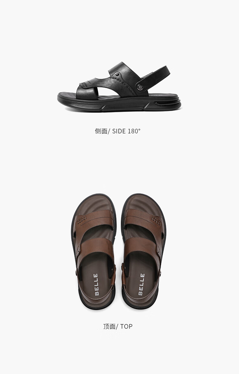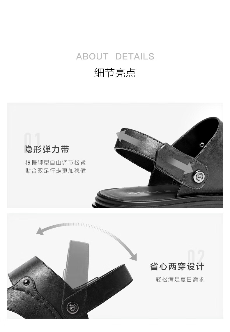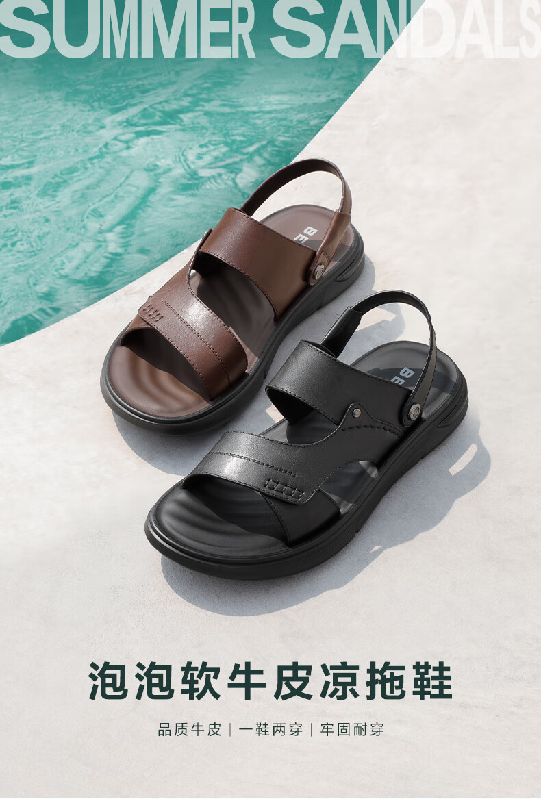 百丽两穿设计凉鞋男2023夏季新款商场同款牛皮真皮沙滩凉鞋7YF01BL3 棕色 39