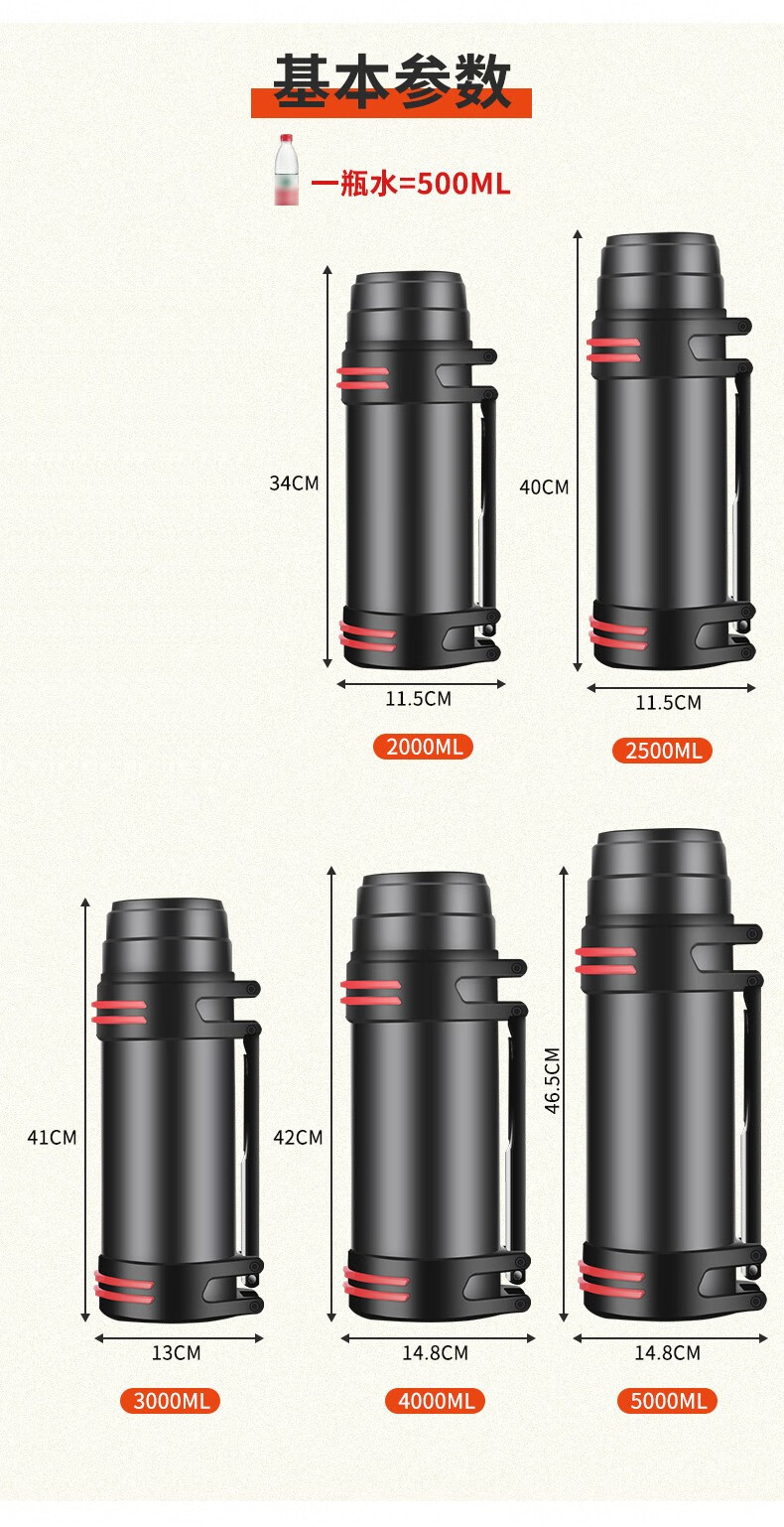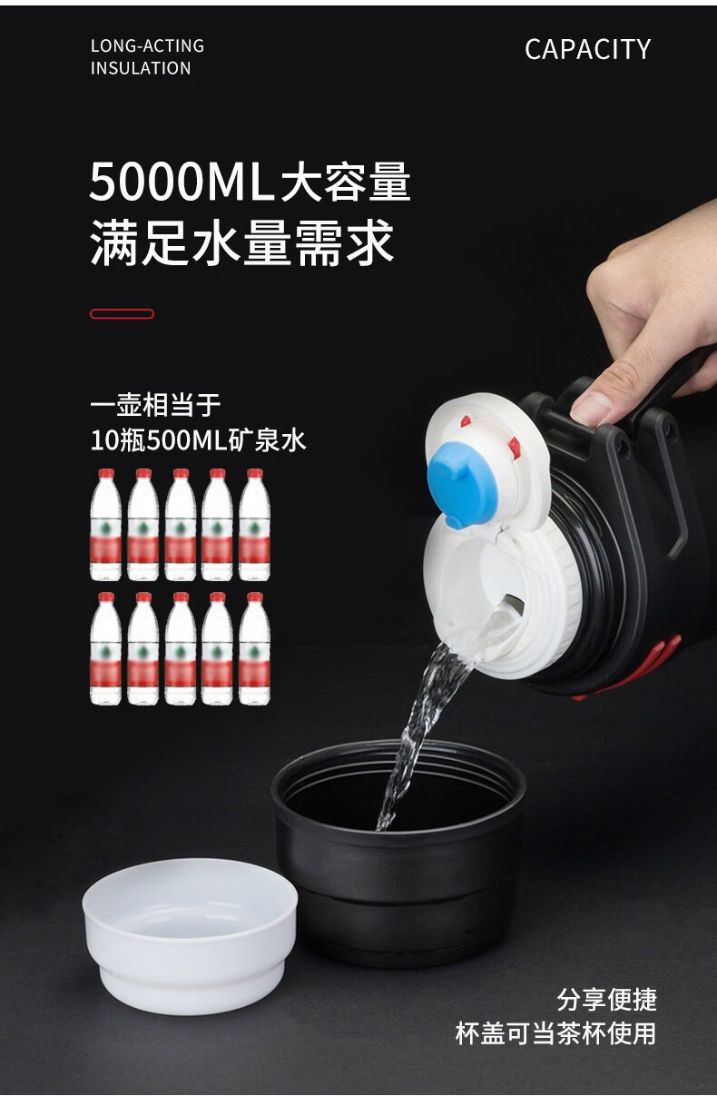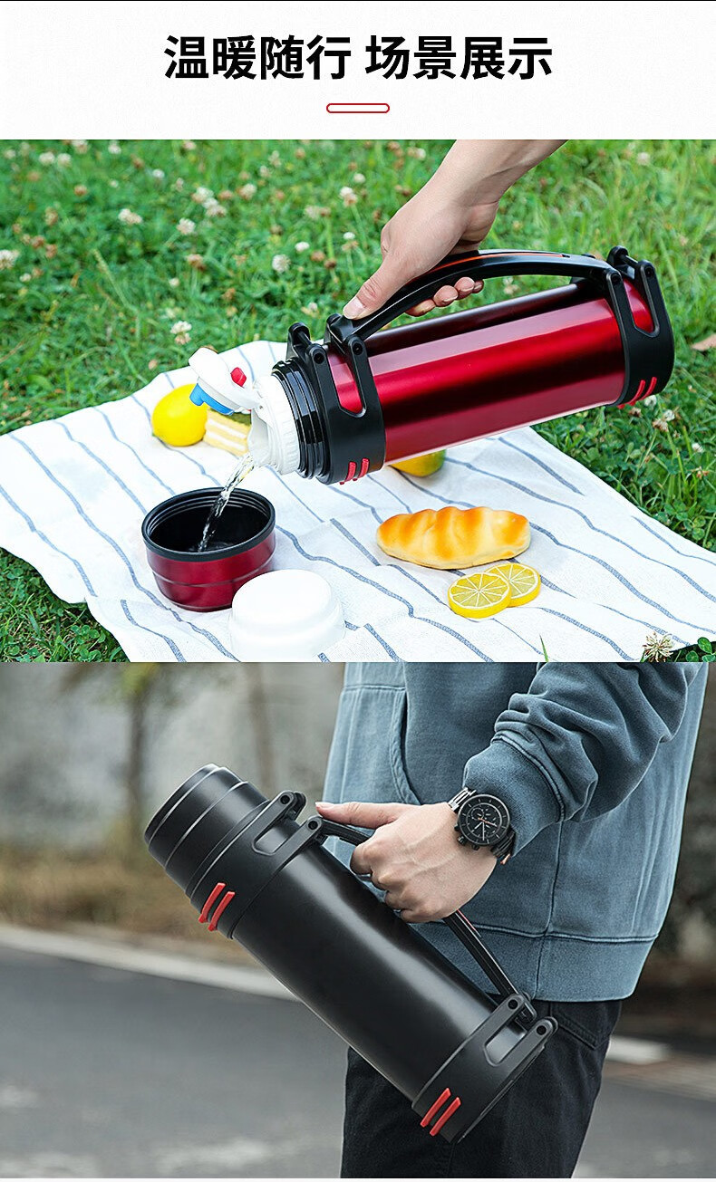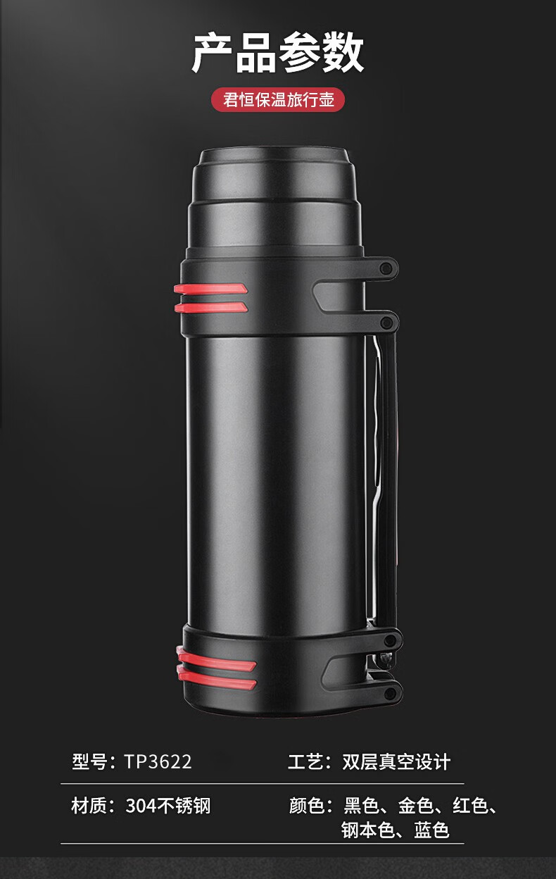 Tri-polar大容量真空保温壶304不锈钢保温杯户外车载旅行壶TP3622 钢本色 4000ml