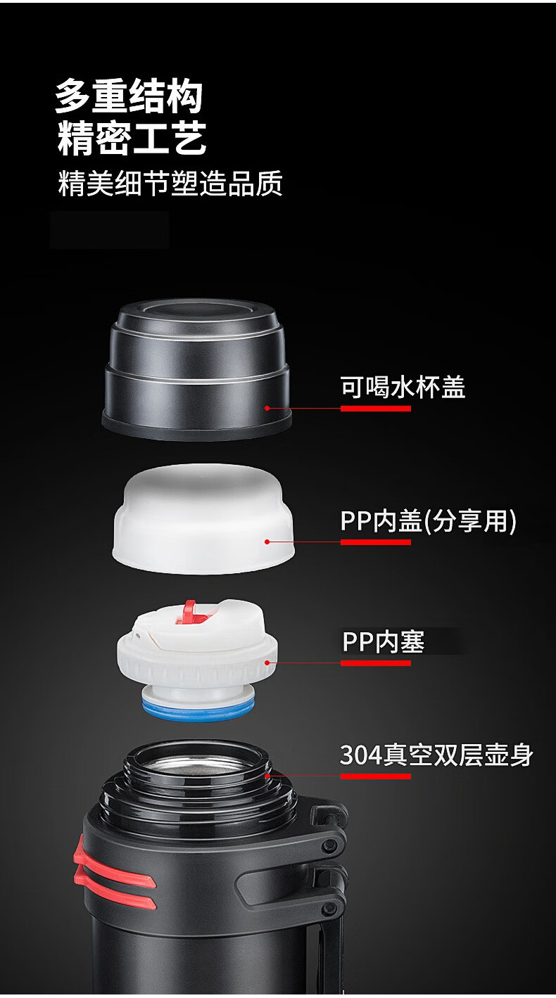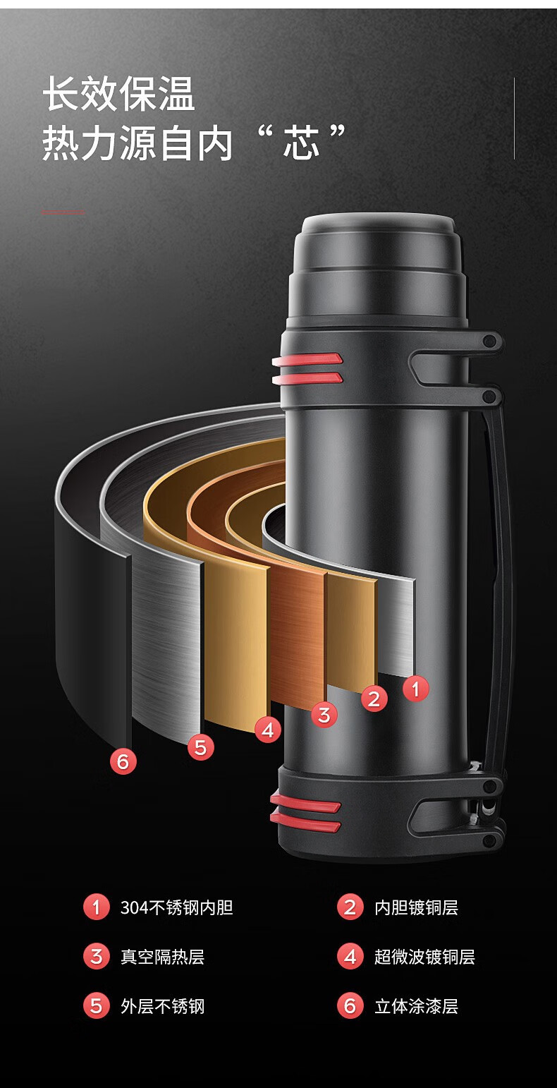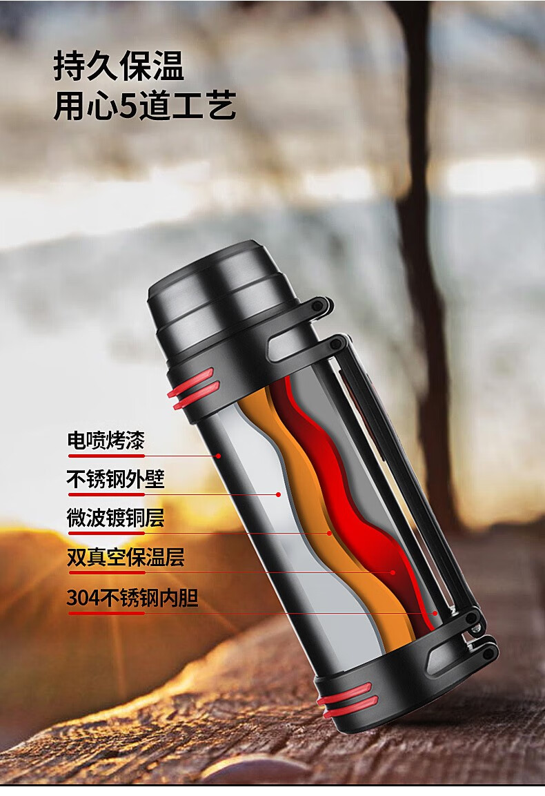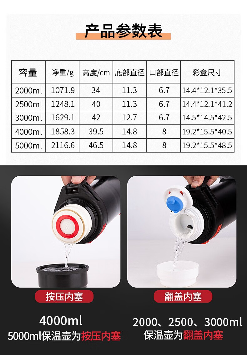 Tri-polar大容量真空保温壶304不锈钢保温杯户外车载旅行壶TP3622 钢本色 4000ml