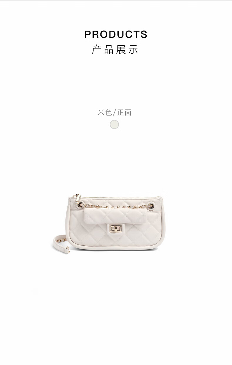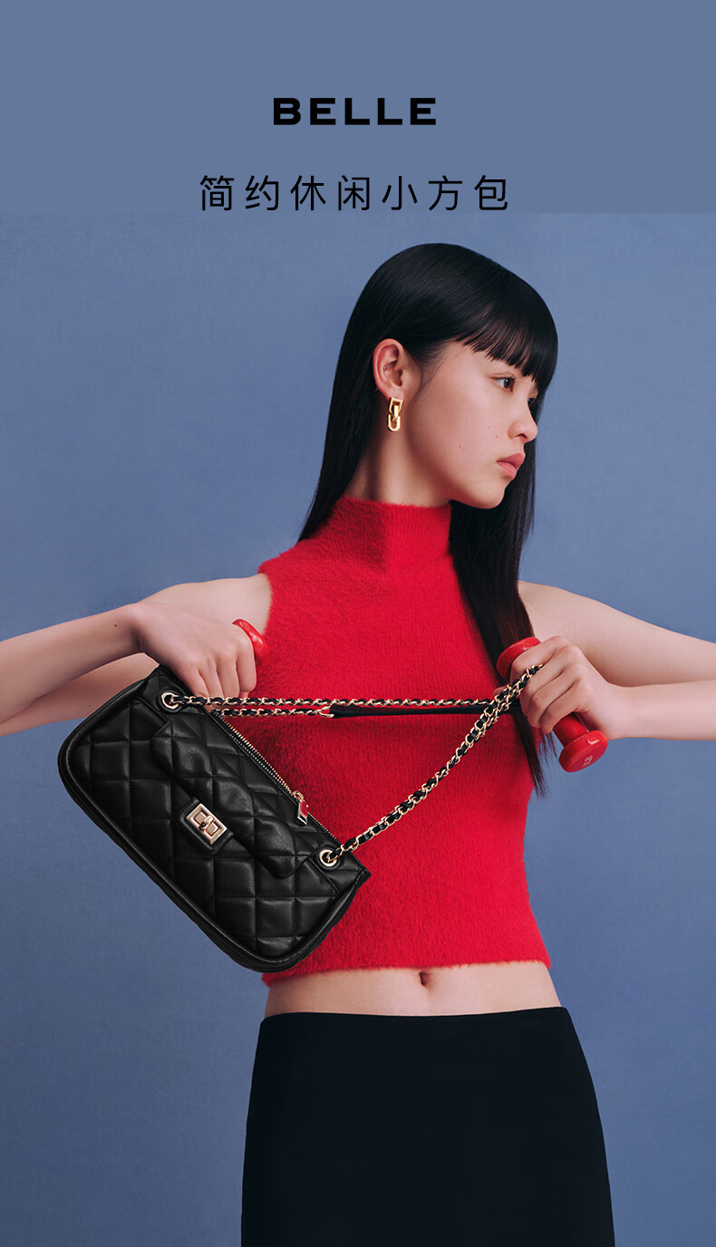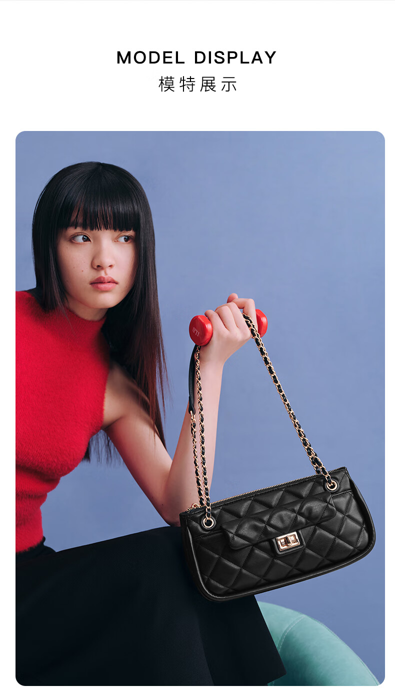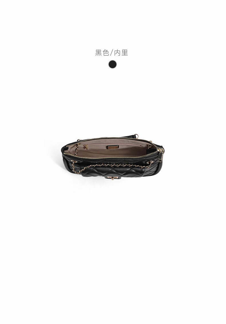 百丽包包女2023夏季新款休闲法棍绗缝包小香风轻奢单肩斜挎包X9095BX3 黑色 F