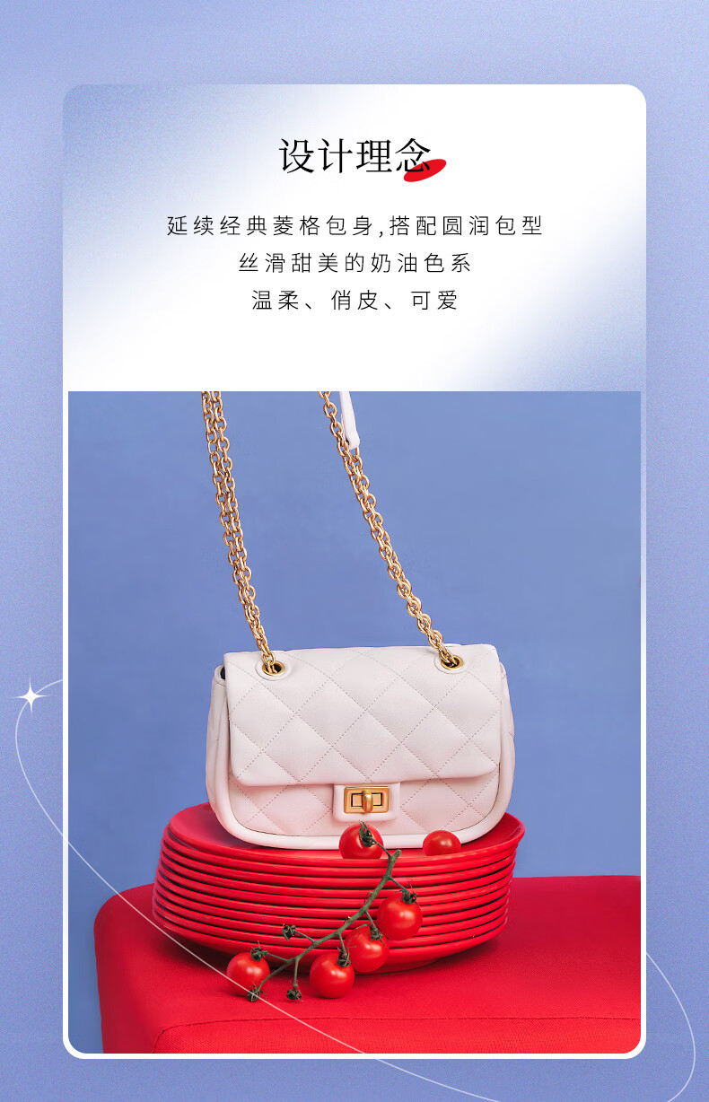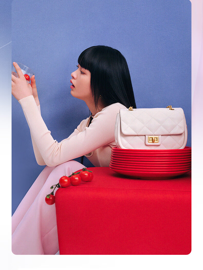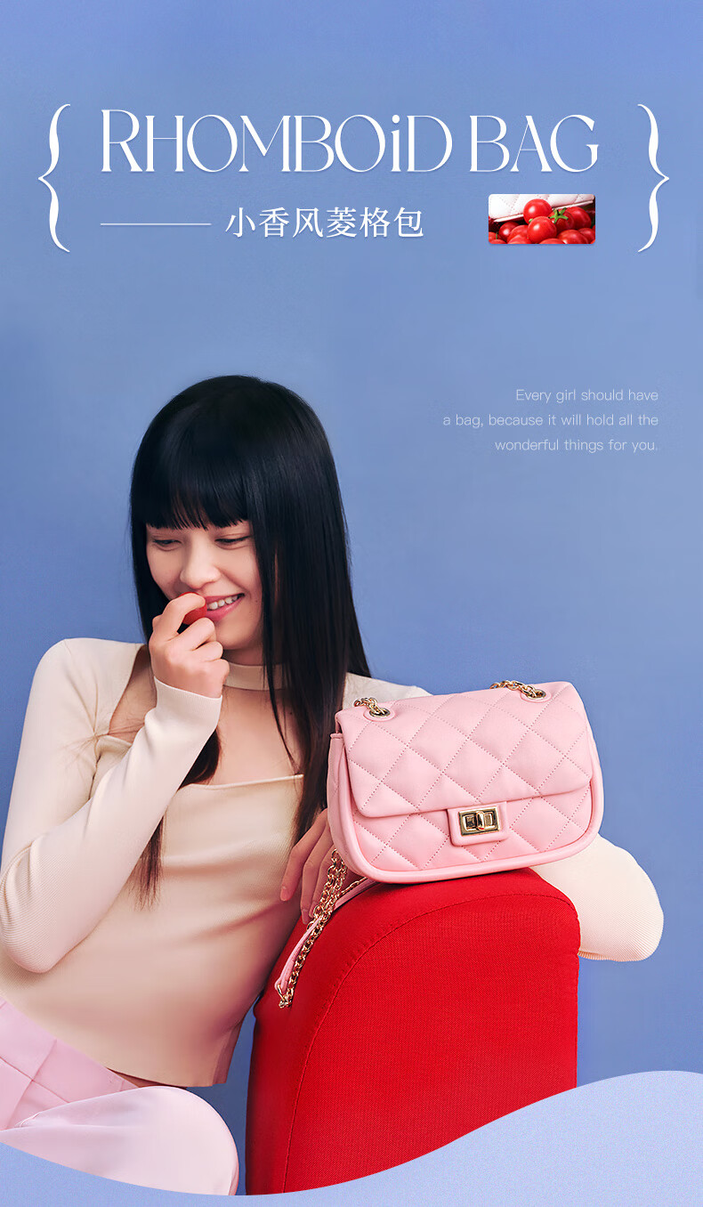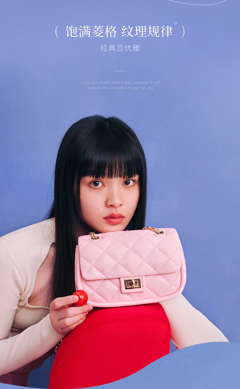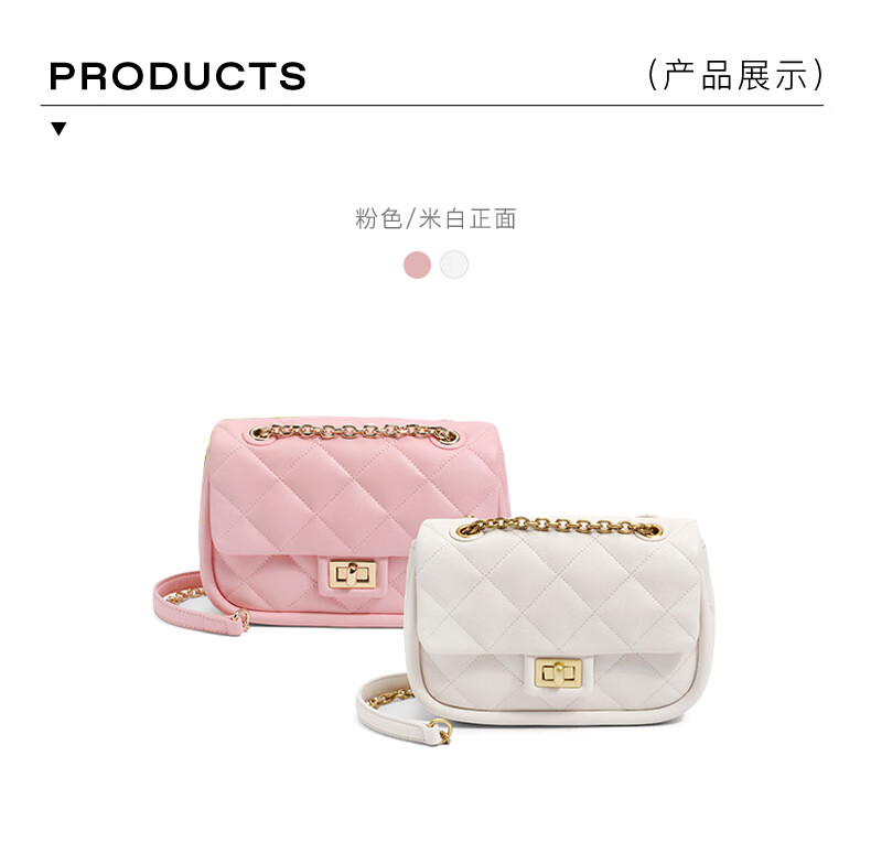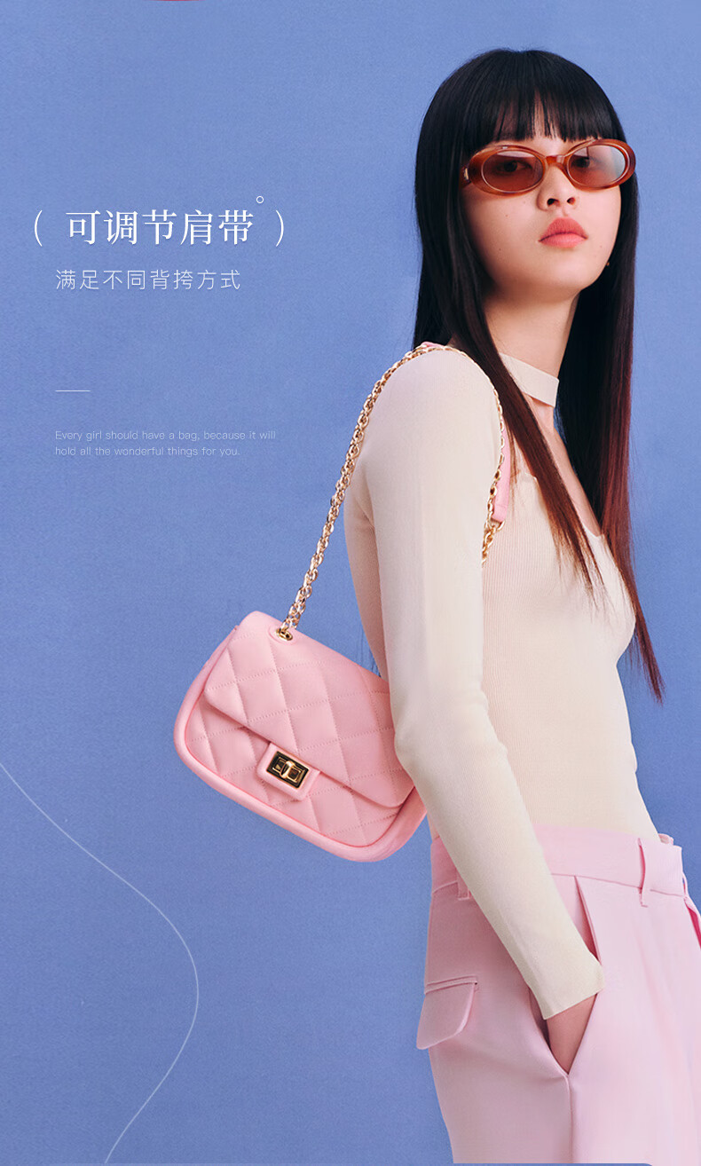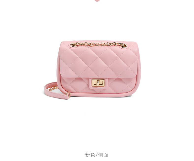 百丽菱格包包女2023夏季新款简约休闲小香风单肩斜挎绗缝包X9085BX3 粉色 F