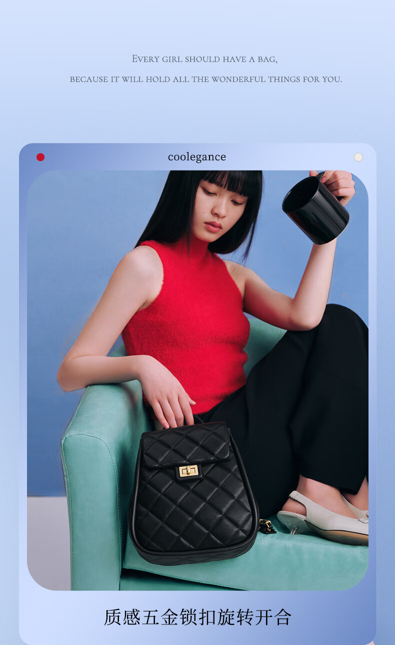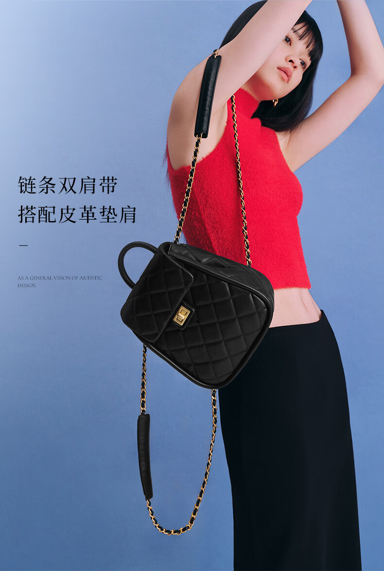 百丽【刘雯同款】2023夏季新款休闲通勤出游双肩包X9097BX3 黑色 F