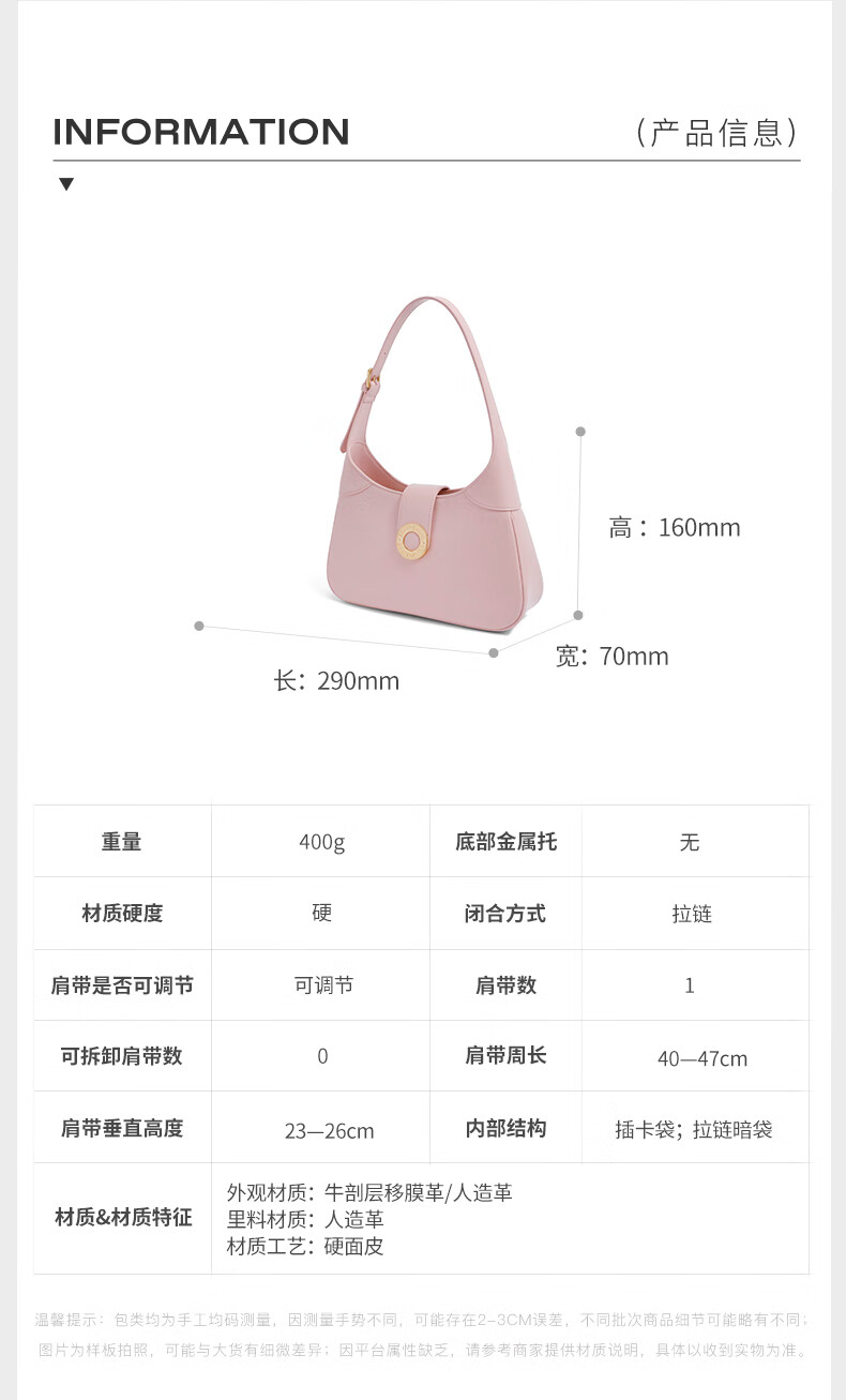 百丽包包女2023夏季新商场同款简约质感通勤腋下包X6718BX3 粉色 F