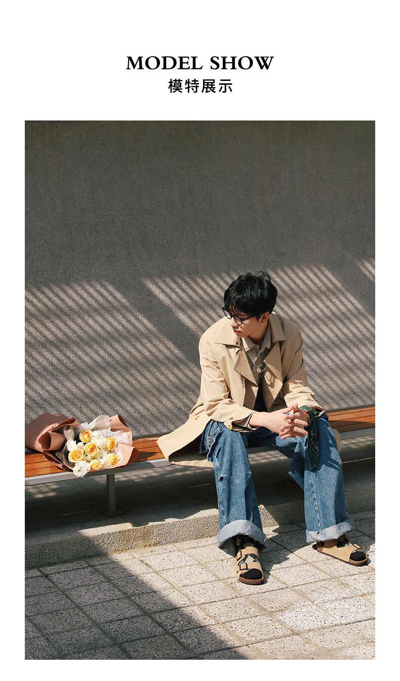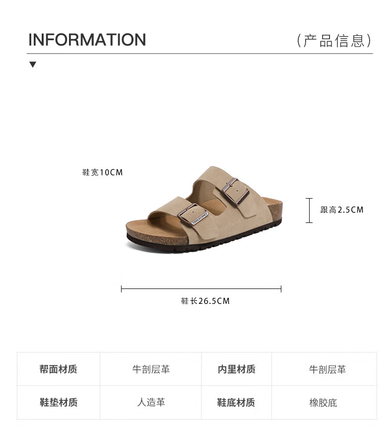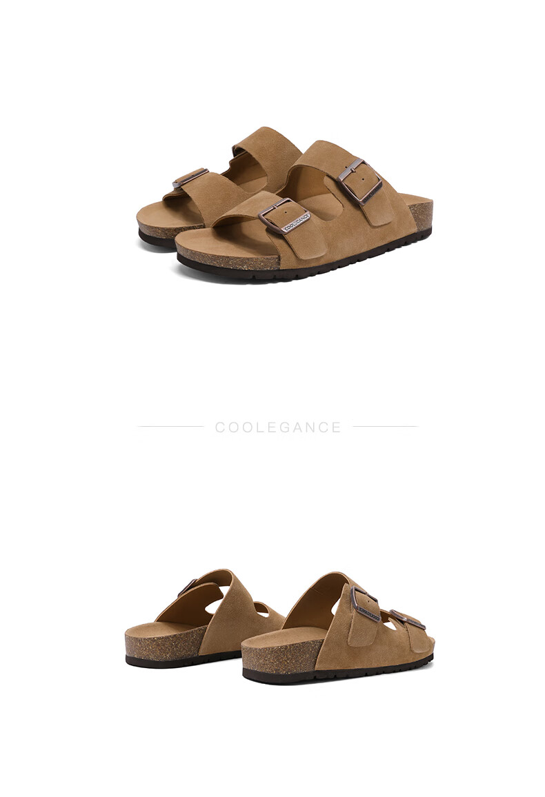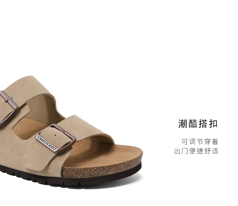 百丽搭扣拖鞋男2023夏季新商场同款休闲一脚蹬勃肯鞋沙滩凉鞋B3730BT3 杏色 40