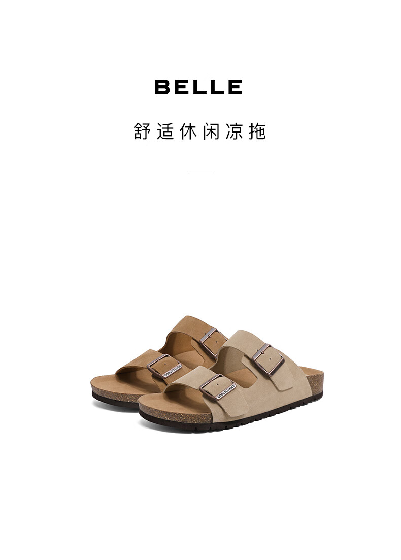 百丽搭扣拖鞋男2023夏季新商...