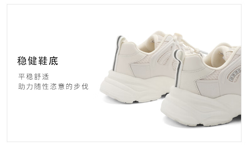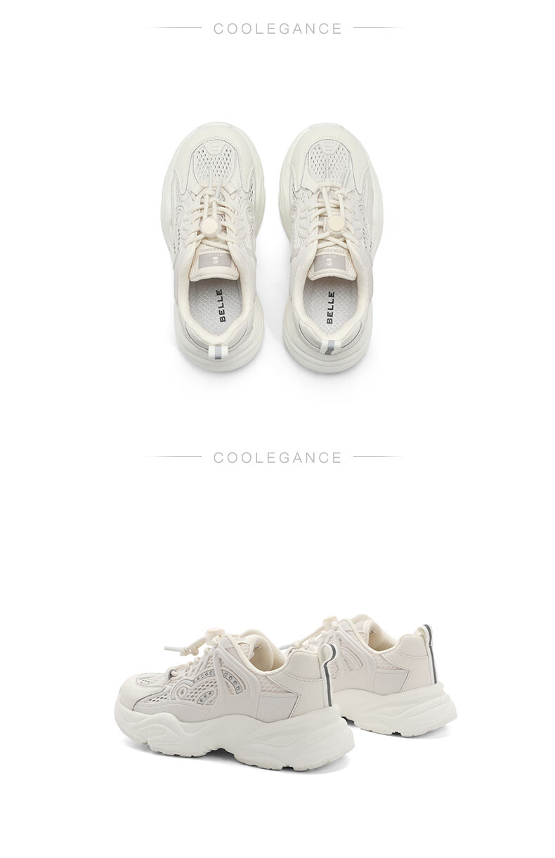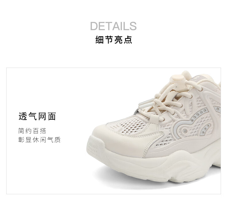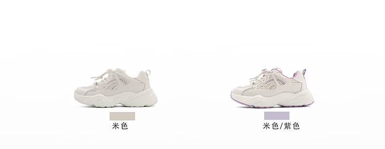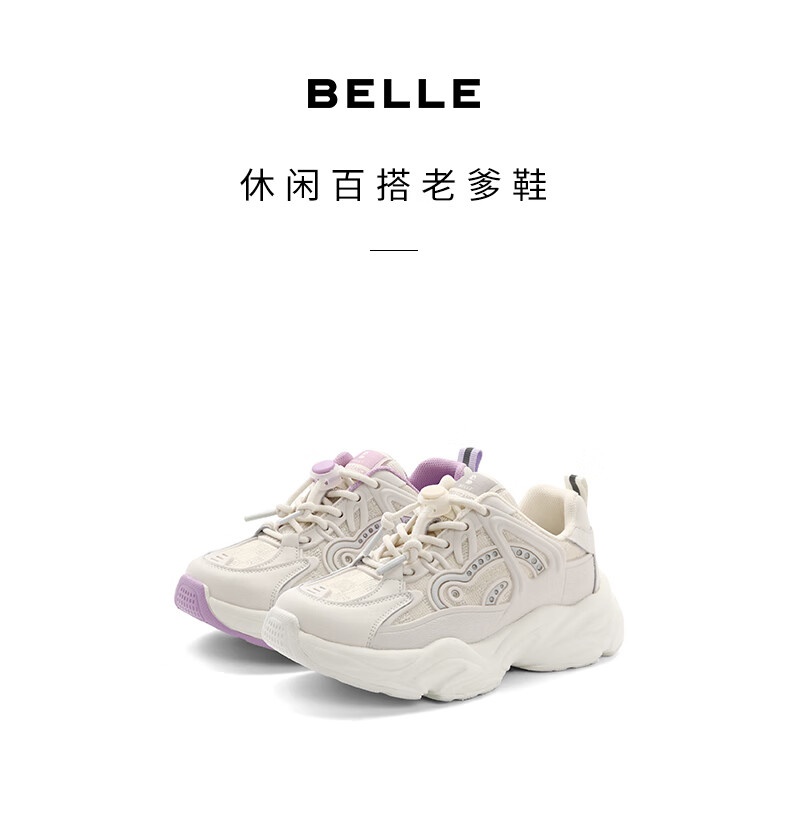 百丽休闲运动鞋童鞋2023春季新商场同款系带老爹鞋A8172A83 米色 35