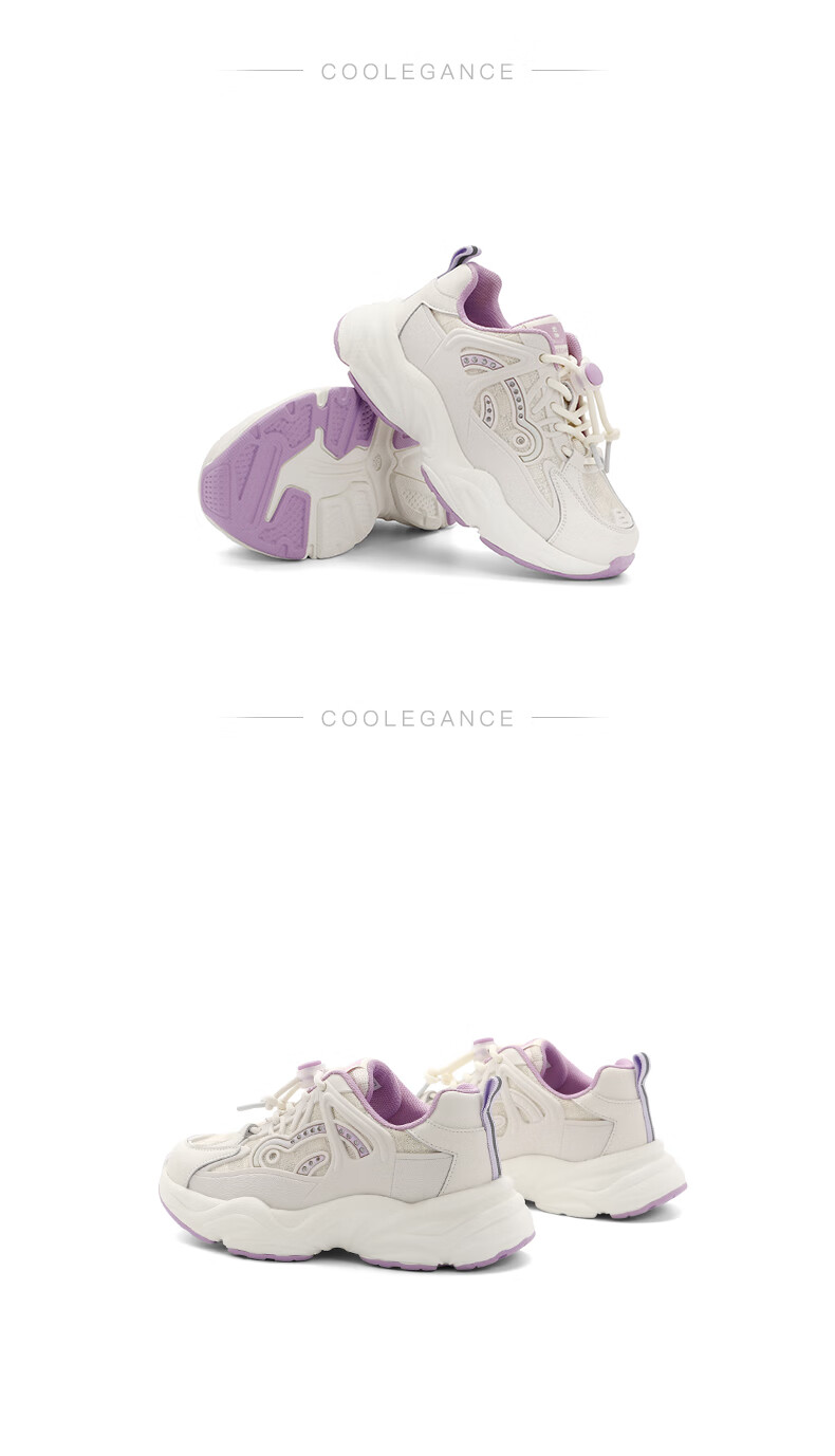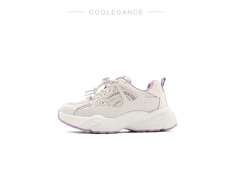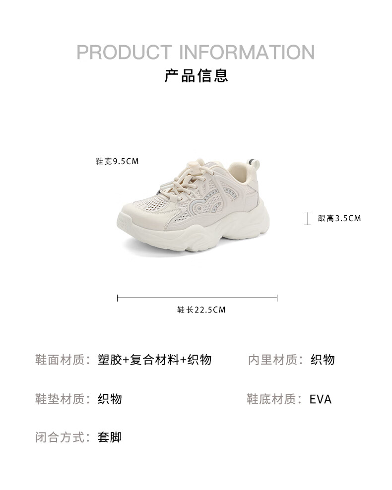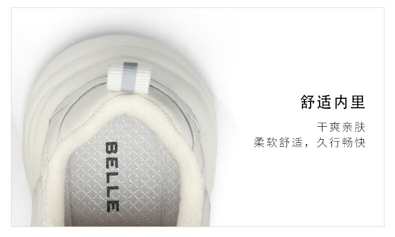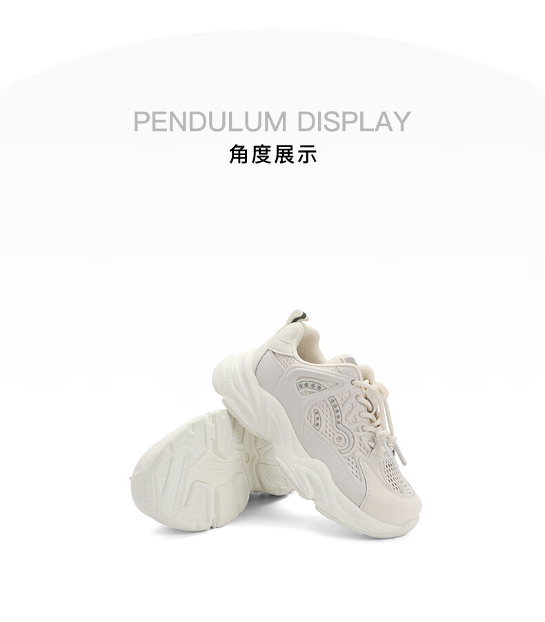 百丽休闲运动鞋童鞋2023春季新商场同款系带老爹鞋A8172A83 米色 35
