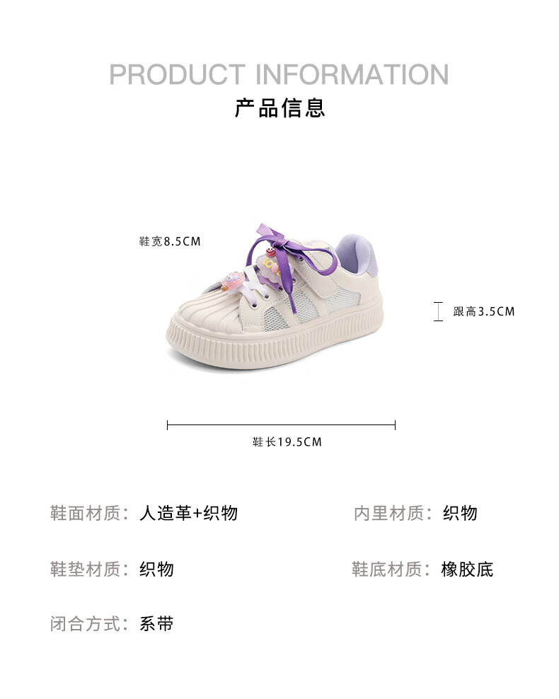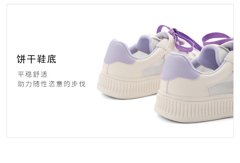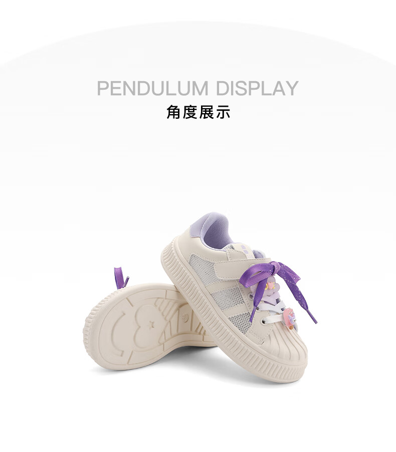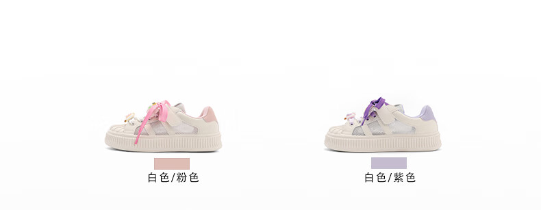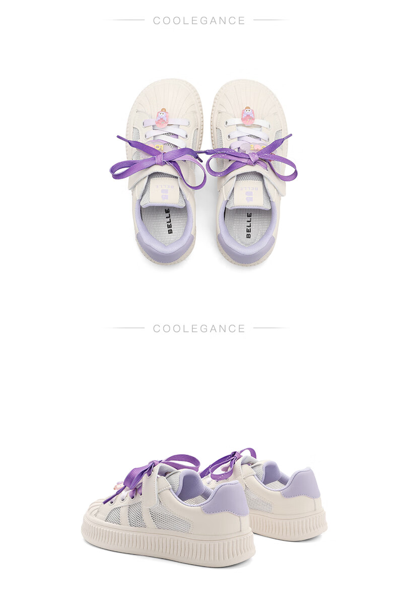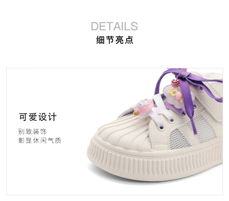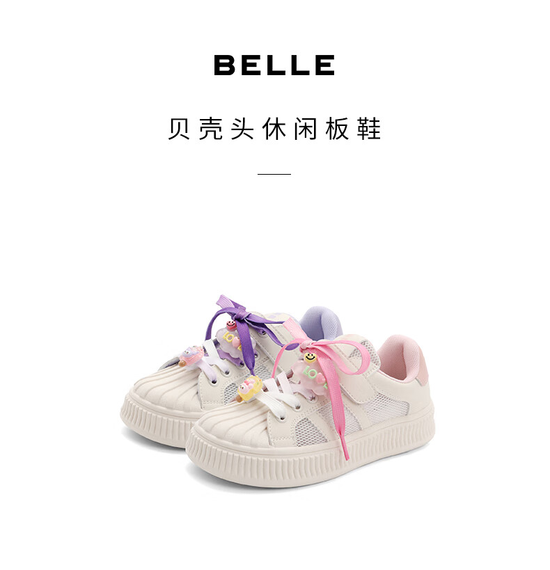 百丽可爱板鞋童鞋2023夏季新商场同款贝壳头饼干鞋38060B83 白色/紫色 28