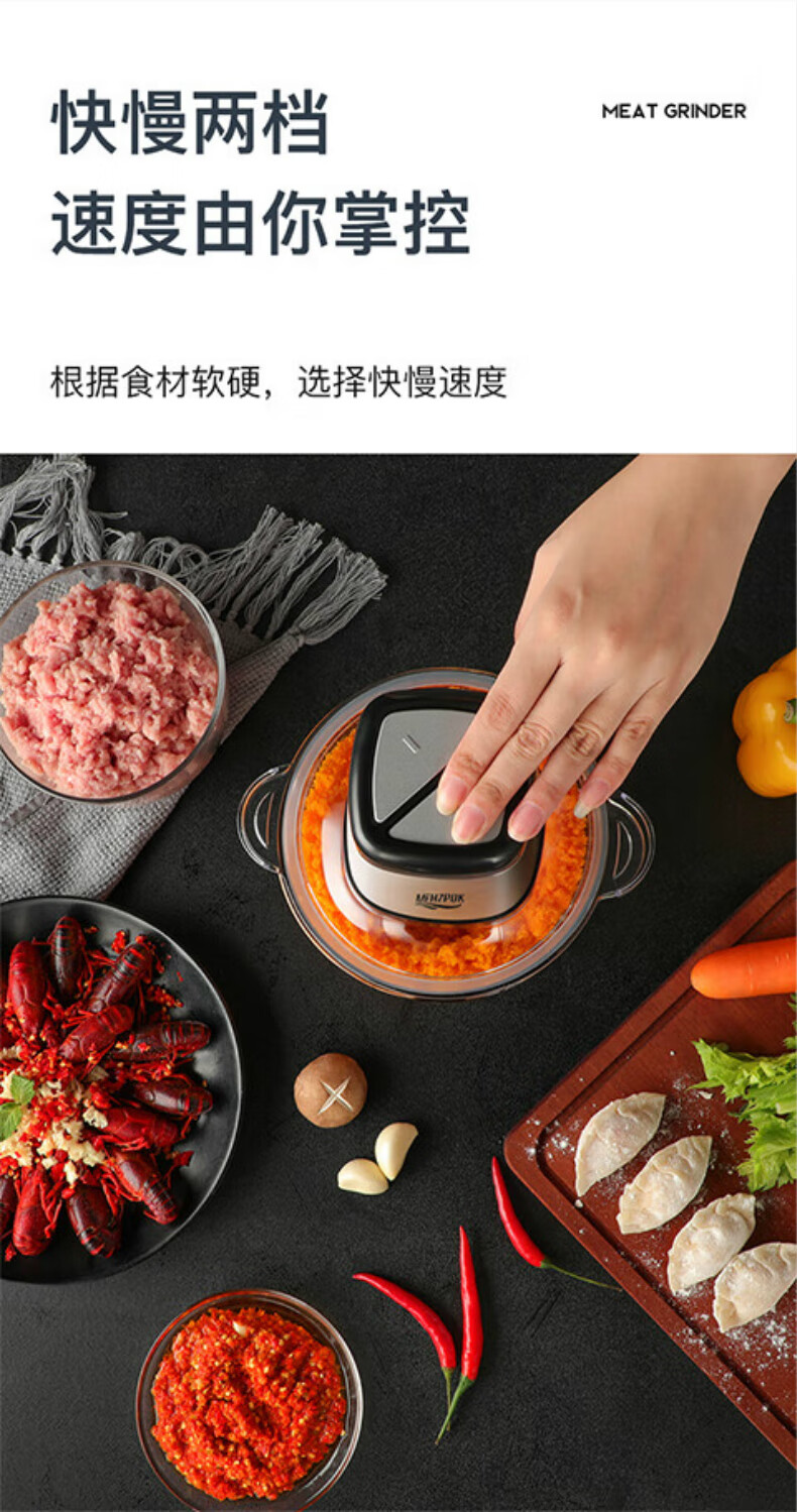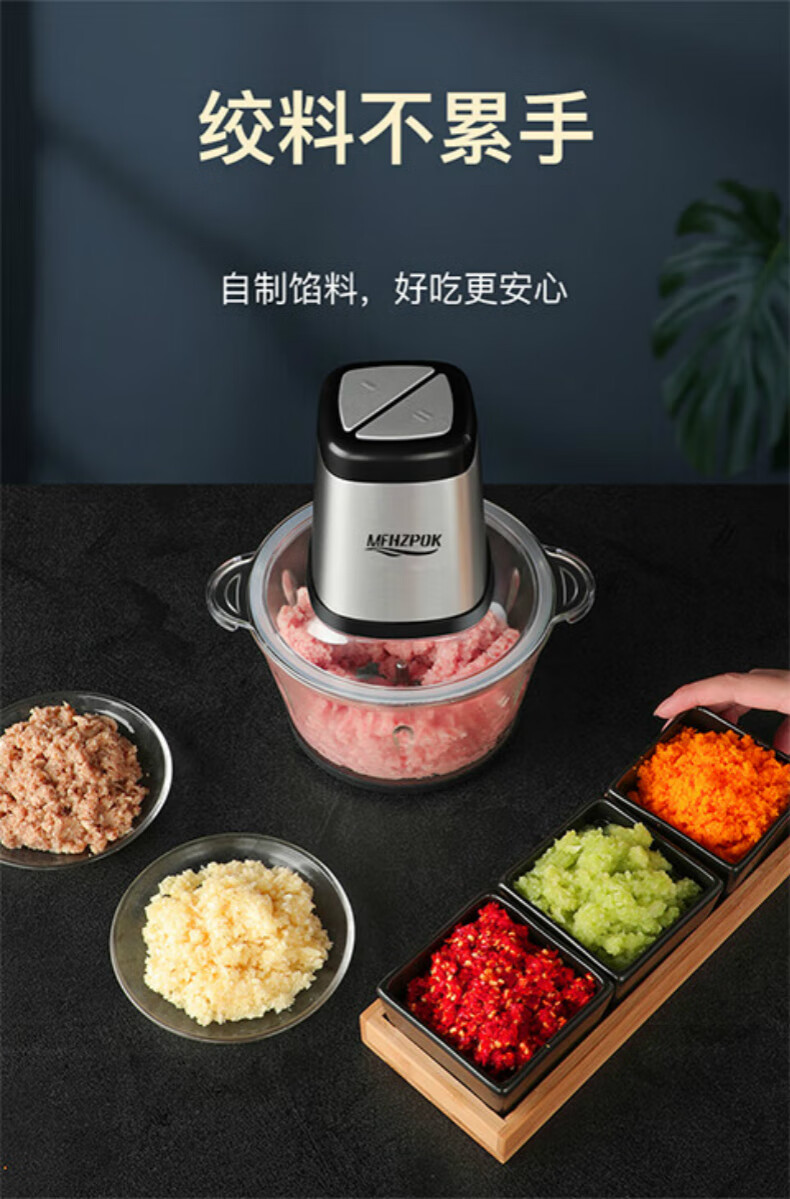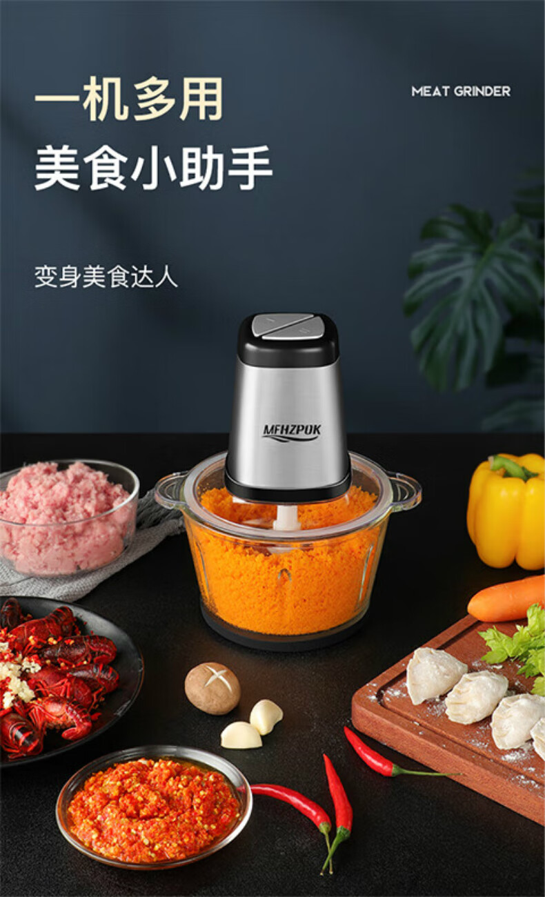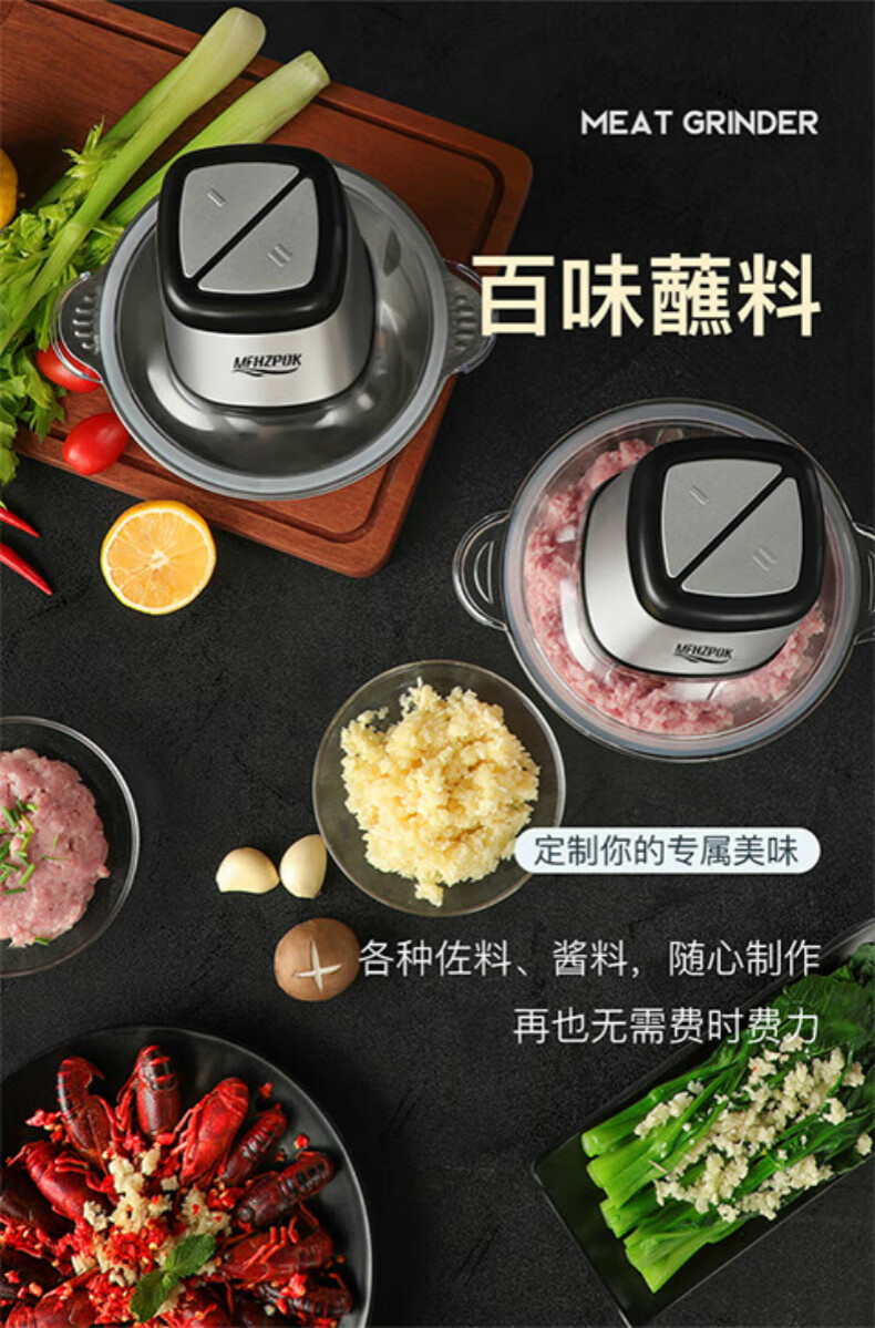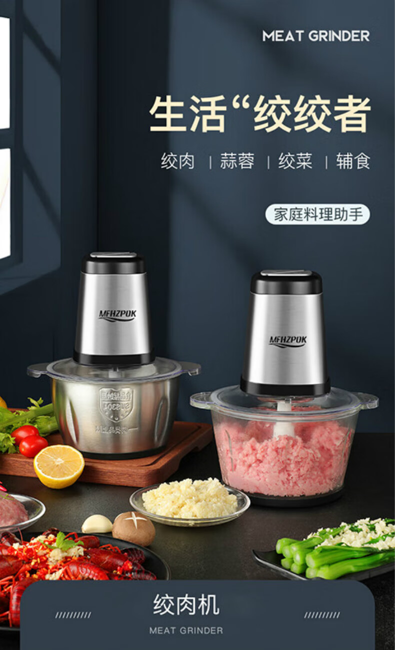 摩飞电器(MFHZPOK)绞肉机 家用绞馅机 碎肉机 电动多功能辅食料理机打蒜搅拌 不锈钢 绞肉机 MF-1844
