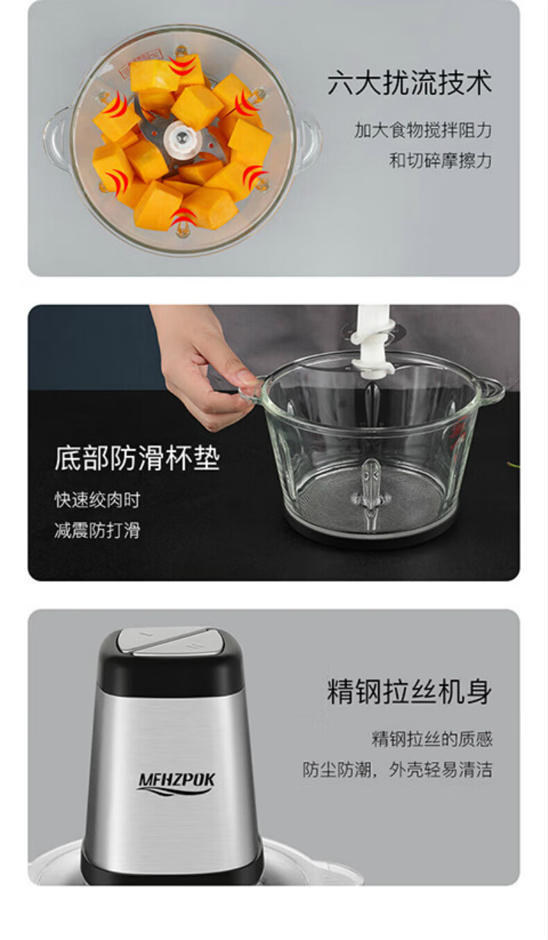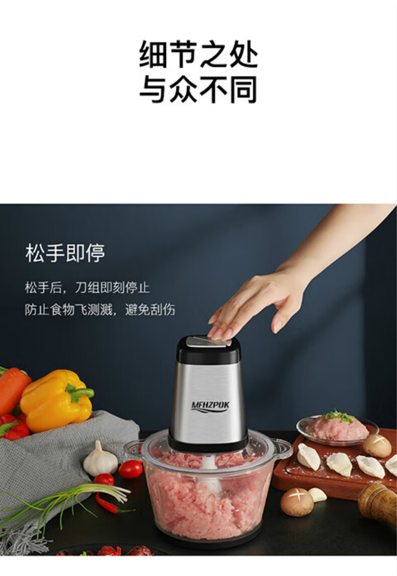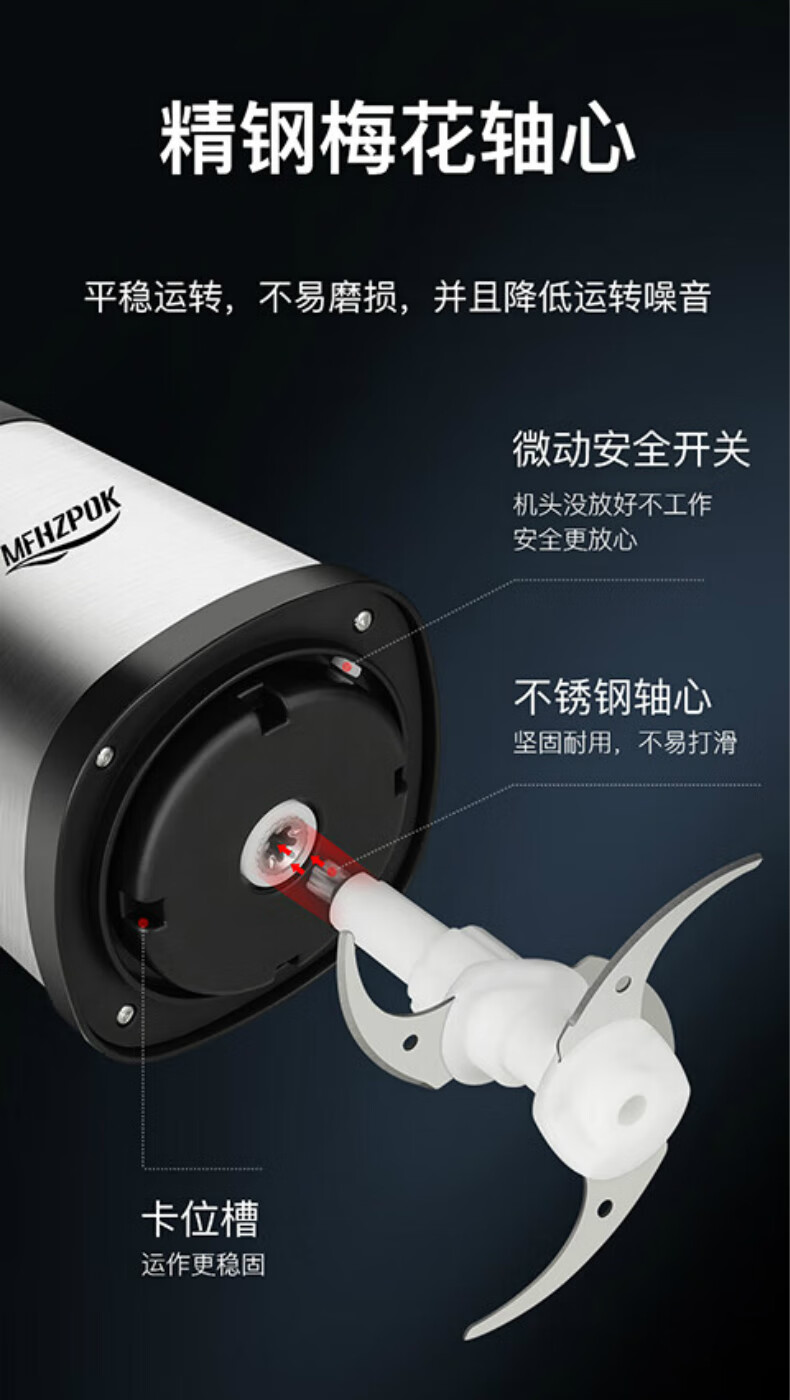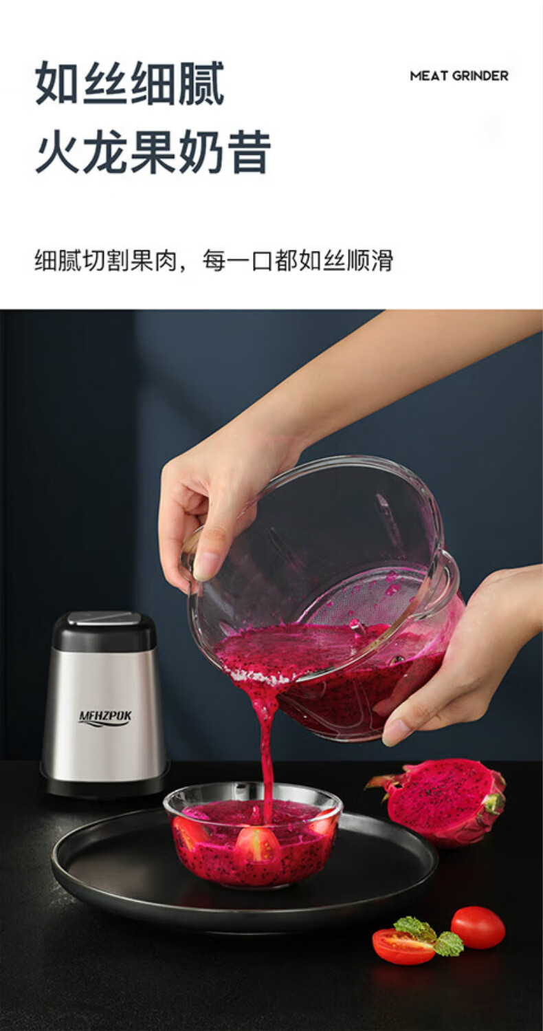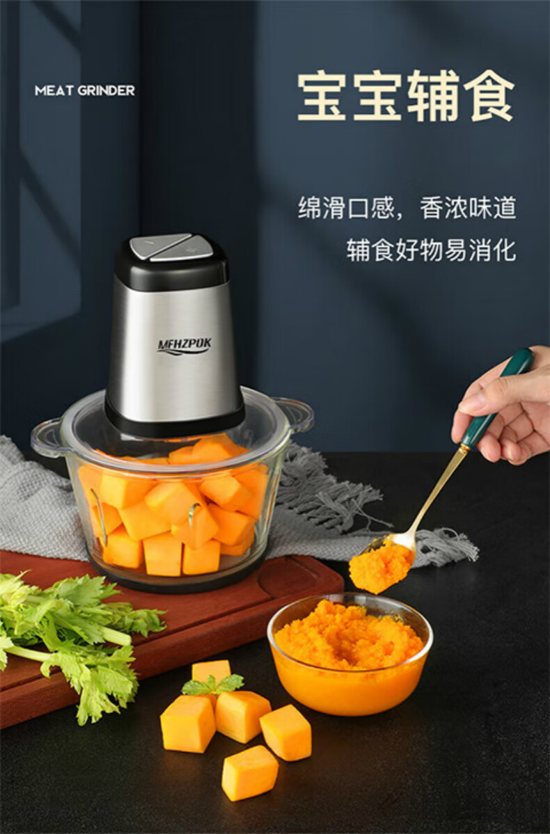 摩飞电器(MFHZPOK)绞肉机 家用绞馅机 碎肉机 电动多功能辅食料理机打蒜搅拌 不锈钢 绞肉机 MF-1844