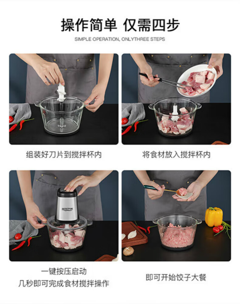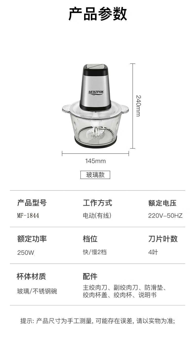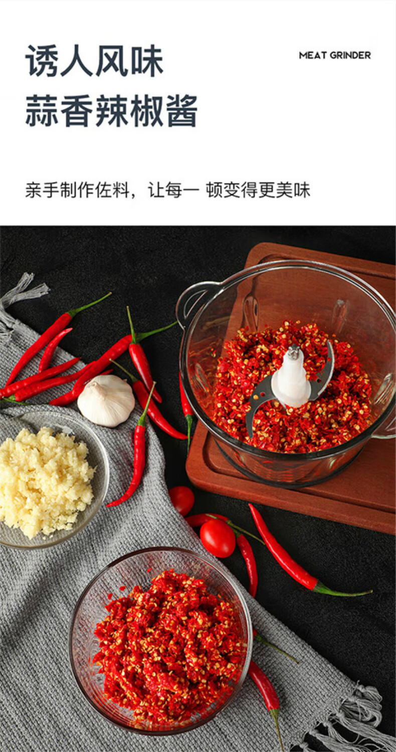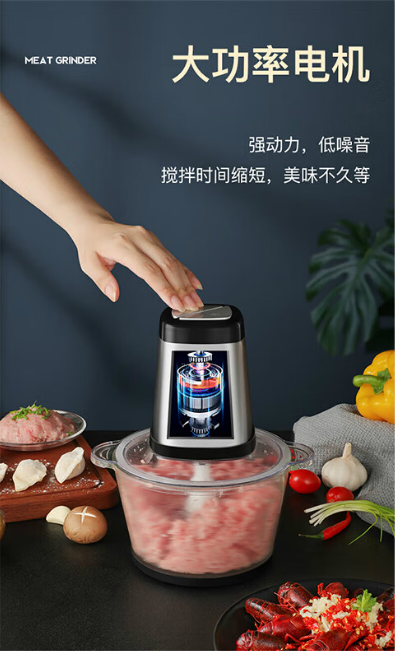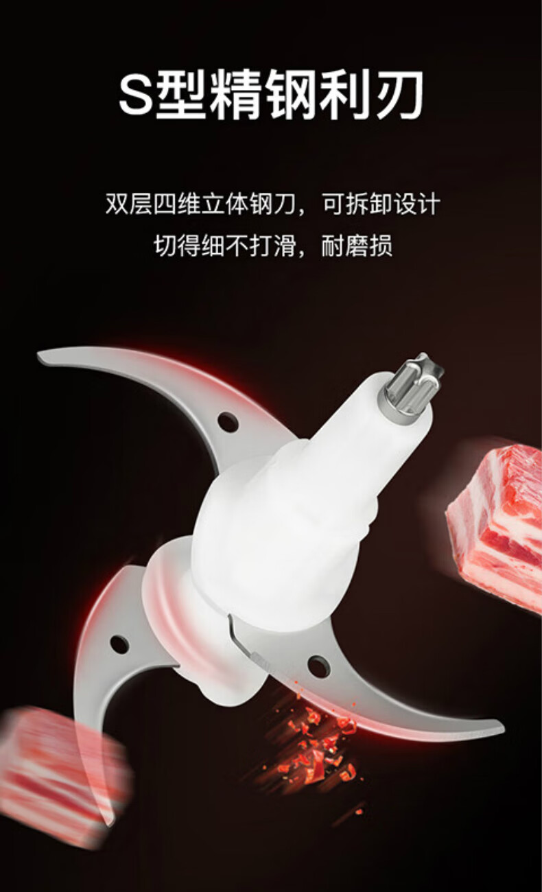摩飞电器(MFHZPOK)绞肉机 家用绞馅机 碎肉机 电动多功能辅食料理机打蒜搅拌 不锈钢 绞肉机 MF-1844