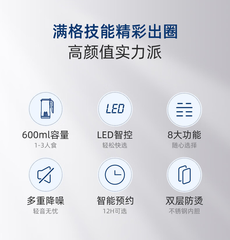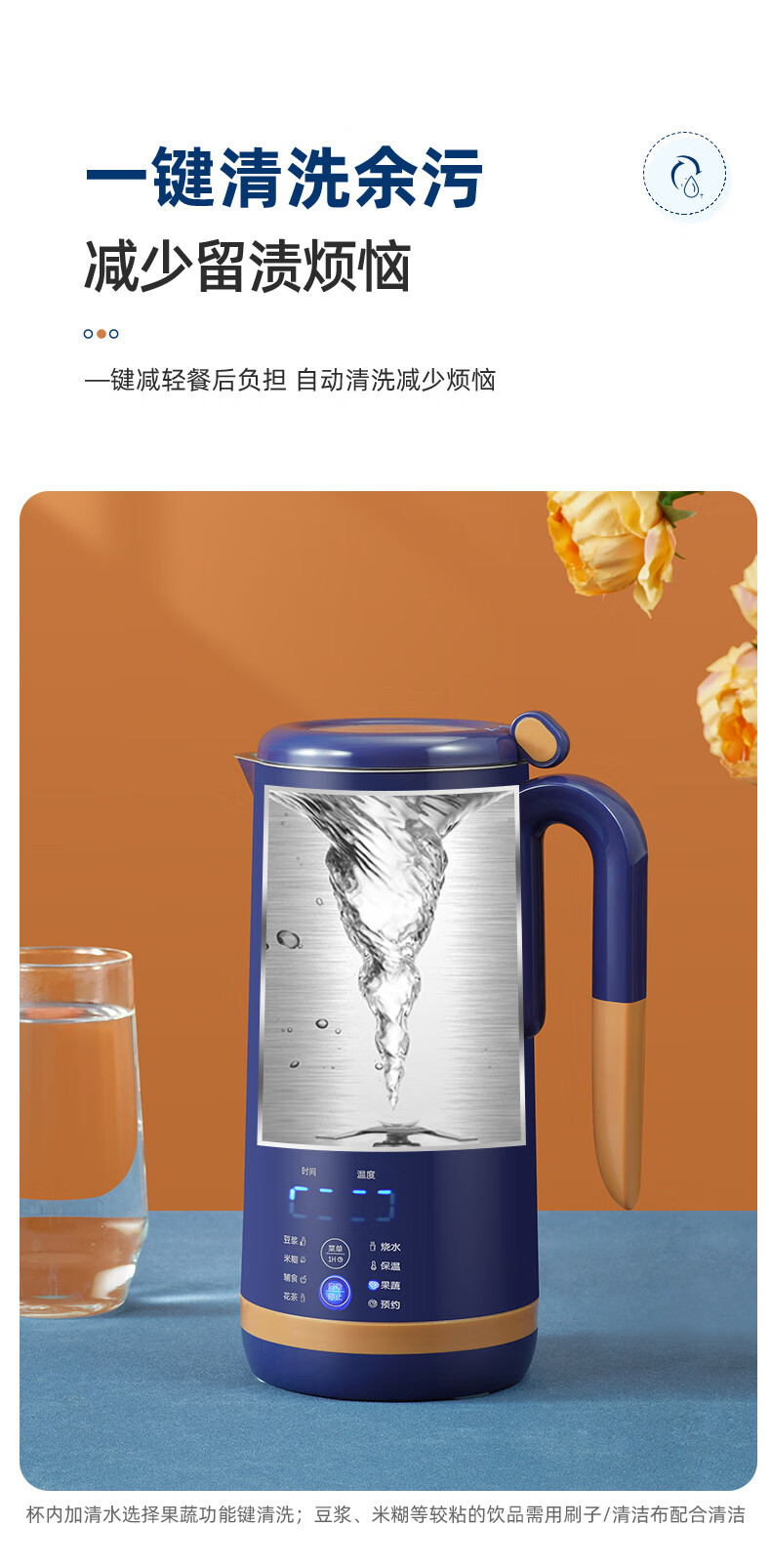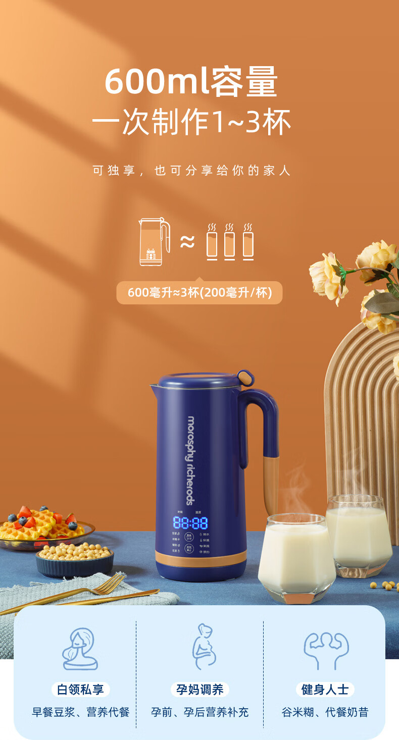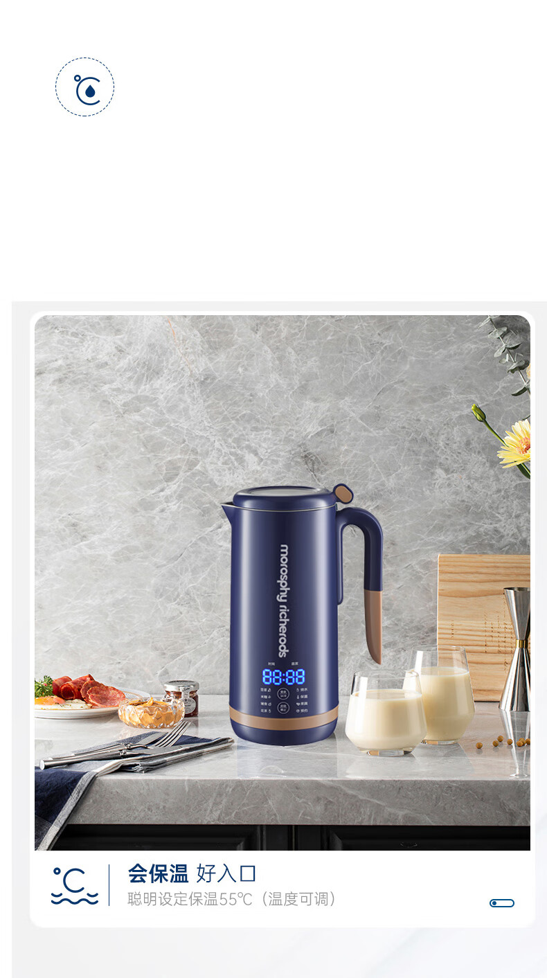 morosphy richerods破壁机家用豆浆机智能预约破壁料理机多功能小型迷你养生壶 轻奢蓝标配[破壁豆浆杯] MF-005A