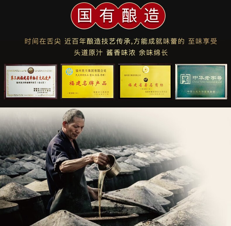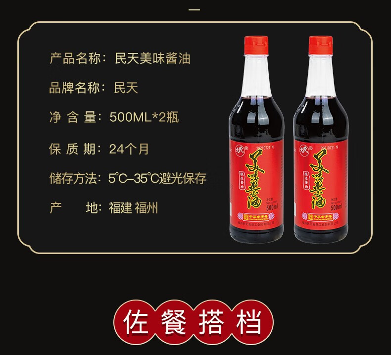 民天福建特产中华老字号民天美味酱油500ml*2瓶佐餐酱油调料调味品 民天美味酱油500ml*2瓶