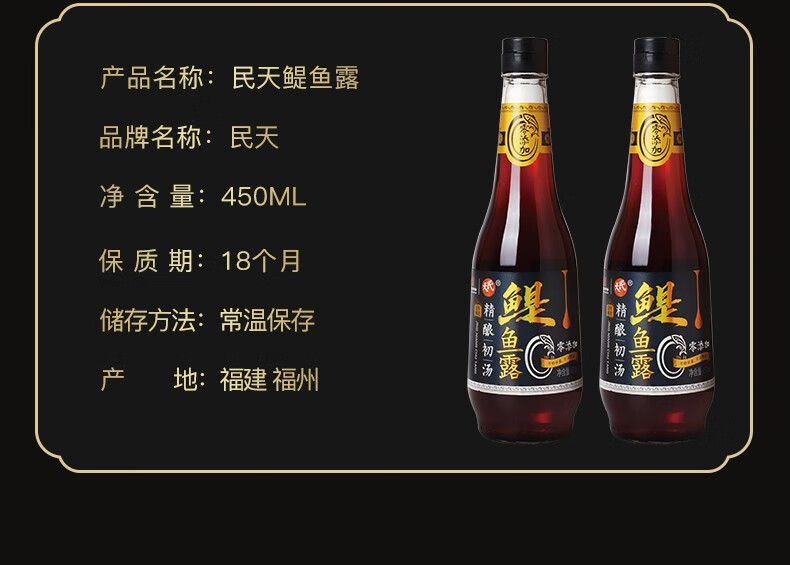 民天福建福州民天中华老字号国有酿造精酿鳀鱼鱼露450ml1瓶调味品煲汤 民天鳀鱼露450ml*瓶