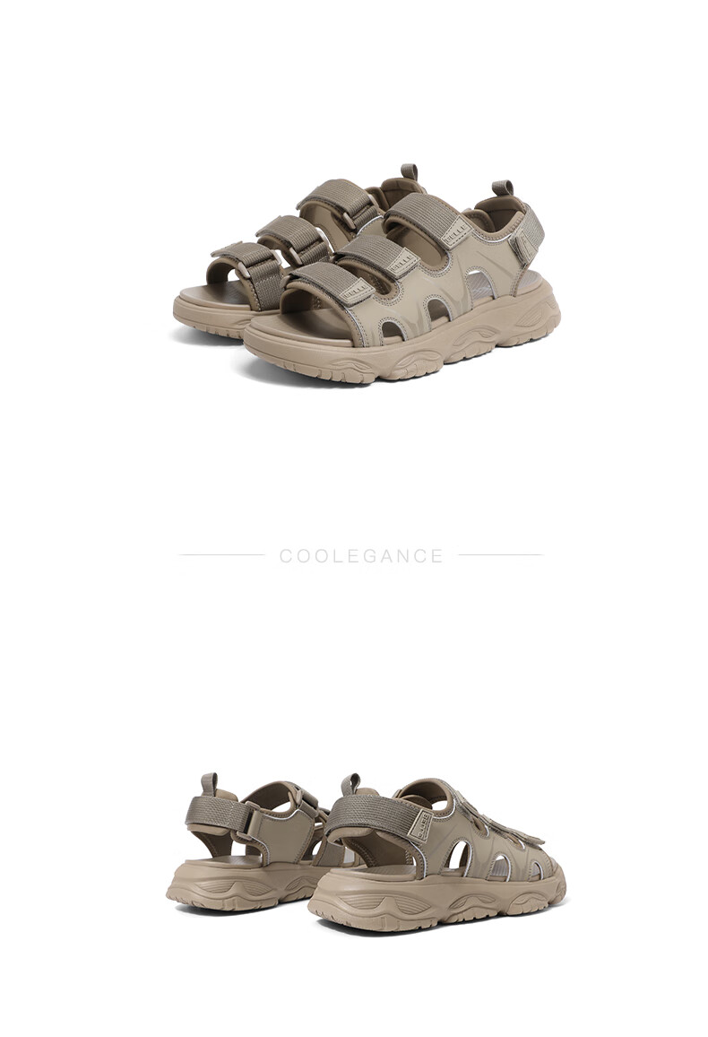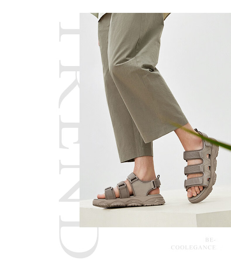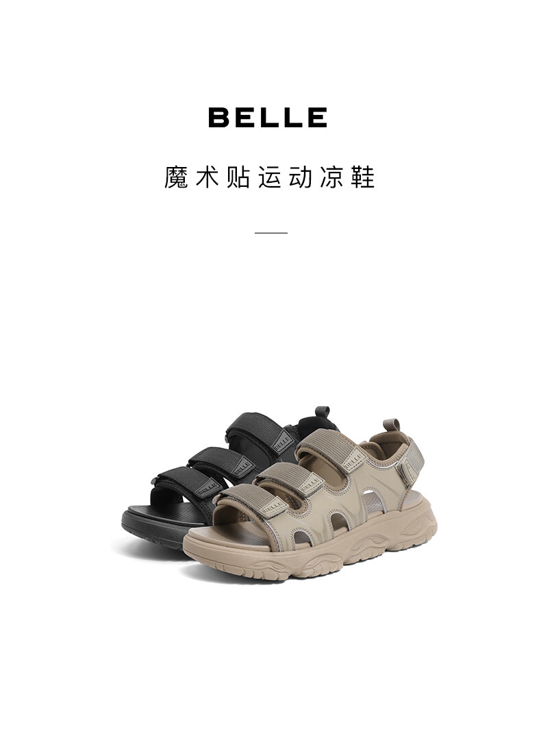 百丽沙滩鞋男鞋2023夏新商场同款魔术贴户外休闲运动凉鞋A1152BL3 杏色 40