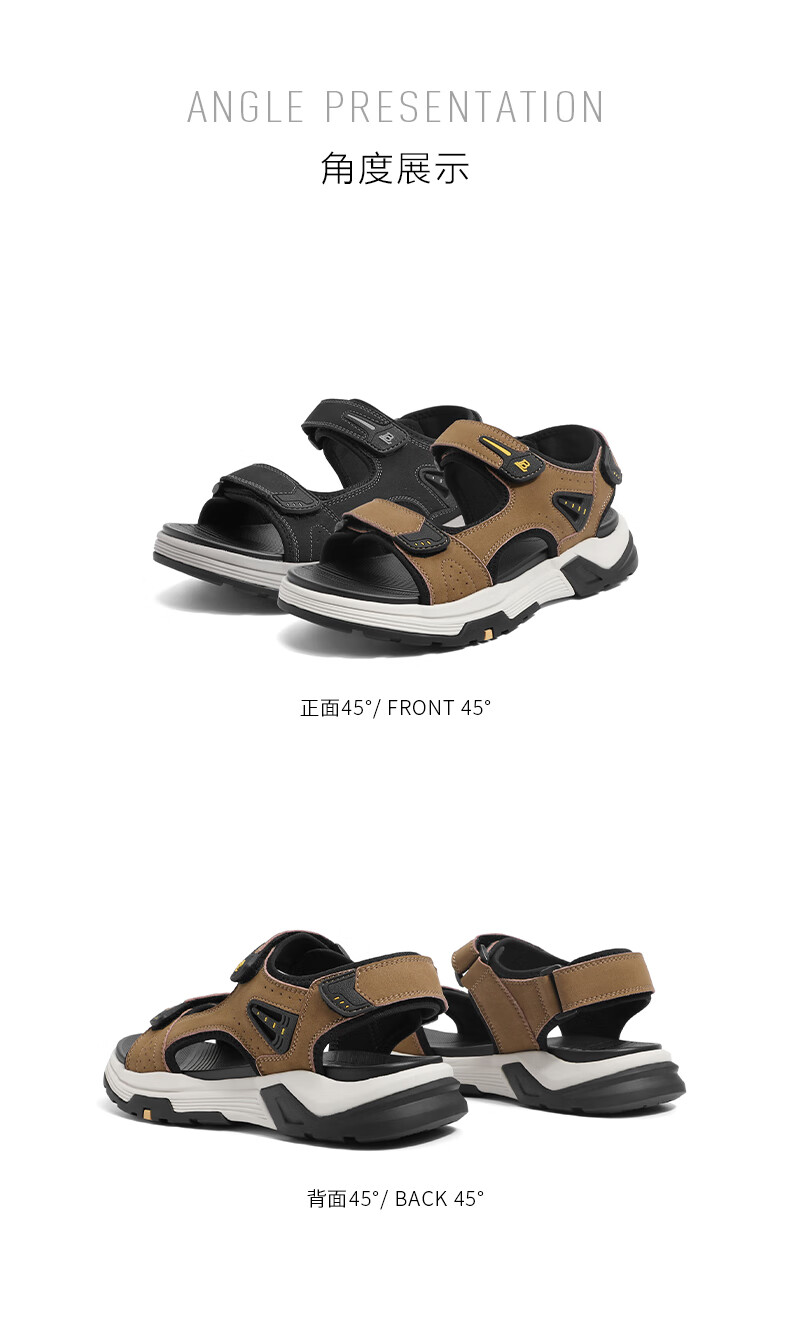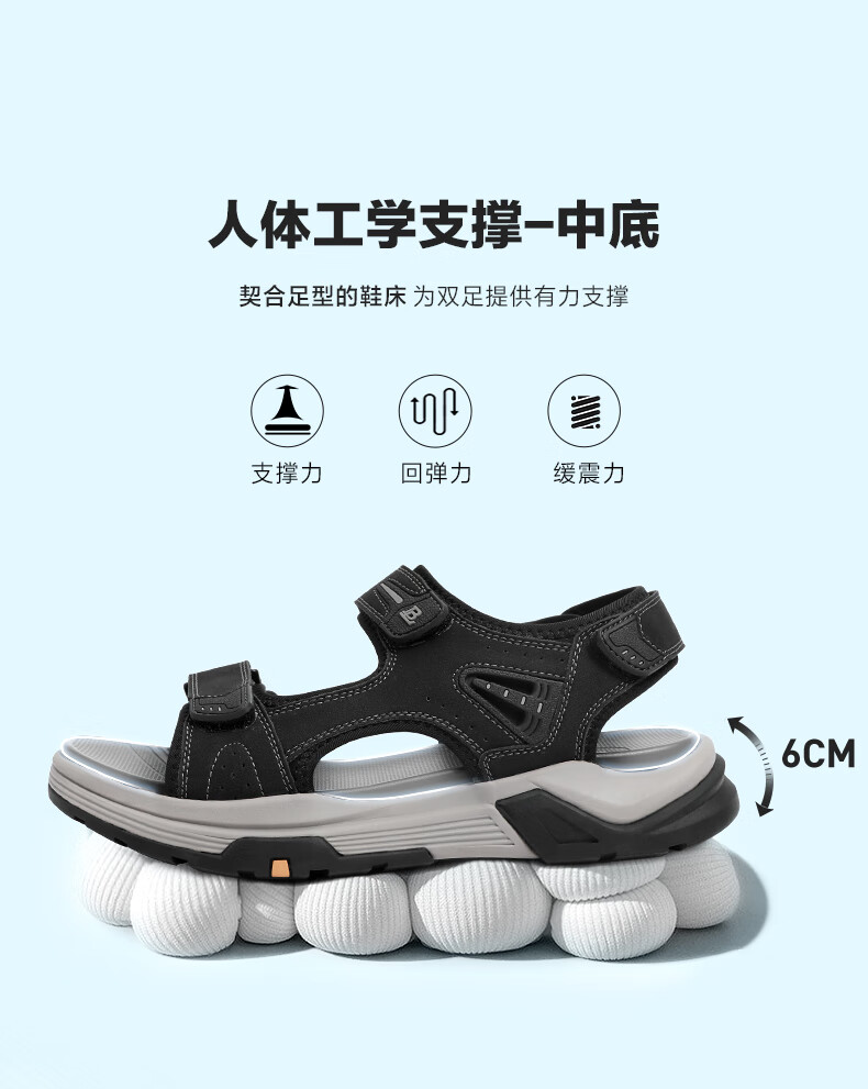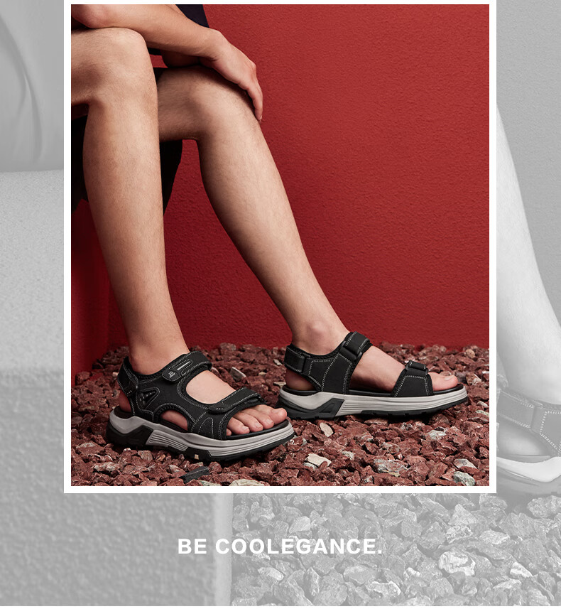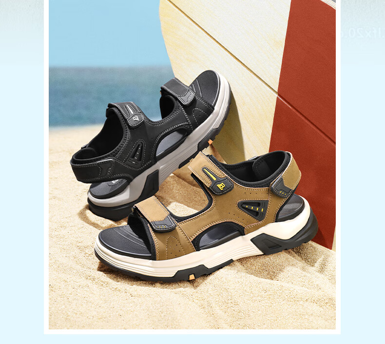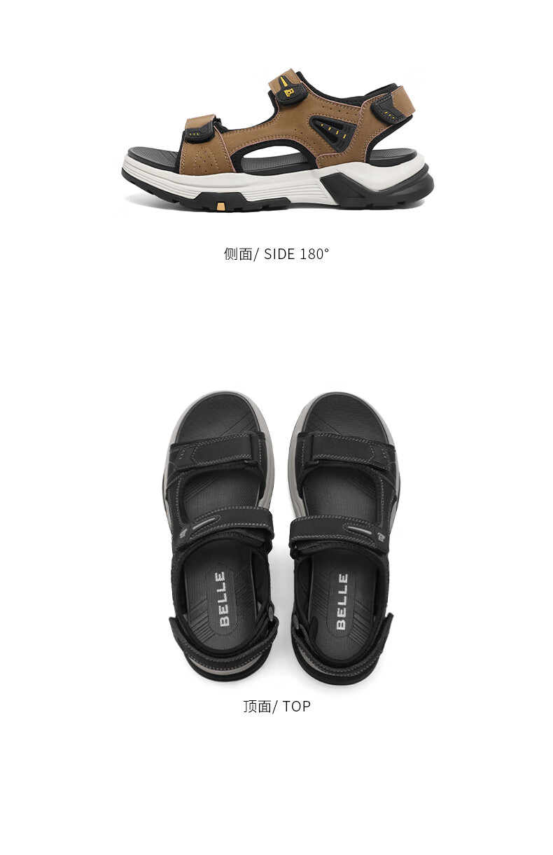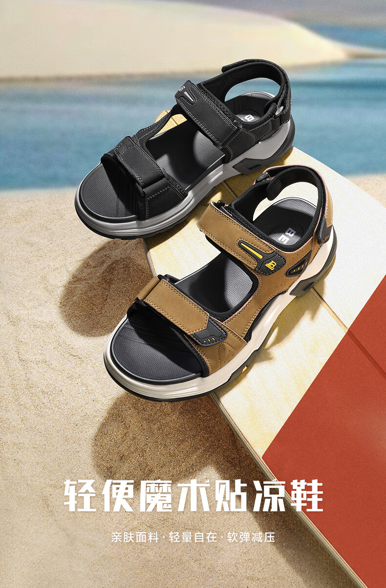 百丽潮搭休闲凉鞋男2023夏季新款魔术贴户外度假沙滩凉鞋A1146BL3 黑色 40