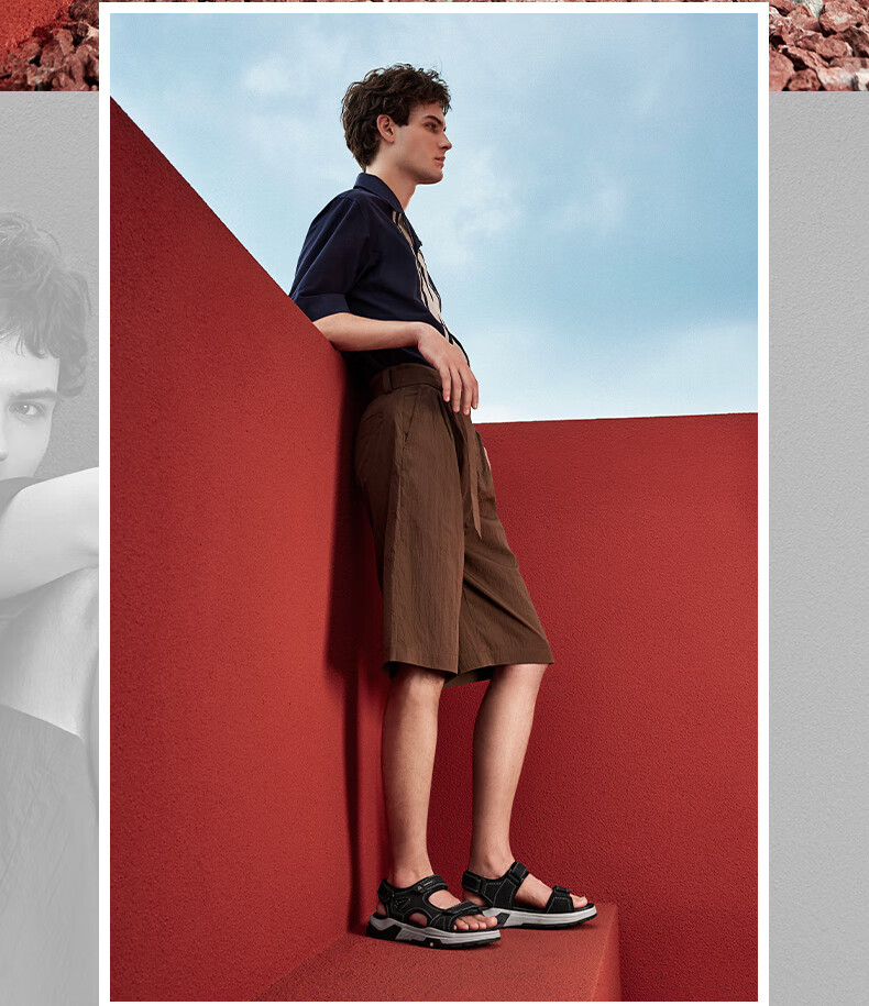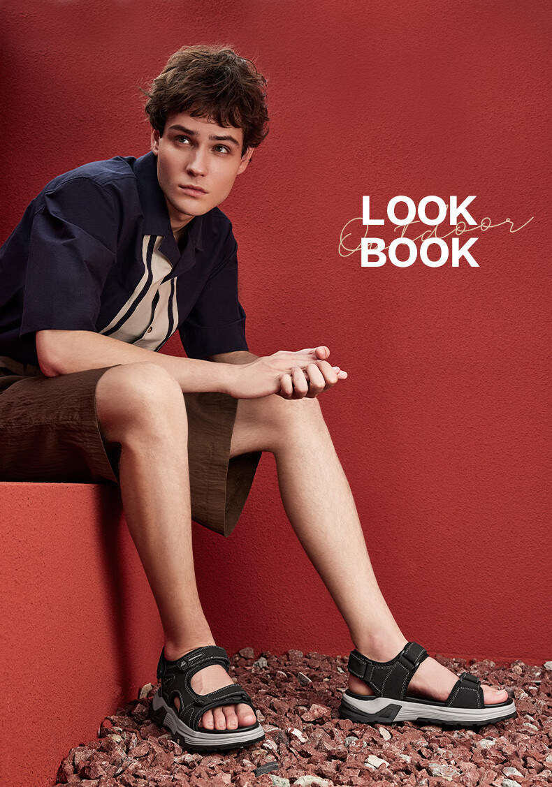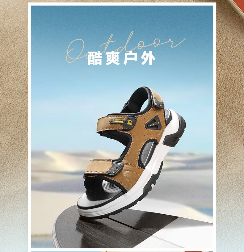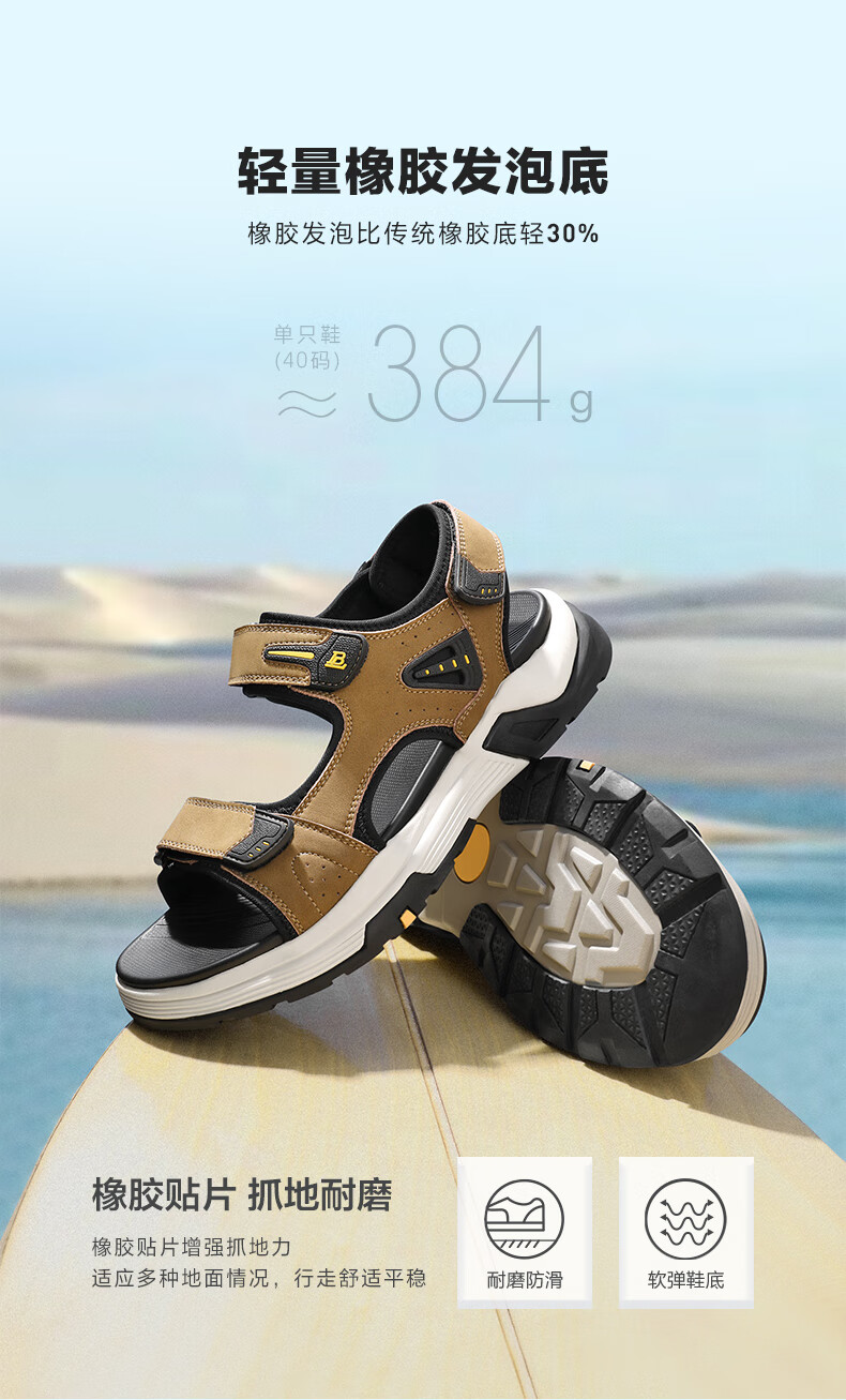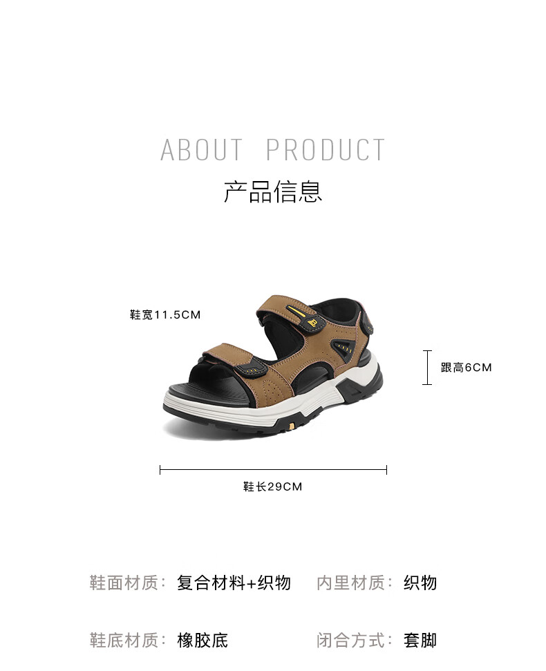 百丽潮搭休闲凉鞋男2023夏季新款魔术贴户外度假沙滩凉鞋A1146BL3 黑色 40