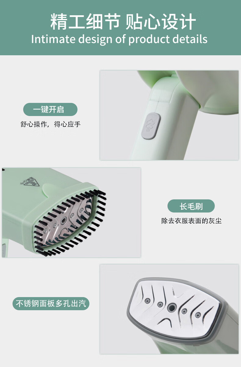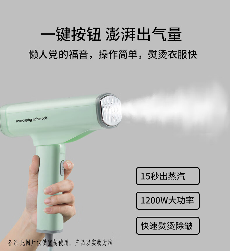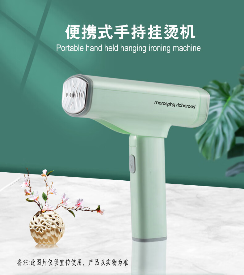 morosphy richerods手持挂烫机家用蒸汽杀菌除菌烫斗小型熨烫机 便携旅行出差迷你熨衣服神器 绿色 MF-98899