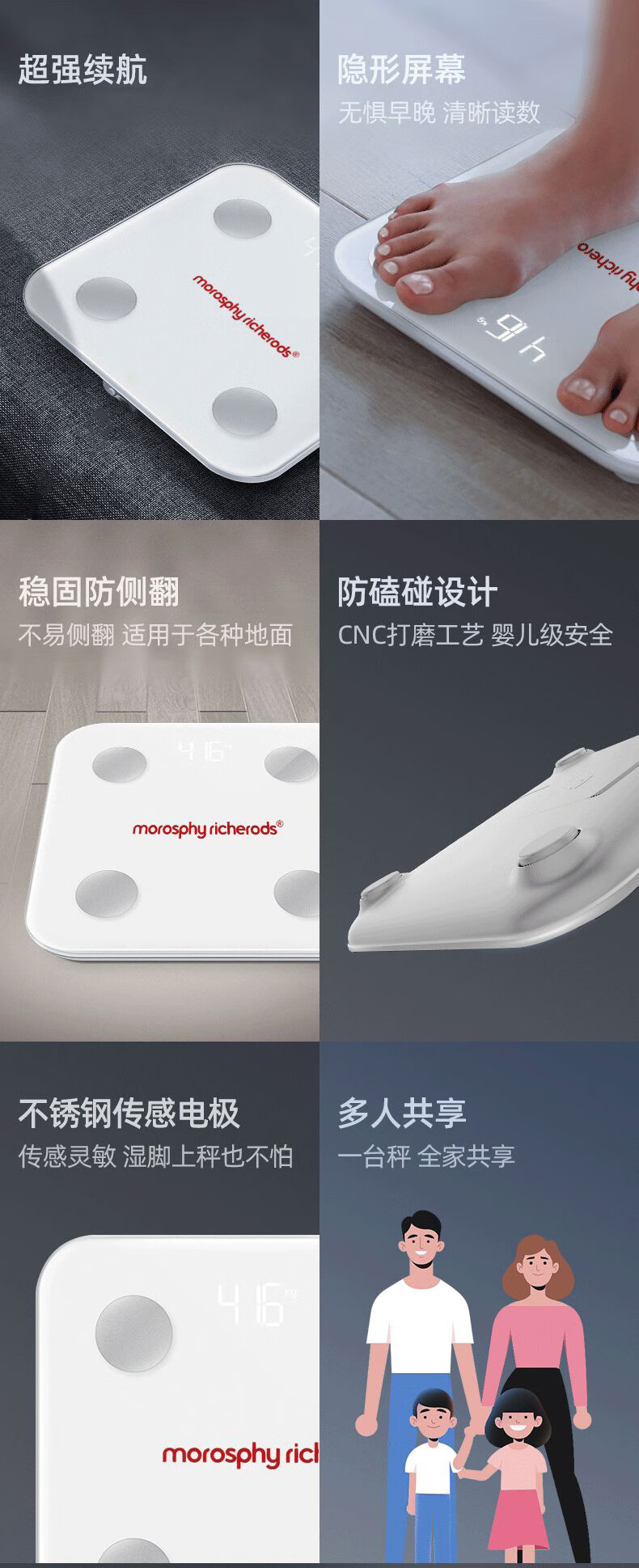 morosphy richerods智能电子秤体脂秤家用体重秤高精准17项身体数据平衡人体秤 白色 MF-98066