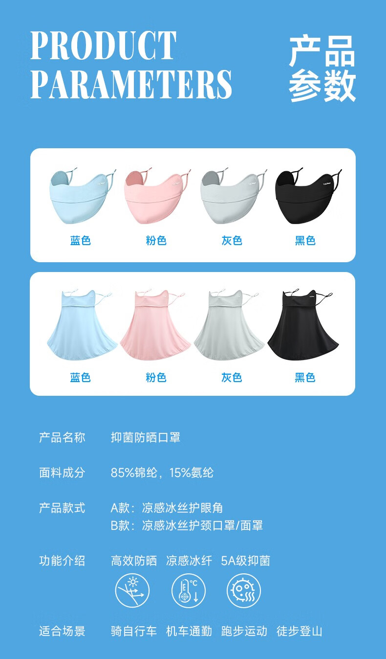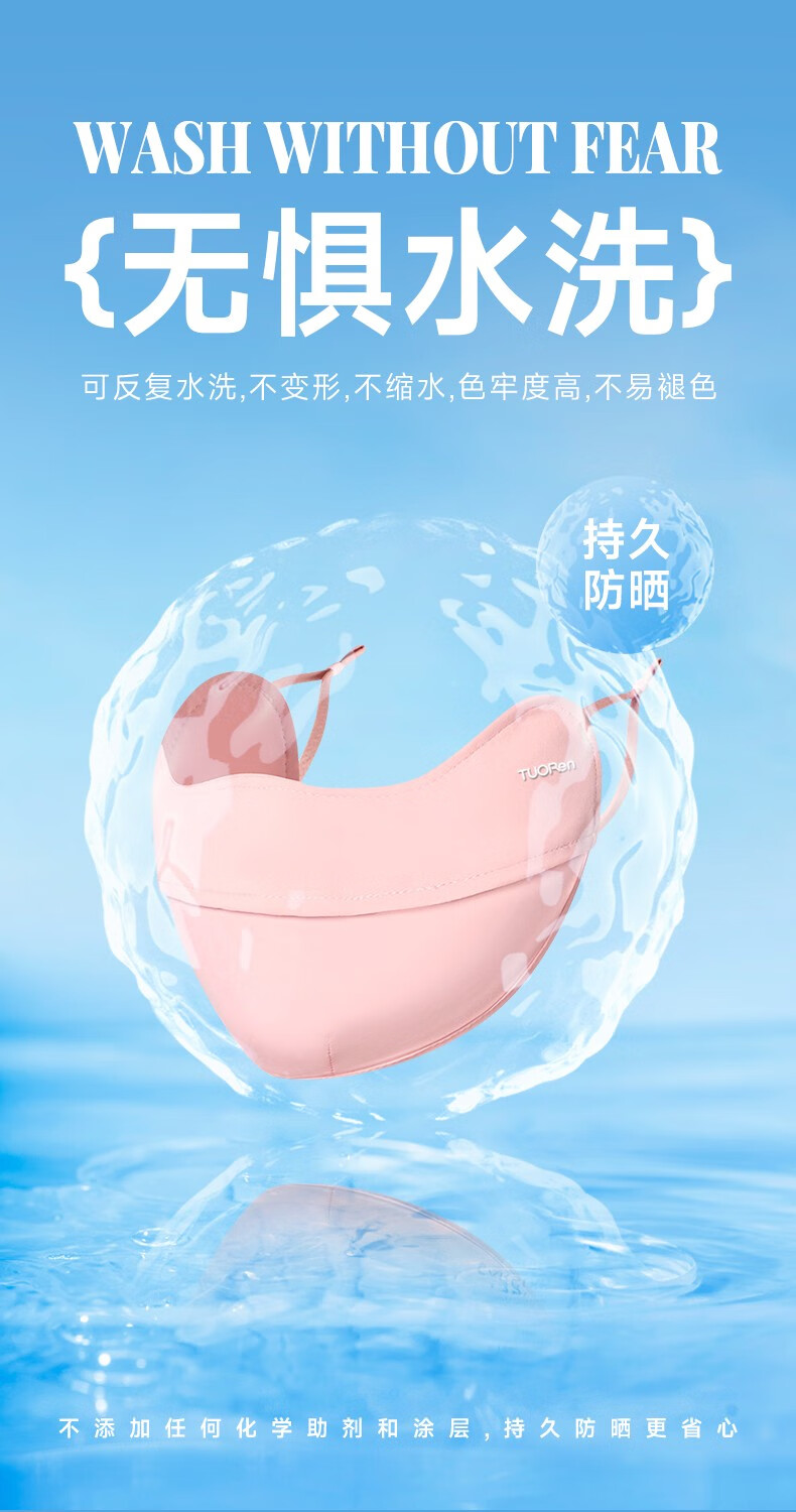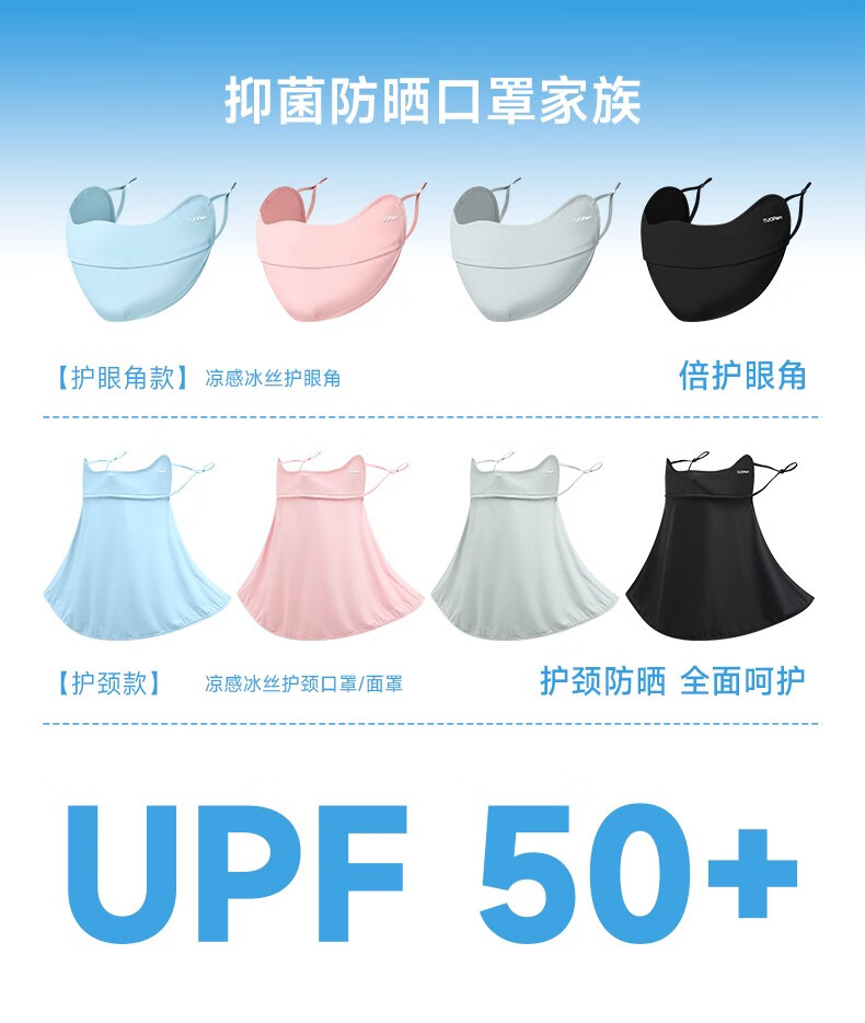 驼人康君防晒面罩女夏季防紫外线轻薄透气户外开车遮阳冰丝防晒口罩护眼角 樱花粉