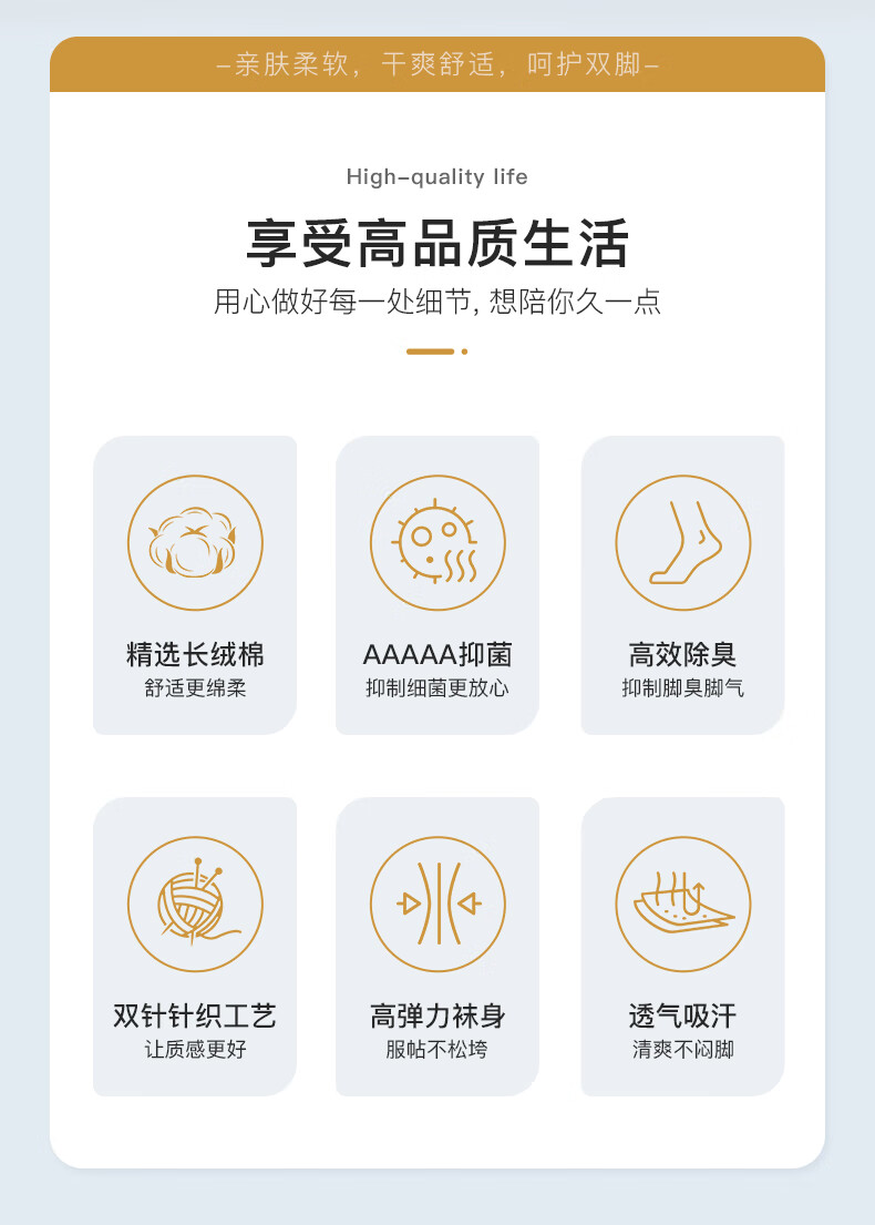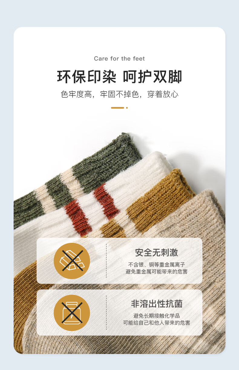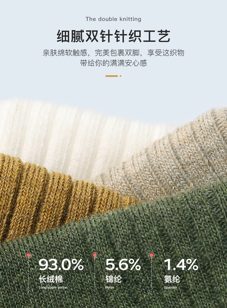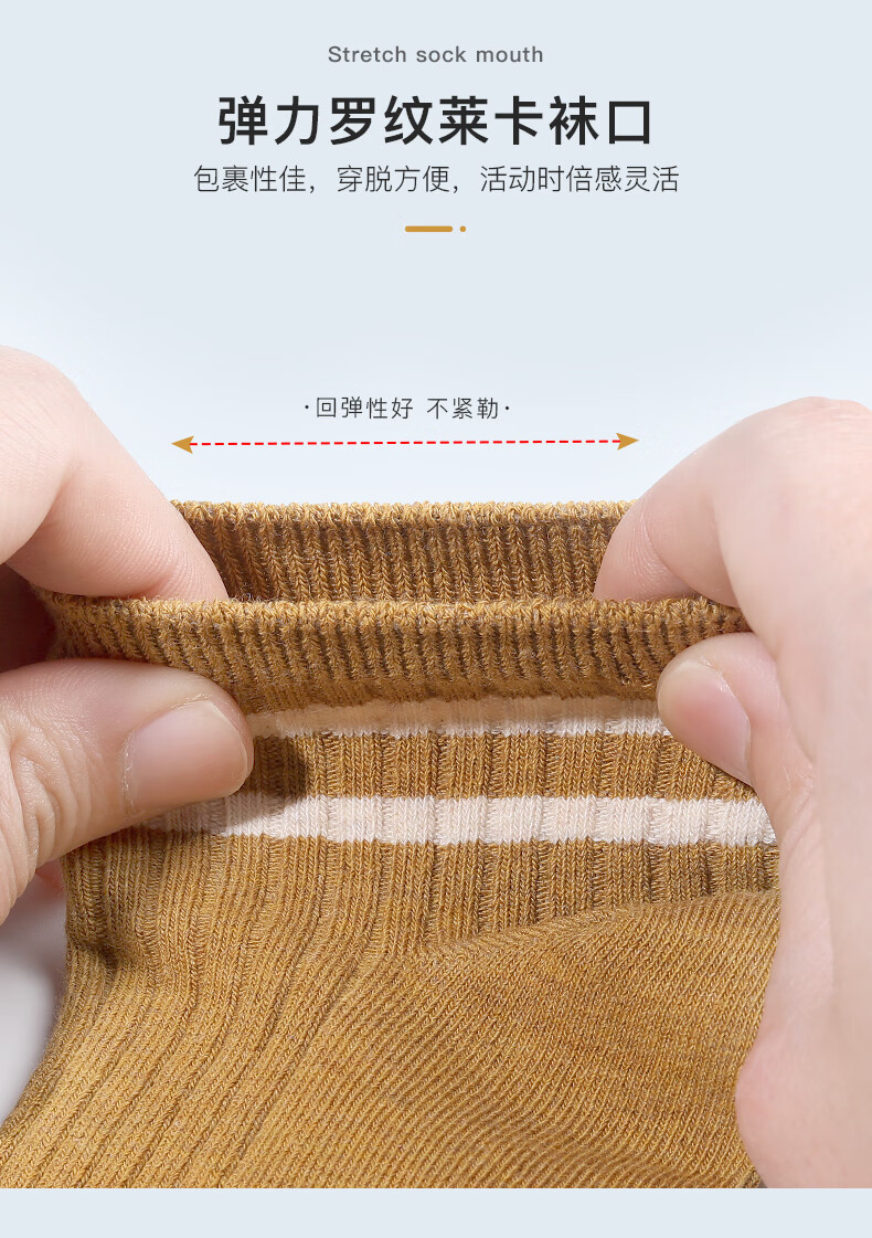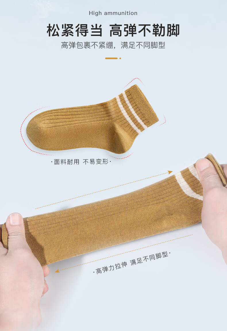 驼人康君女士袜子抑菌防臭四季款经典条纹撞色双针织工艺短筒女袜学生高棉 白/浅咖/墨绿/姜黄-4双装