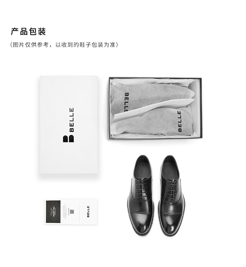 百丽牛皮商务休闲皮鞋男百搭马丁鞋子橡胶底86181CM0 黑 42