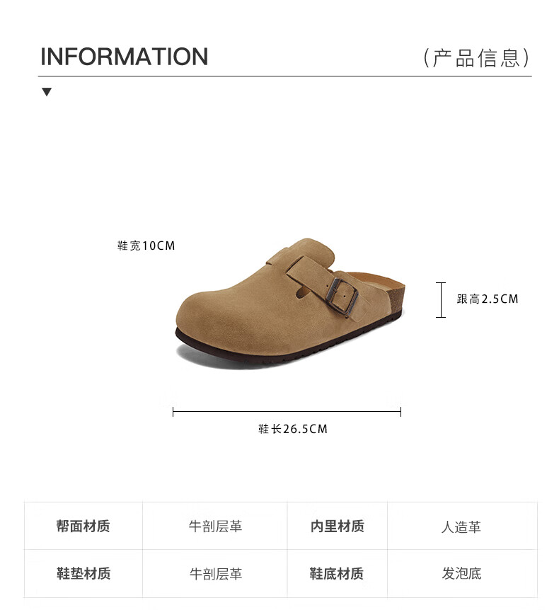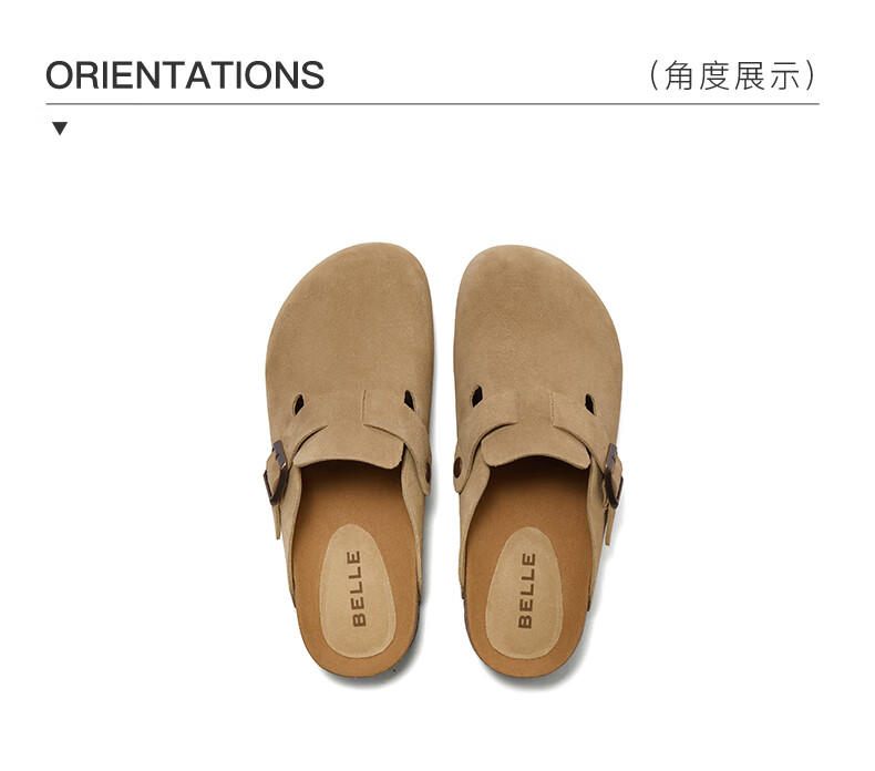 百丽休闲包头拖鞋男2023夏新商场同款一脚蹬懒人鞋勃肯鞋B3731BH3 杏色 38
