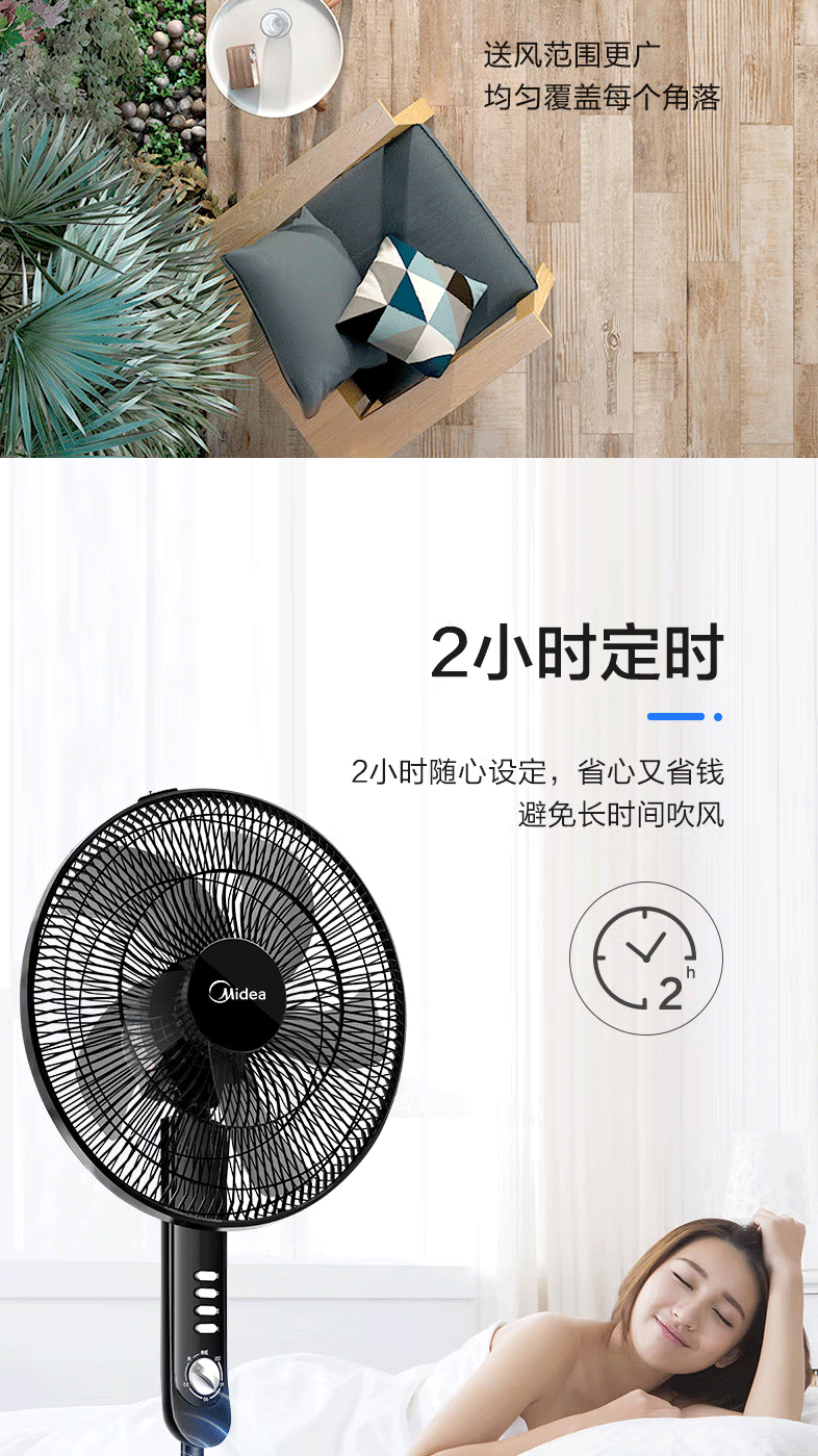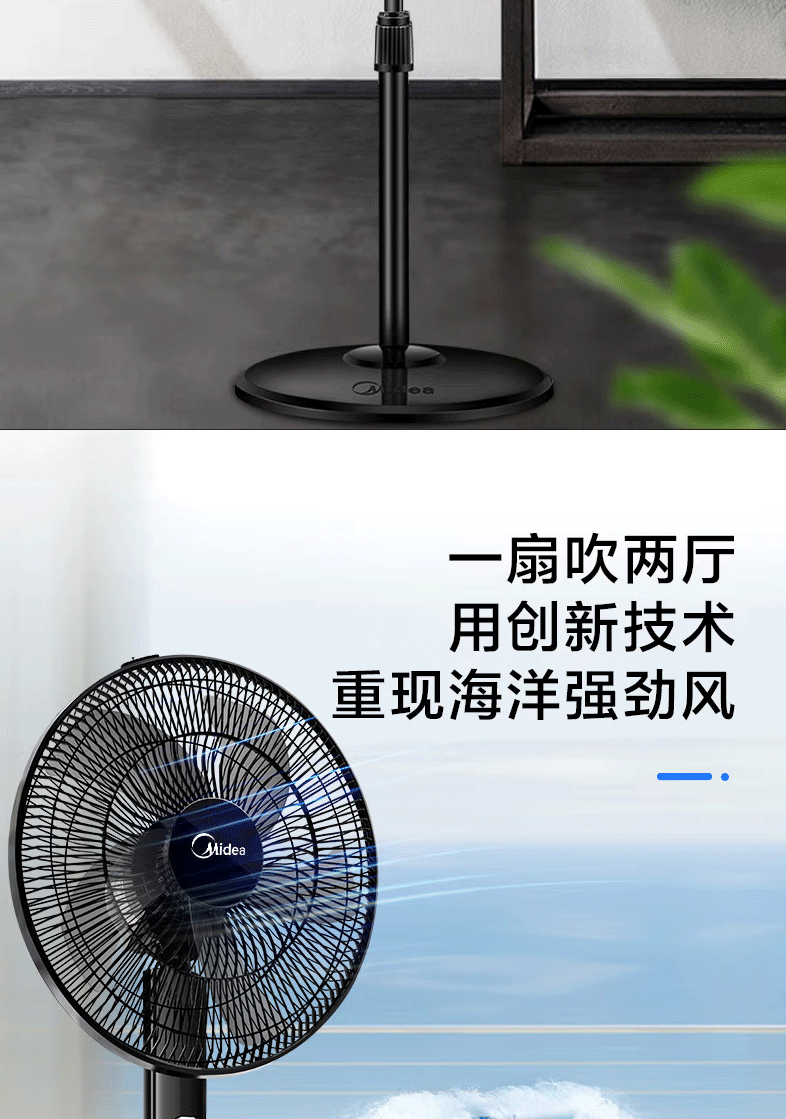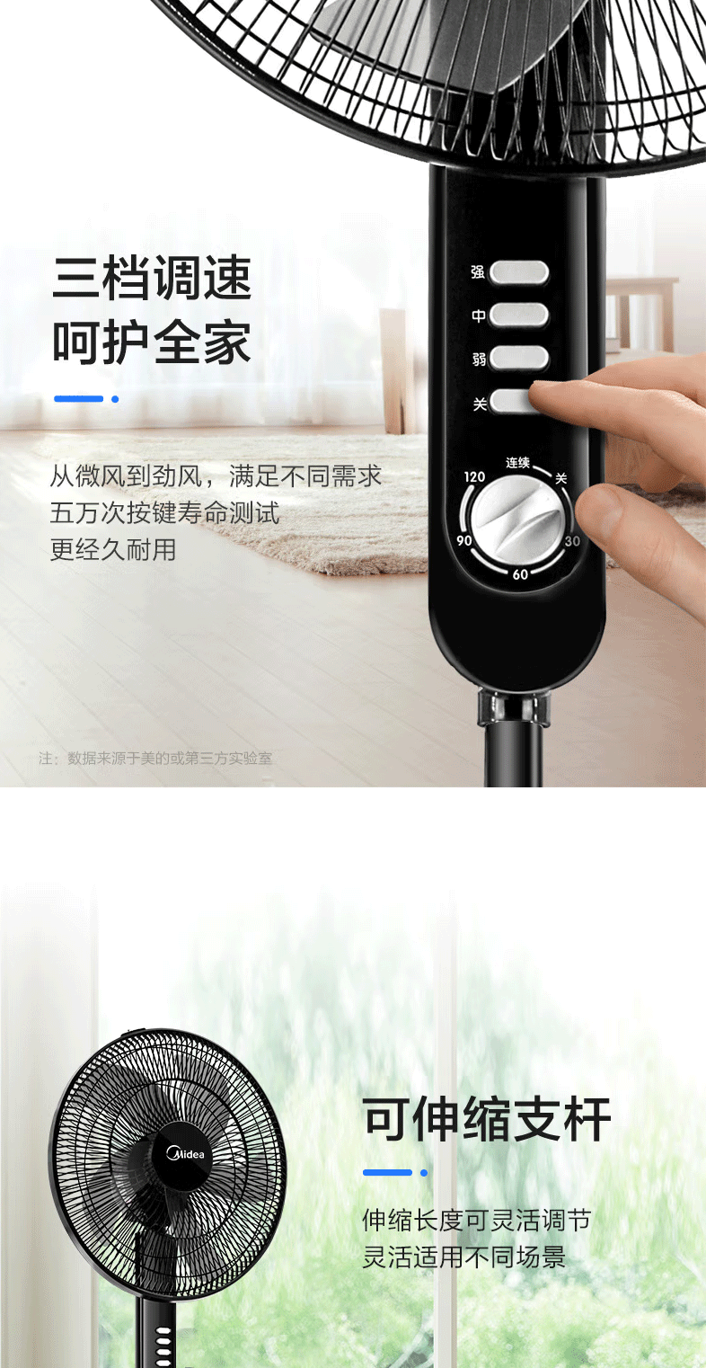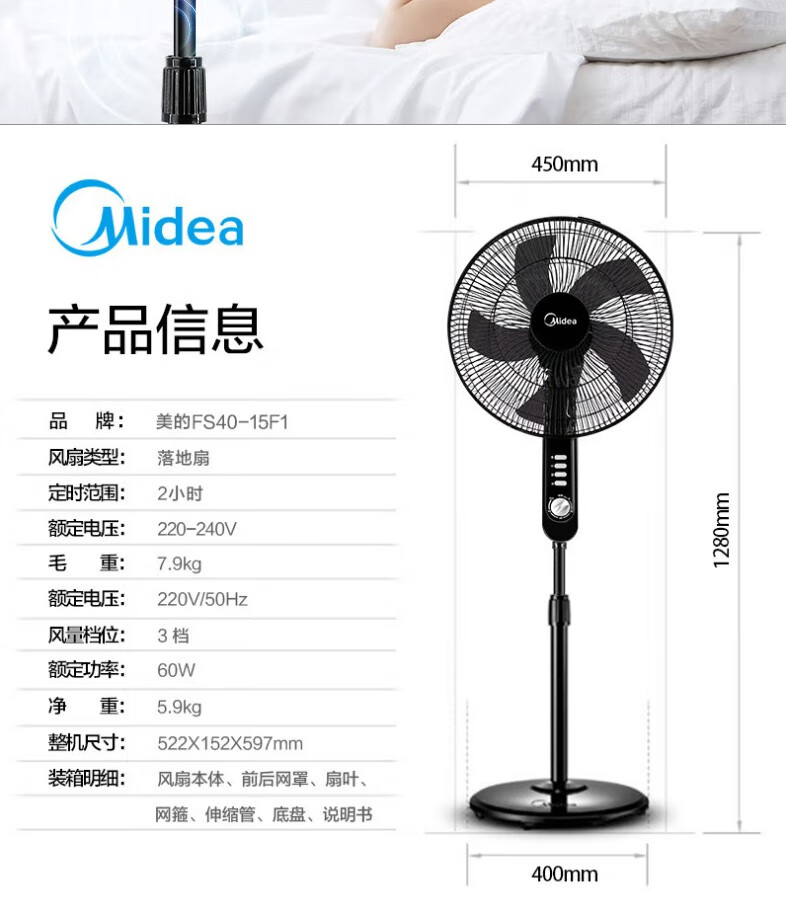 美的(Midea)FS40-15F1电风扇家用风扇卧室落地扇台地两用立式电扇宿舍大风量摇头五叶定时机械款(线下同款)