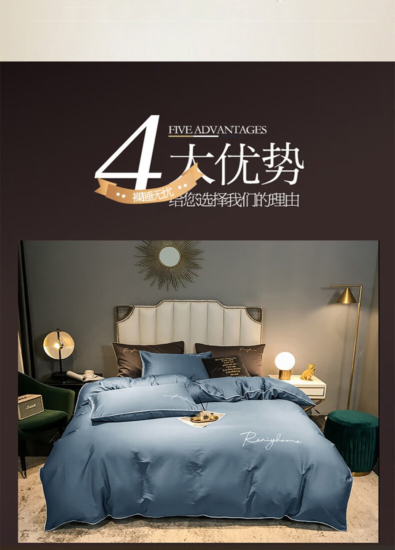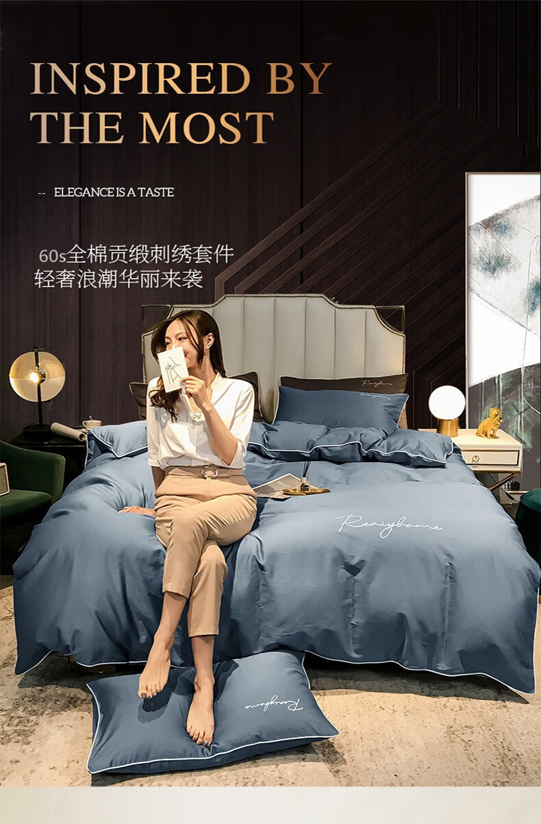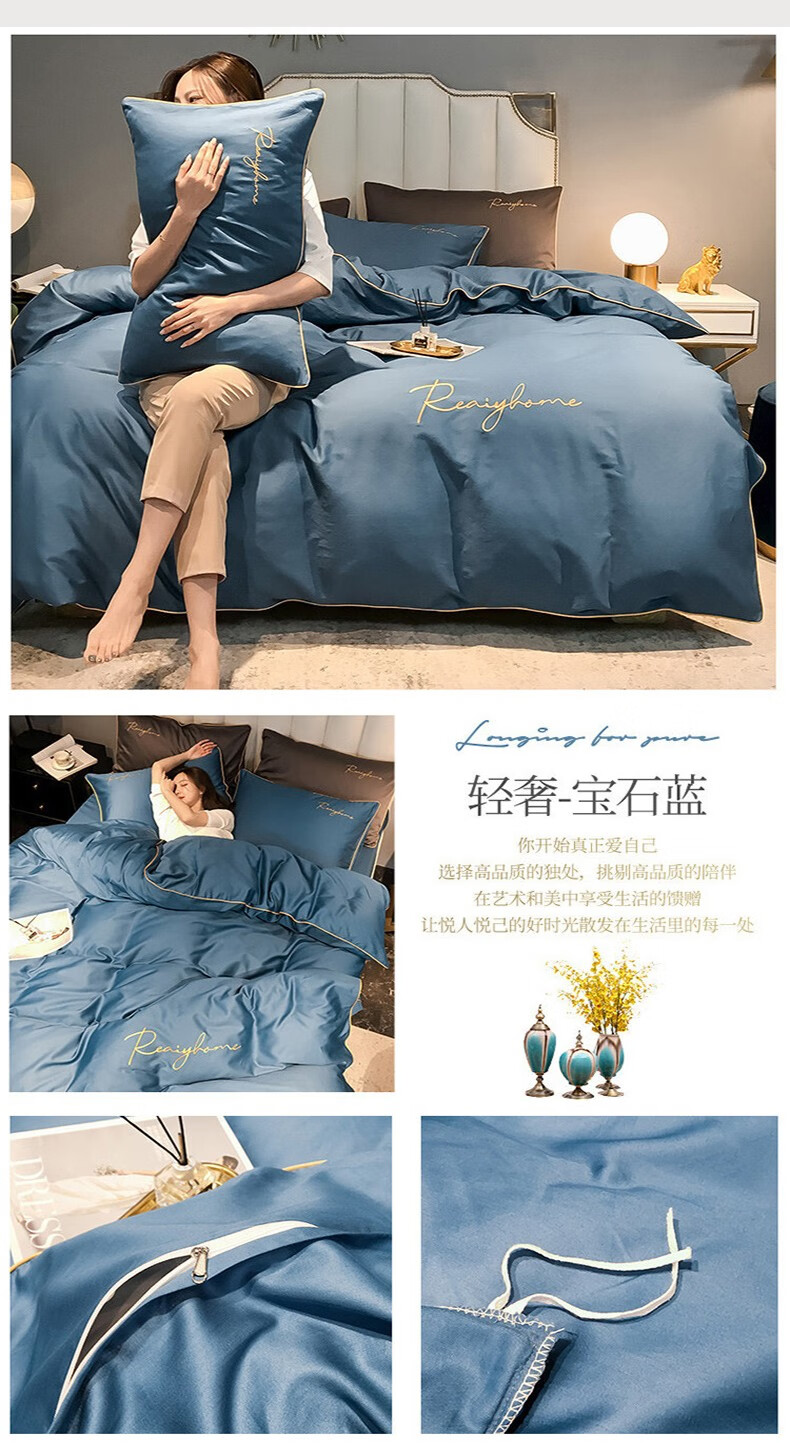 Tri-polar北欧风床上用品床品套件 TP2750 宝石蓝 1.8m床床笠款四件套
