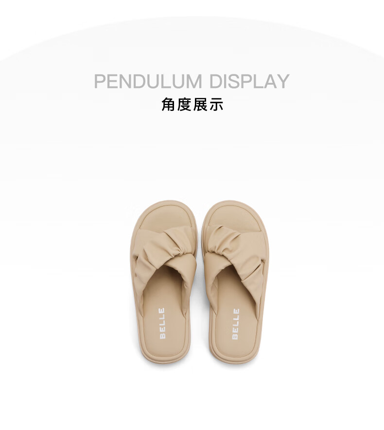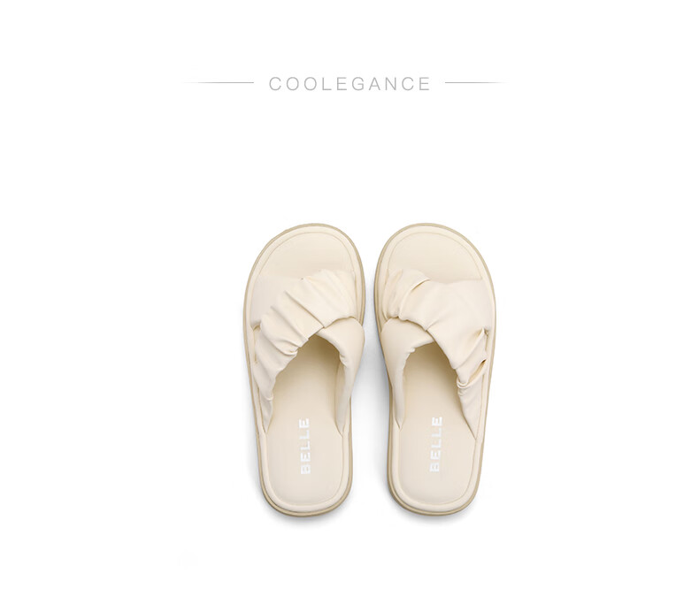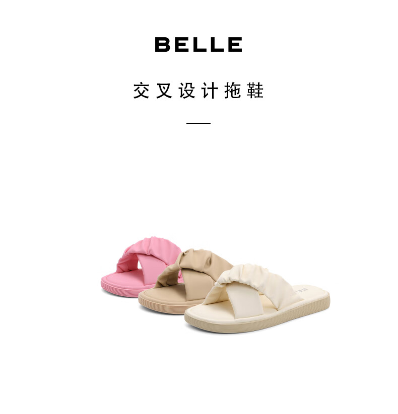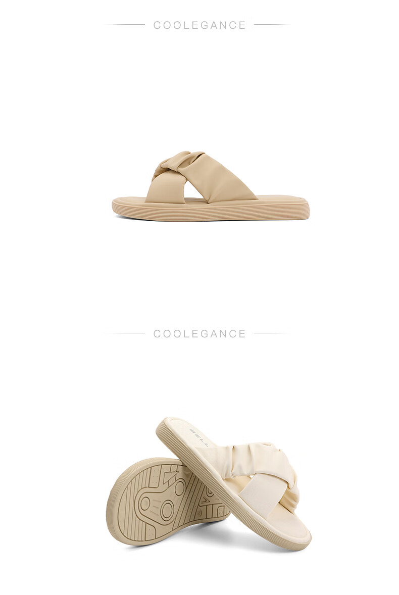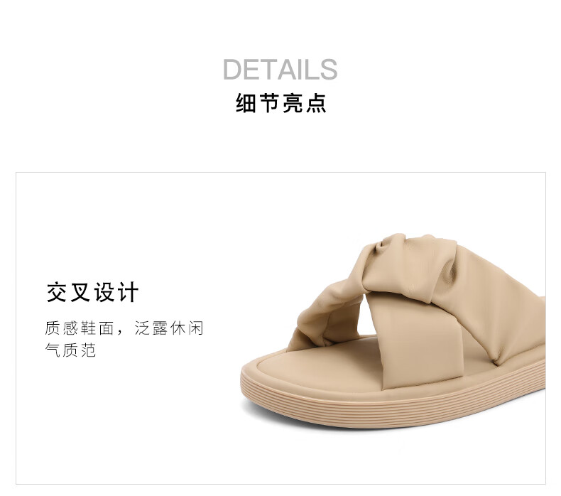 百丽交叉条带拖鞋女2023夏季新款舒适一字拖B1278BT3 米色 37