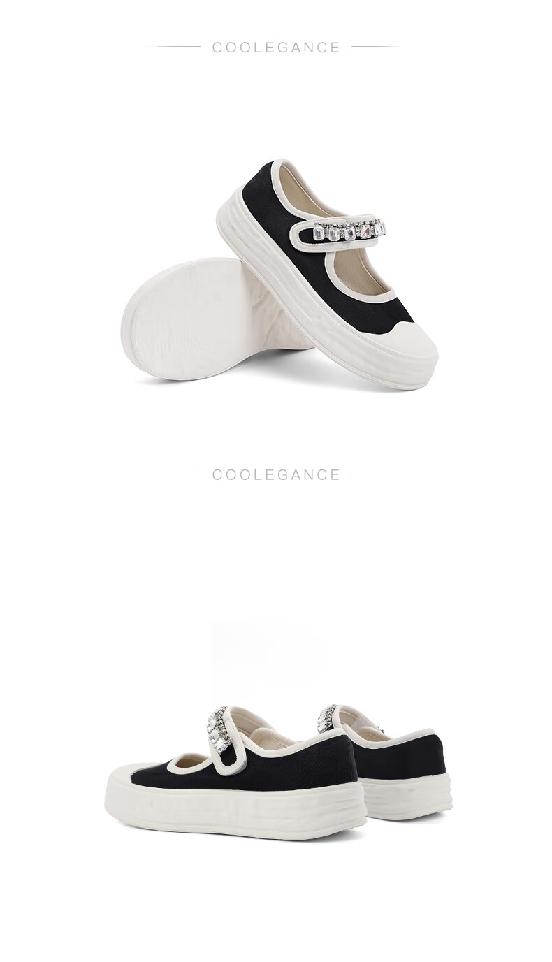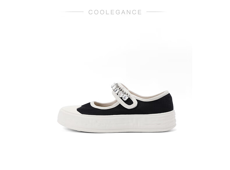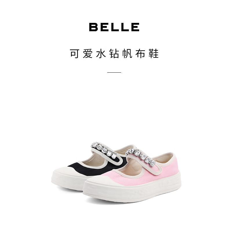 百丽水钻魔术贴帆布鞋童鞋2023春季新商场同款可爱休闲鞋36330A83 黑色 34