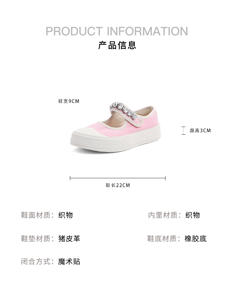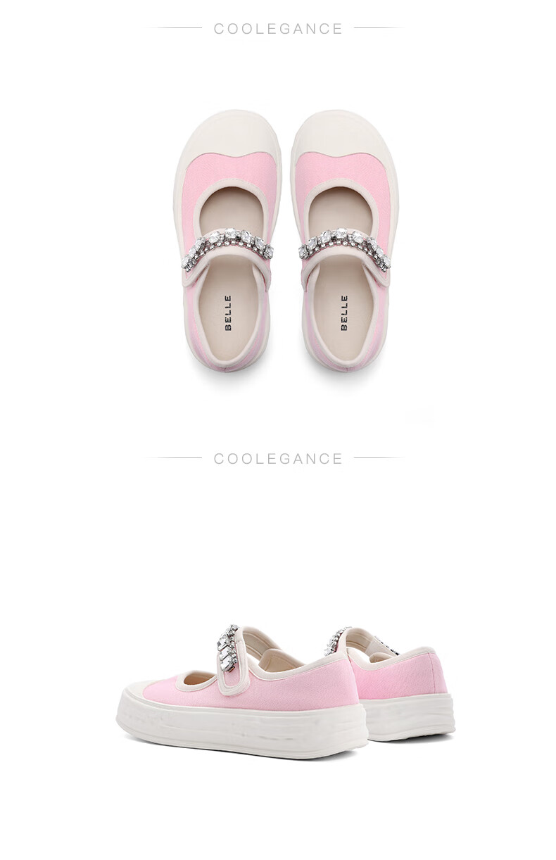 百丽水钻魔术贴帆布鞋童鞋202...