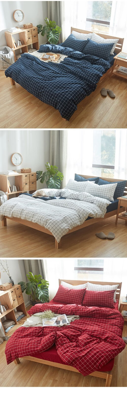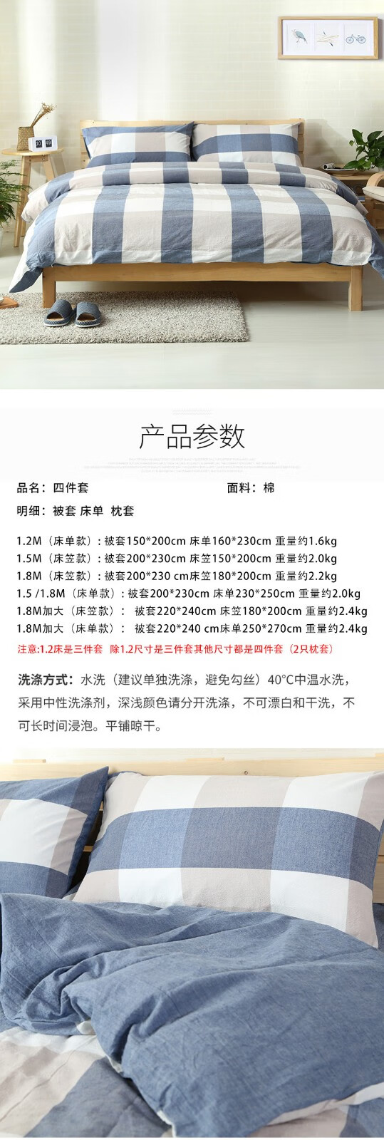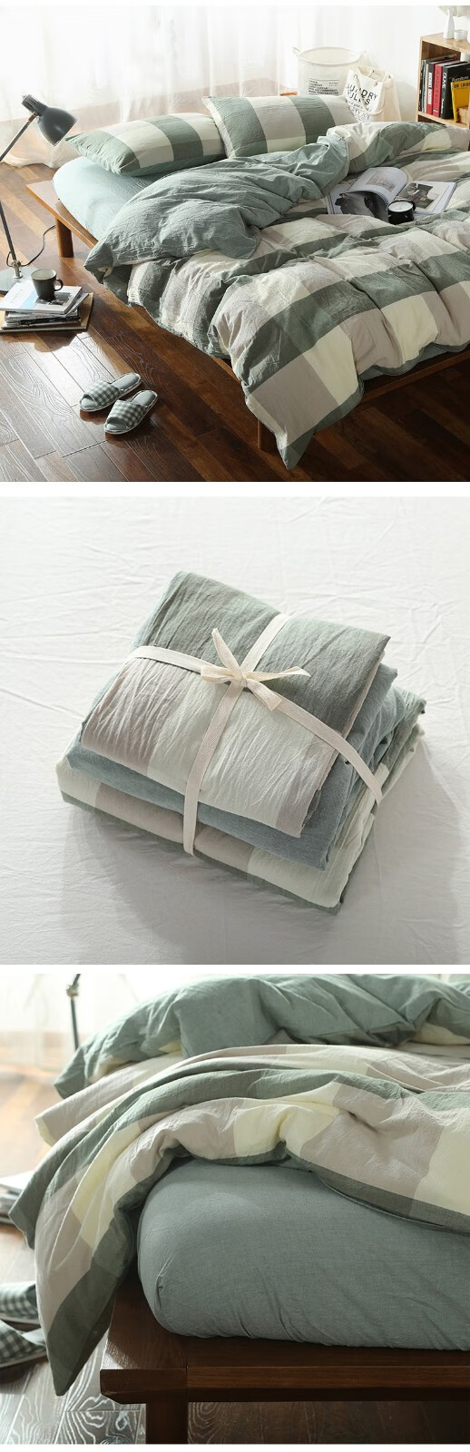 Tri-polar日式纯棉水洗棉格子三件套 TP2980 初春格 1.2m床单款三件套