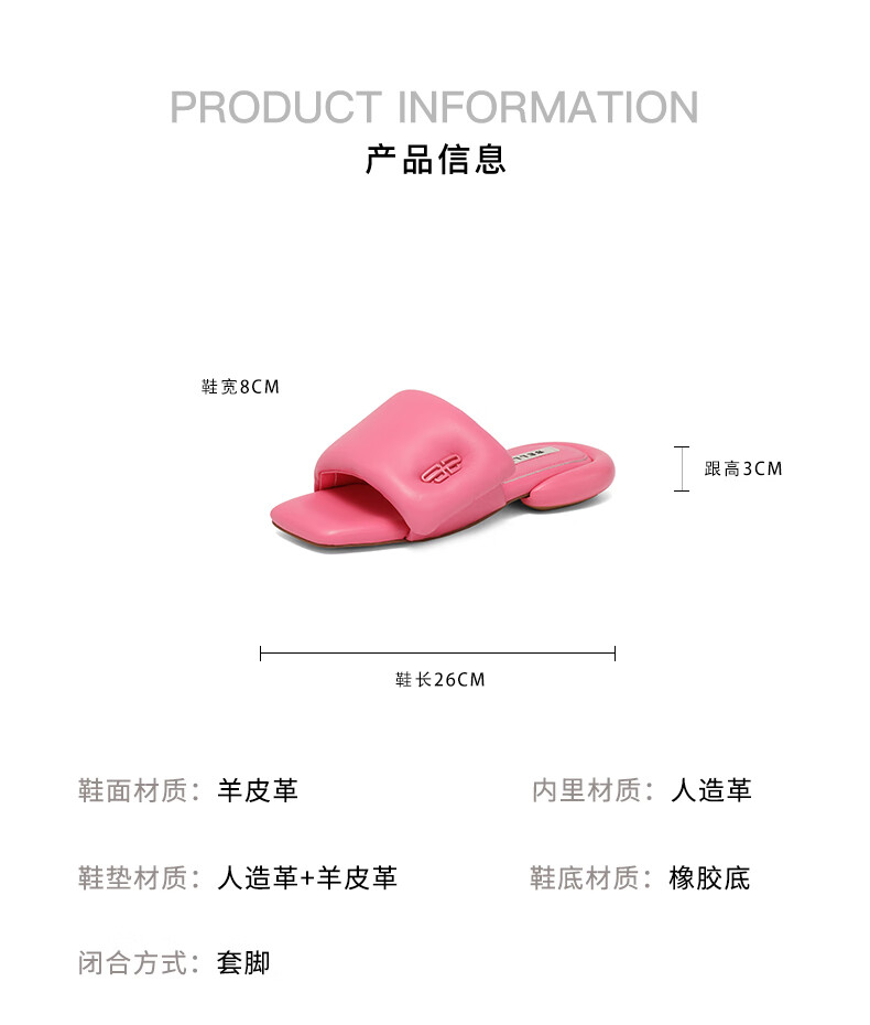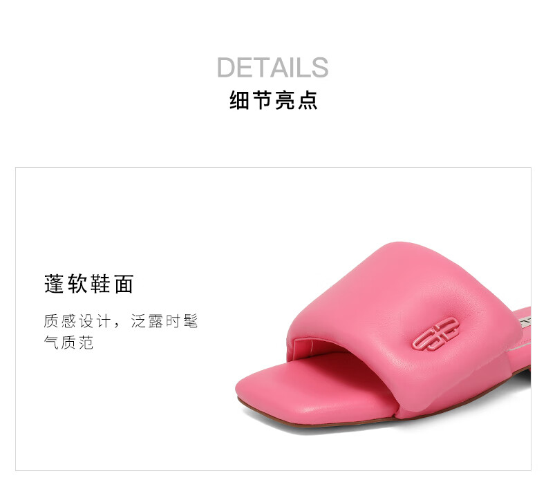 百丽【刘雯同款】嘭嘭一字拖女2...