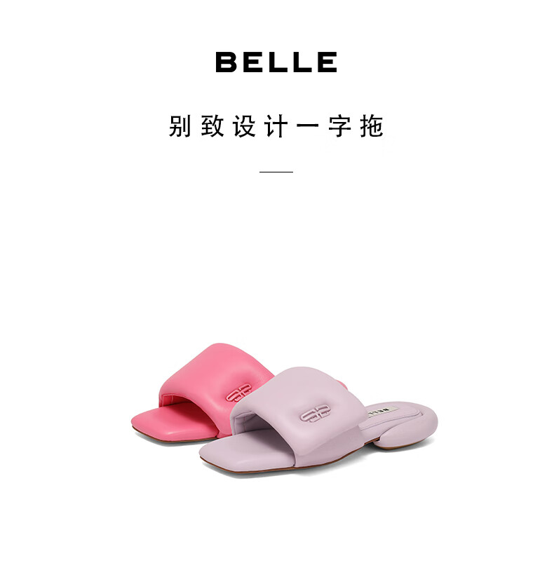 百丽【刘雯同款】嘭嘭一字拖女2023夏季新商场同款凉拖BIA32BT3 紫色 35