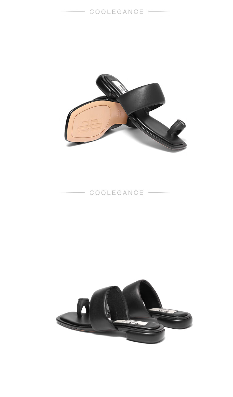 百丽xTOGGLER联名戒指一字拖女2023夏季新款趣味凉拖3XWB1BT3 黑色 37
