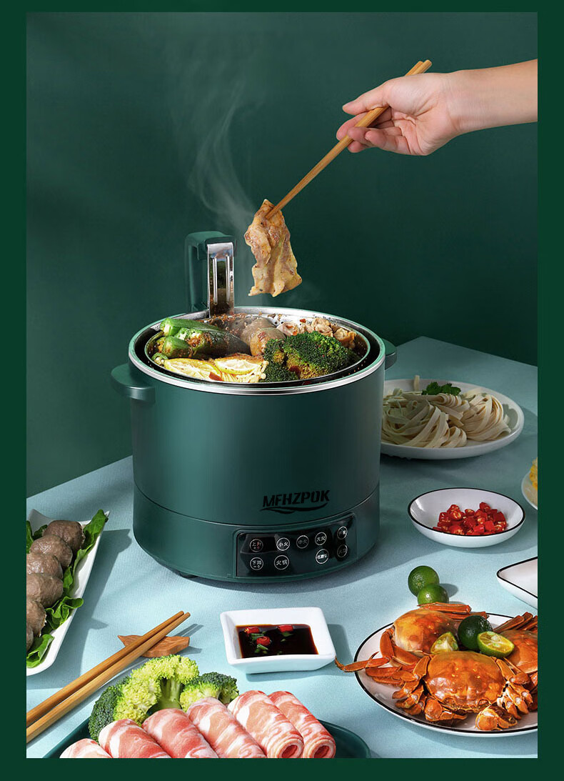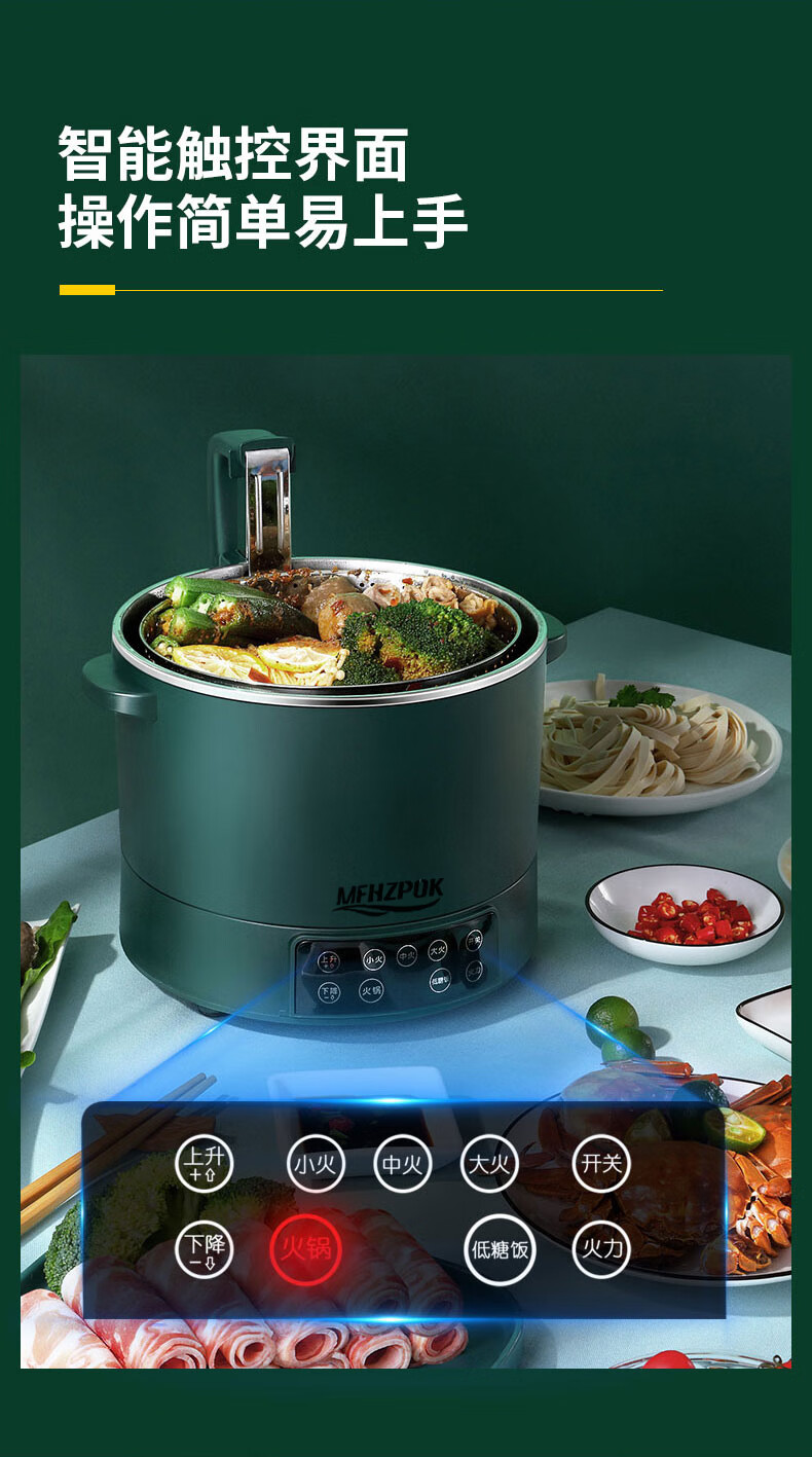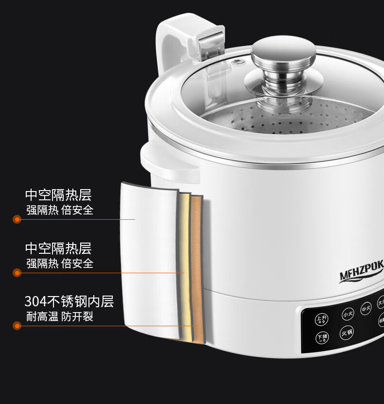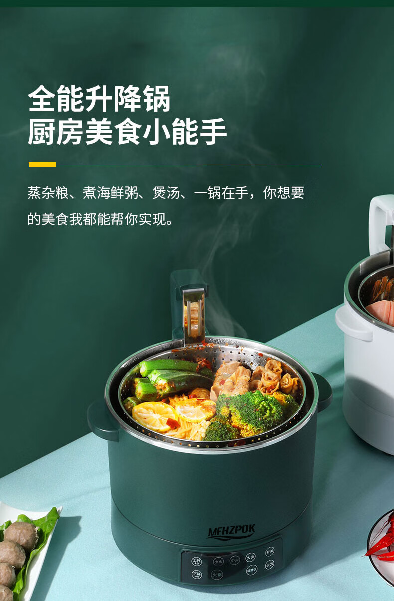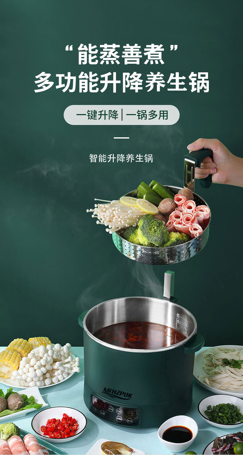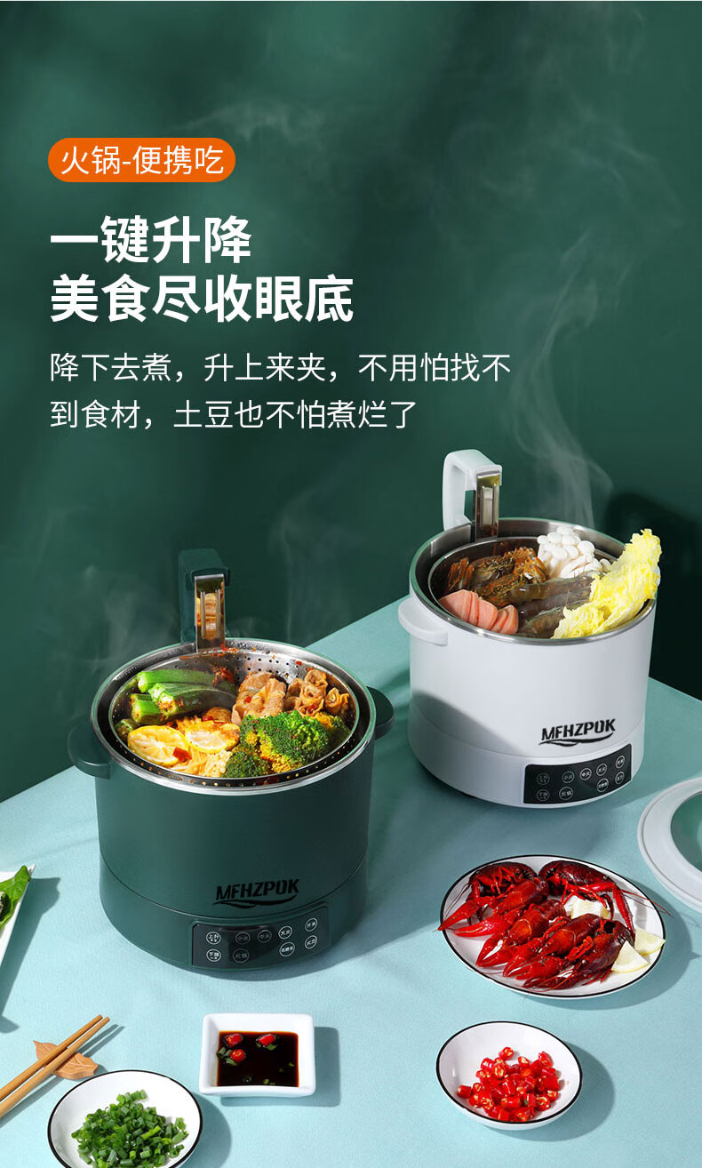 摩飞电器(MFHZPOK)多功能锅升降电火锅家用料理锅电热锅电煮锅火锅专用锅 [隔水炖煮/不溢锅] MF-1503 白