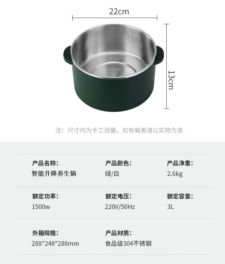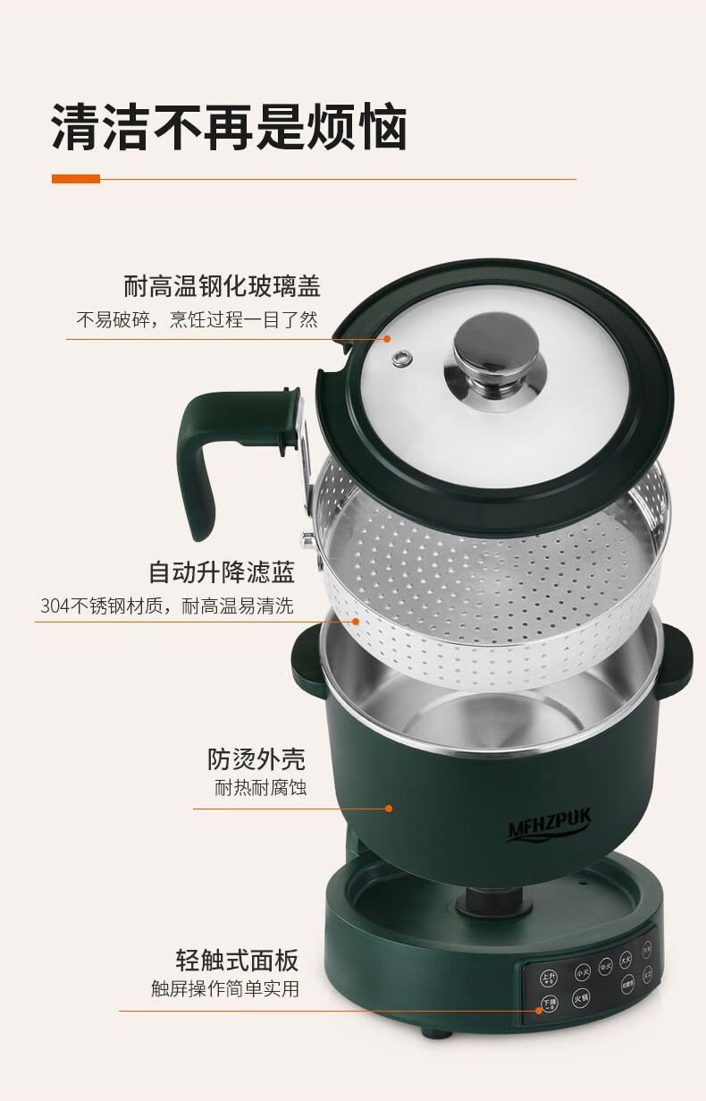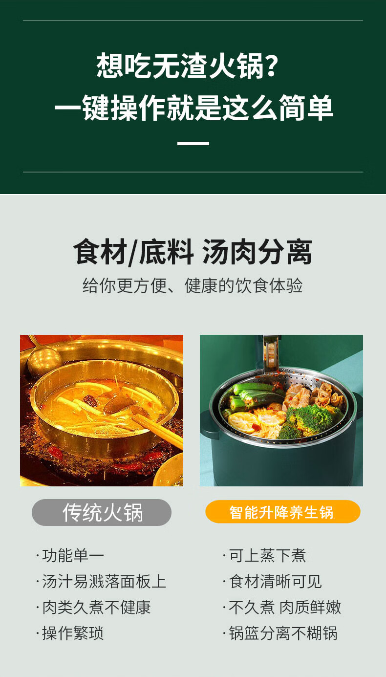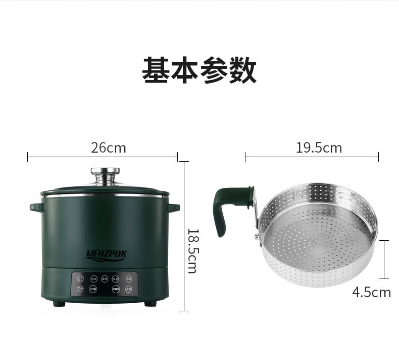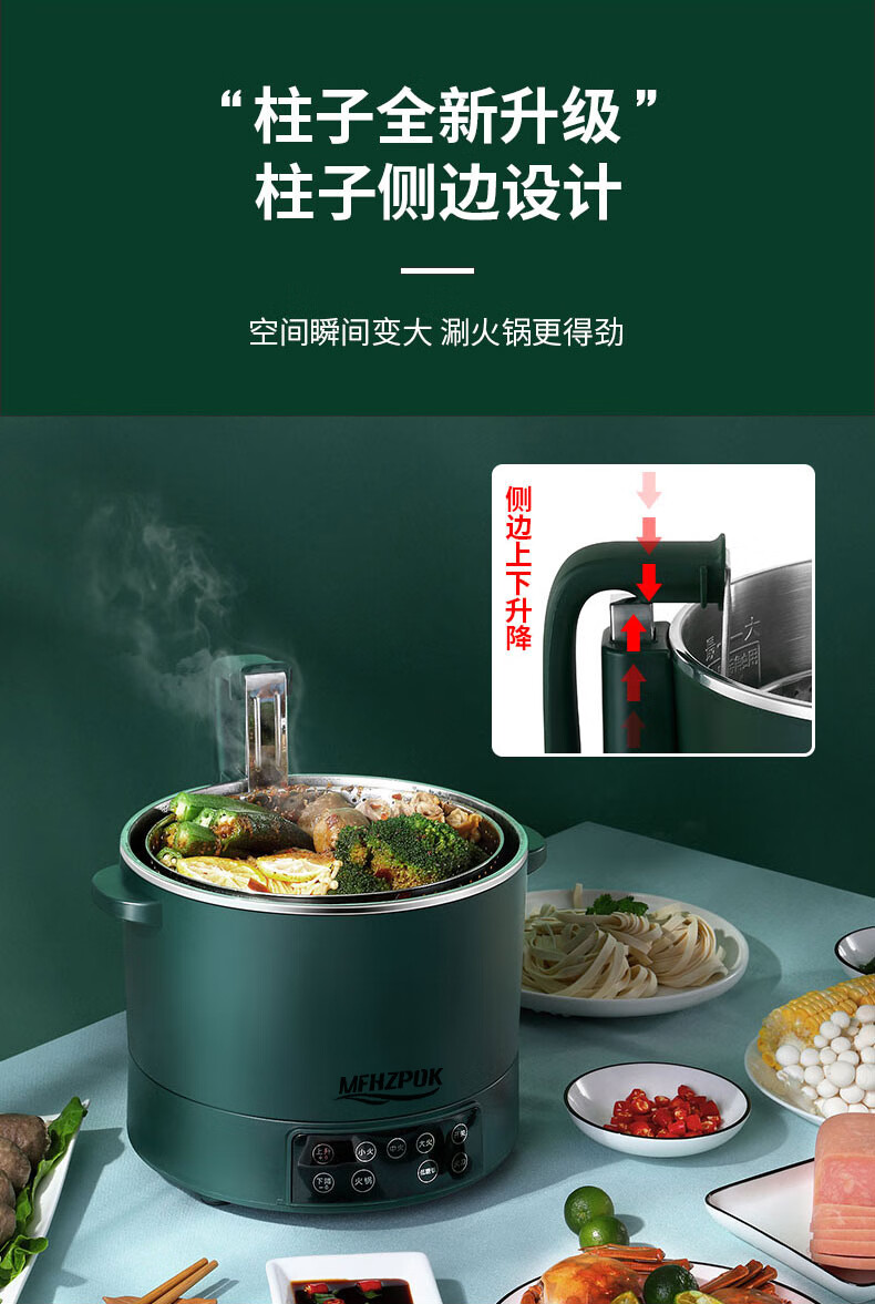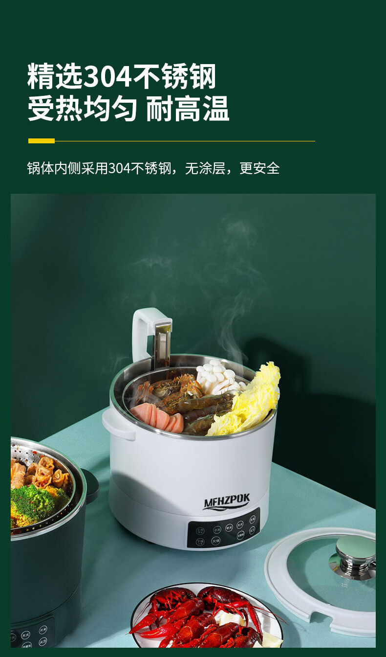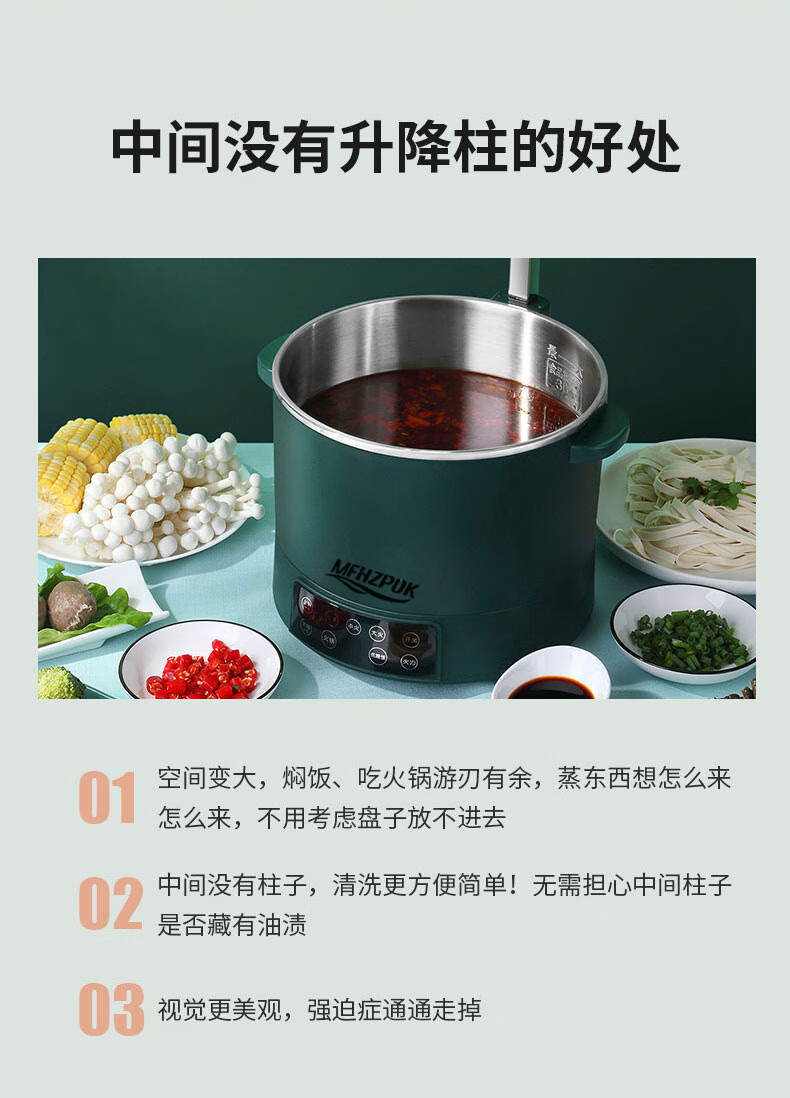 摩飞电器(MFHZPOK)多功能锅升降电火锅家用料理锅电热锅电煮锅火锅专用锅 [隔水炖煮/不溢锅] MF-1503 白