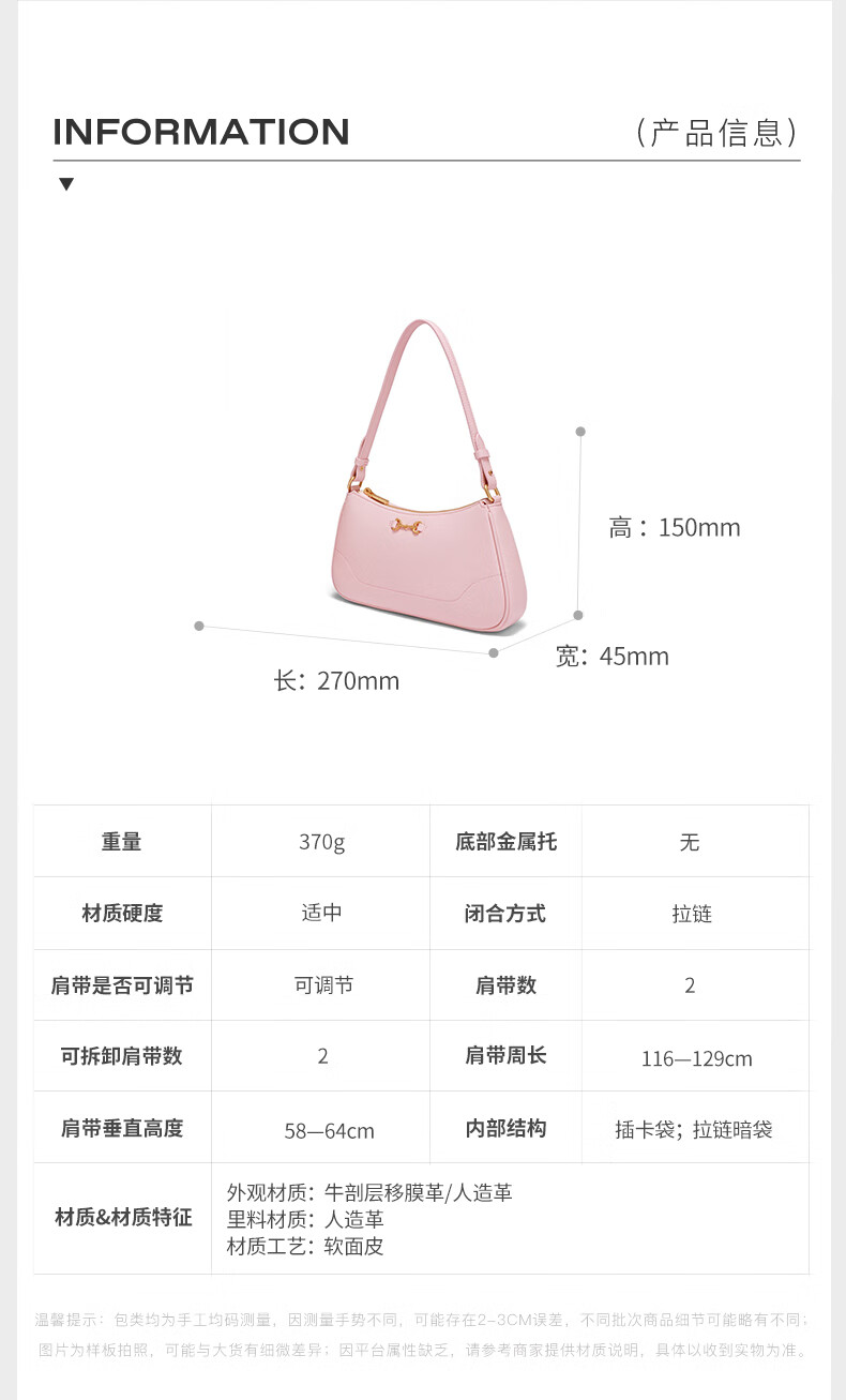 百丽包包女2023夏季新商场同款气质简约休闲通勤质感腋下包X6726BX3 米色 F