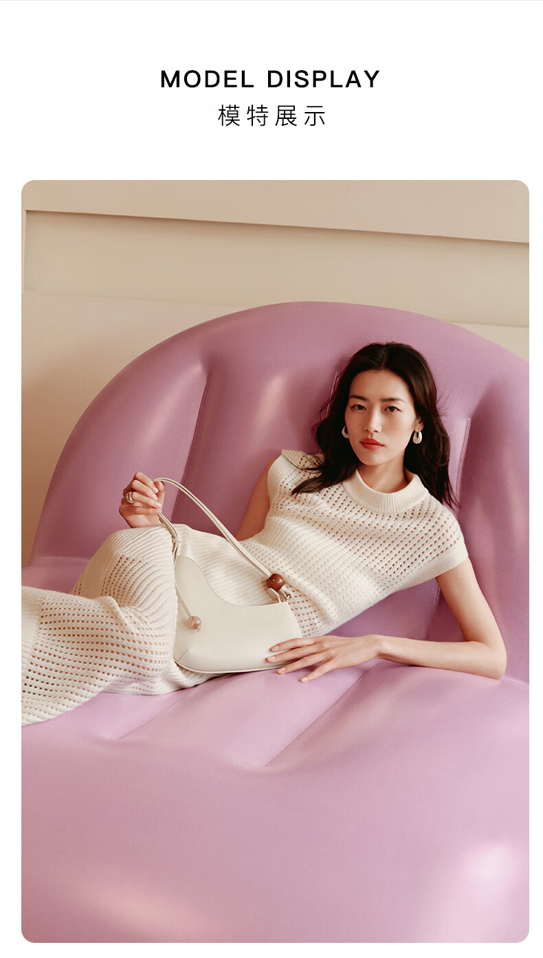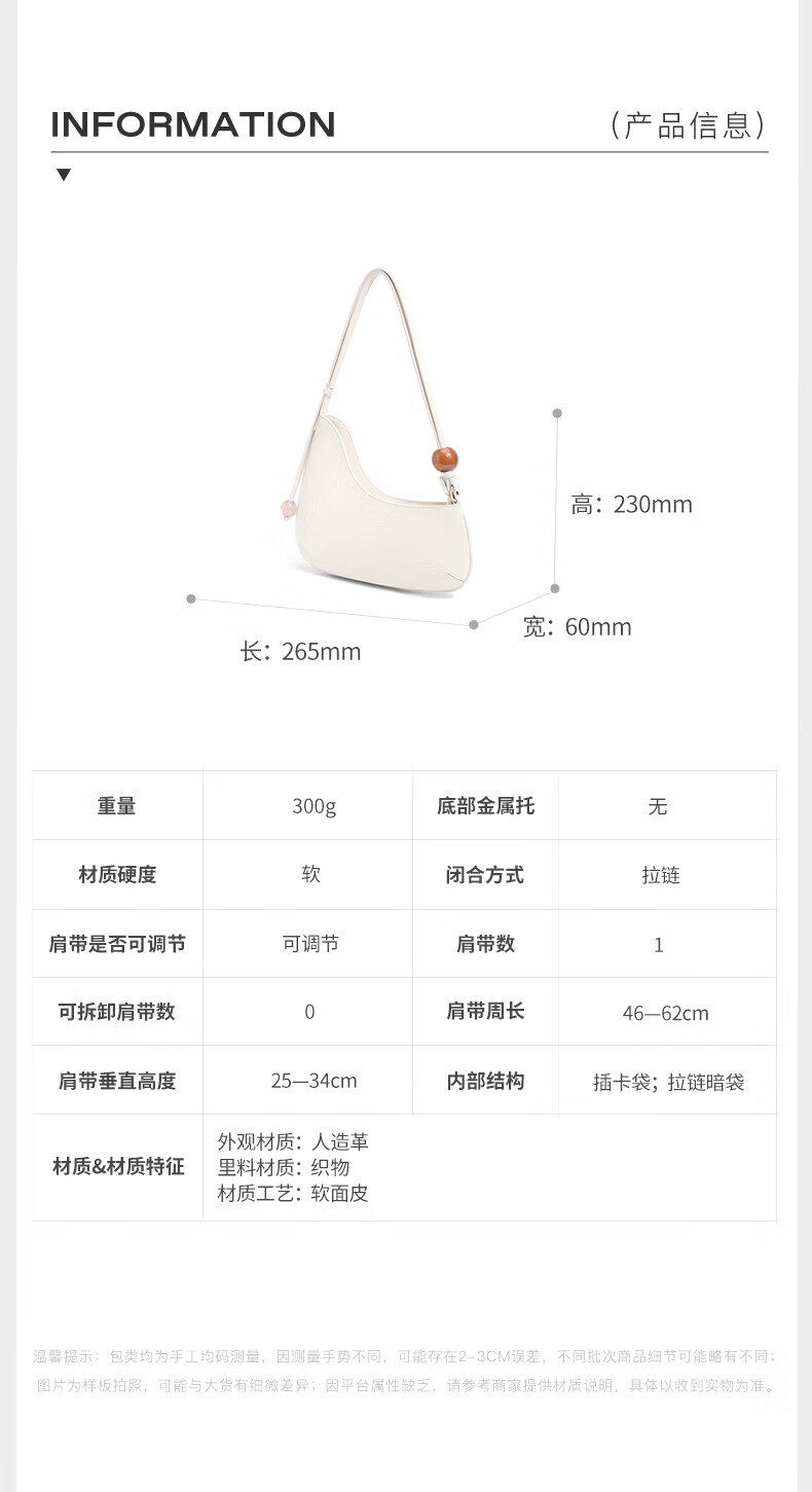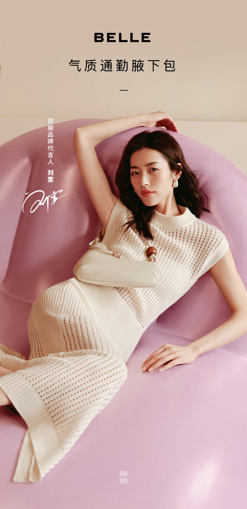 百丽【刘雯同款】女包2023夏季新商场同款简约质感通勤腋下包X9099BX3 米色 F