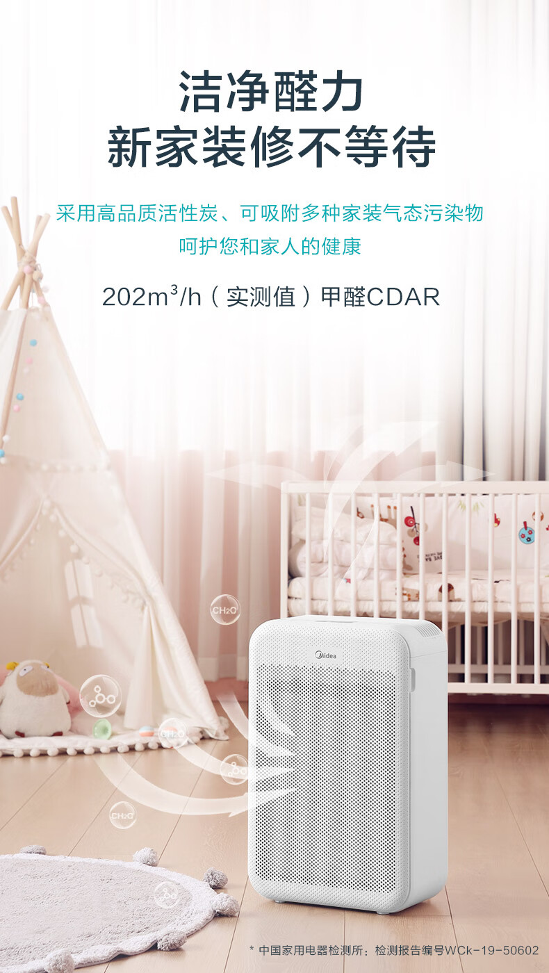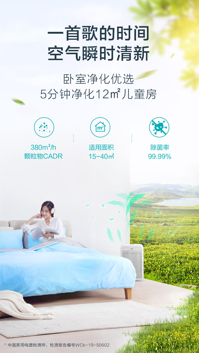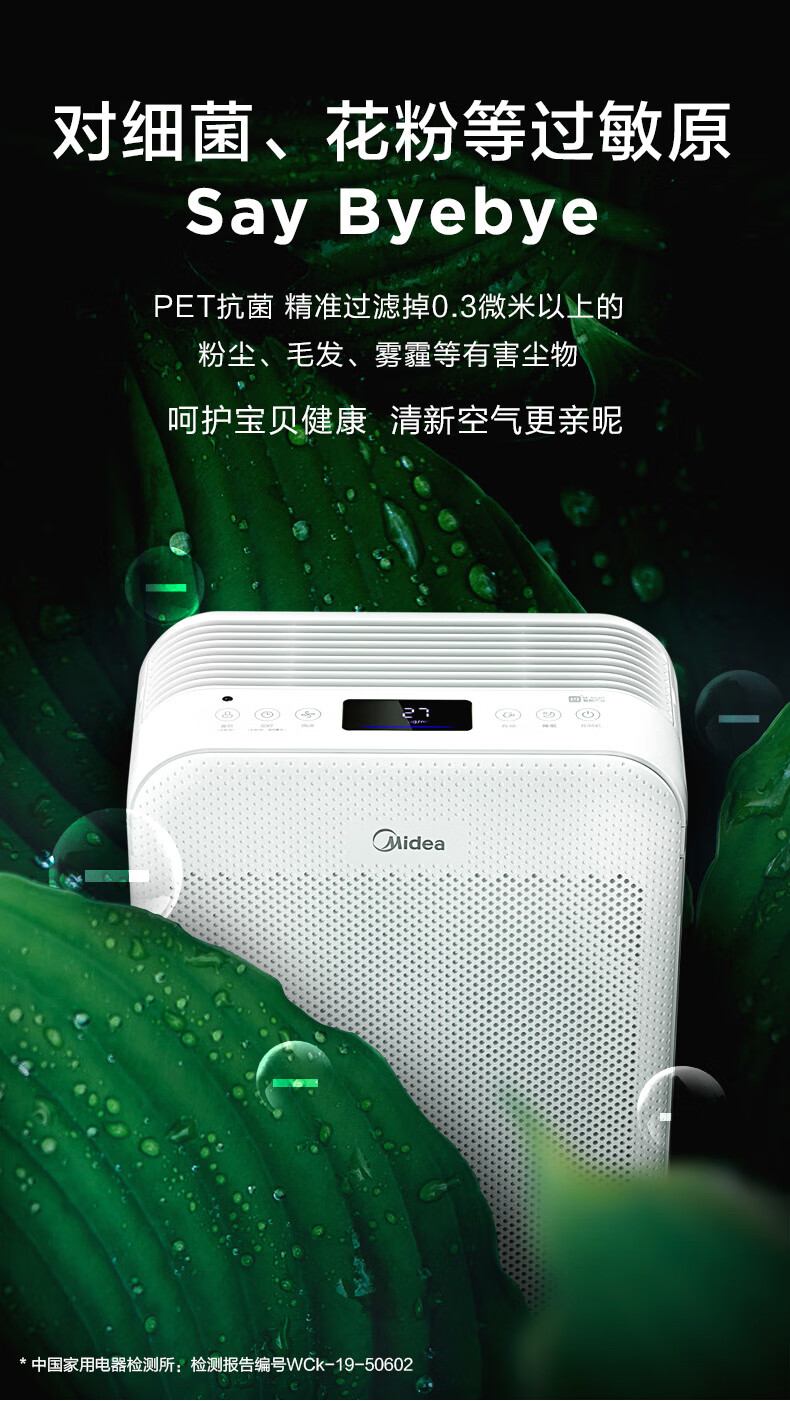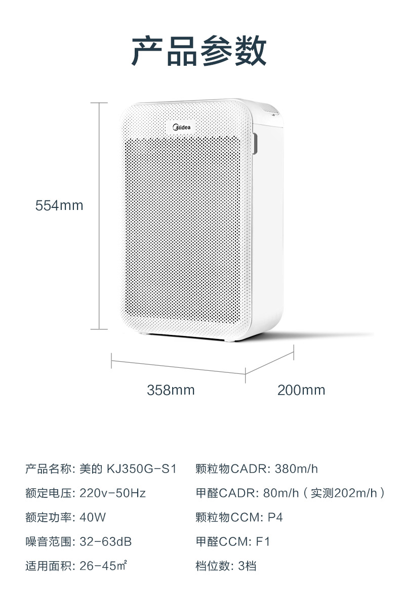 美的(Midea)空气净化器家用卧室高效除甲醛除菌异味除灰尘新风消毒机智能遥控 母婴卧室专用KJ350G-S1