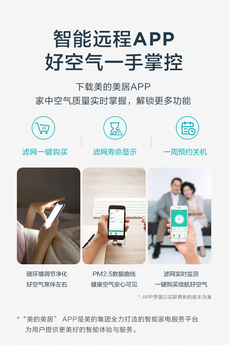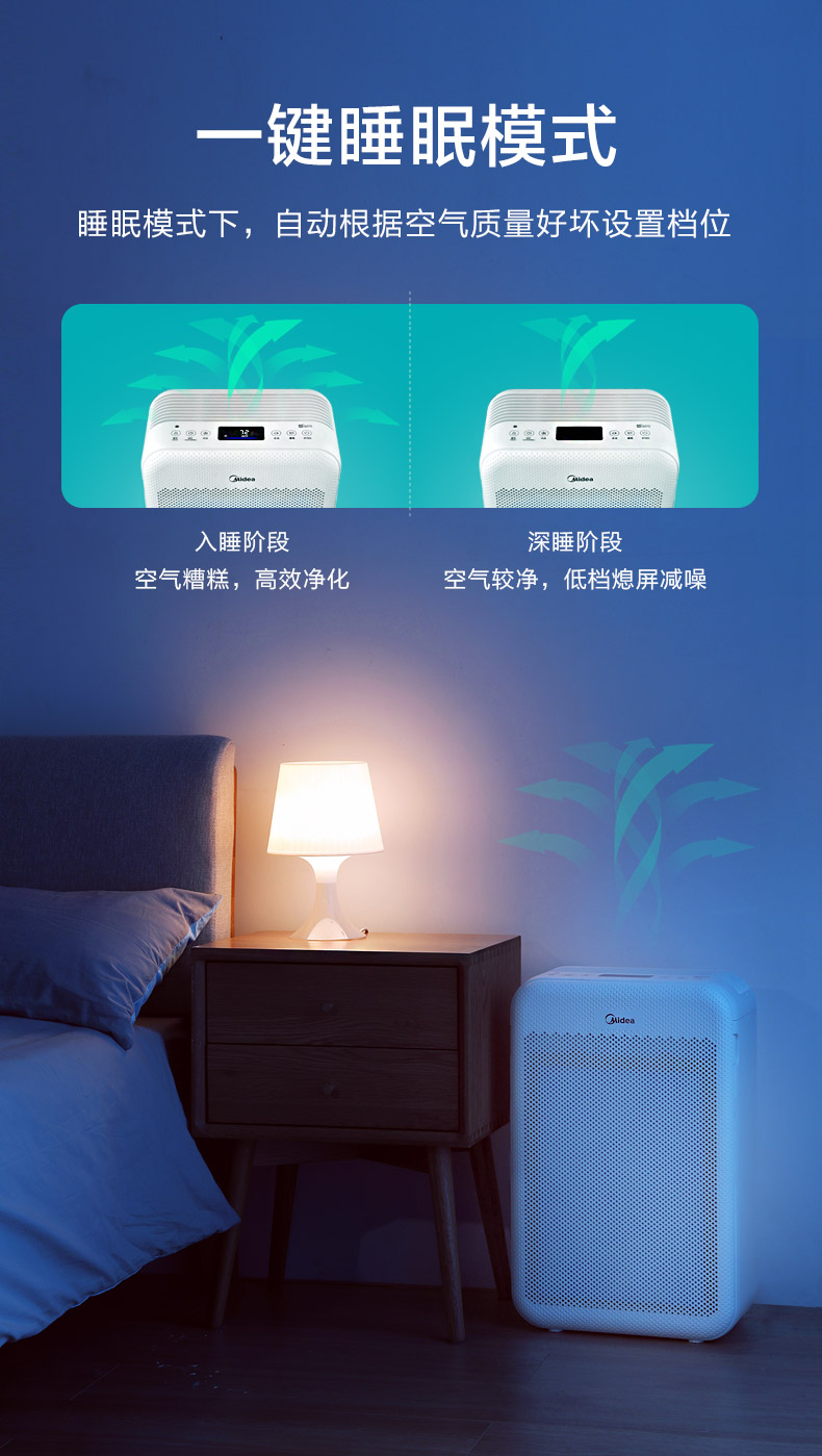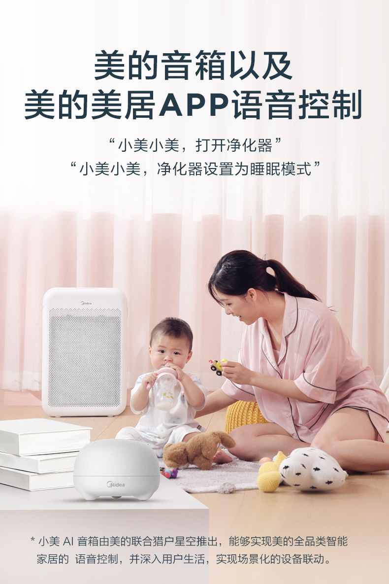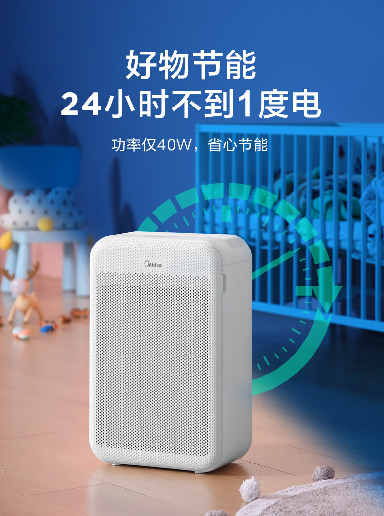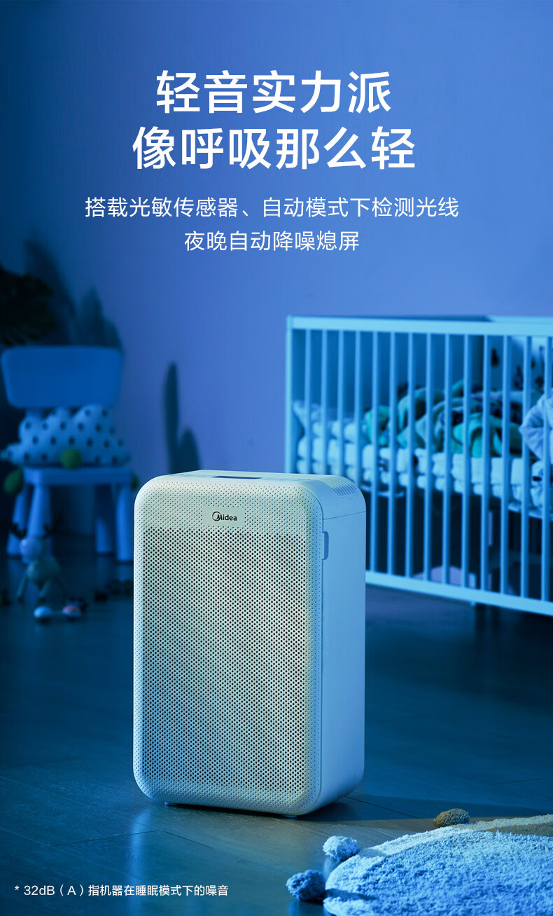 美的(Midea)空气净化器家用卧室高效除甲醛除菌异味除灰尘新风消毒机智能遥控 母婴卧室专用KJ350G-S1