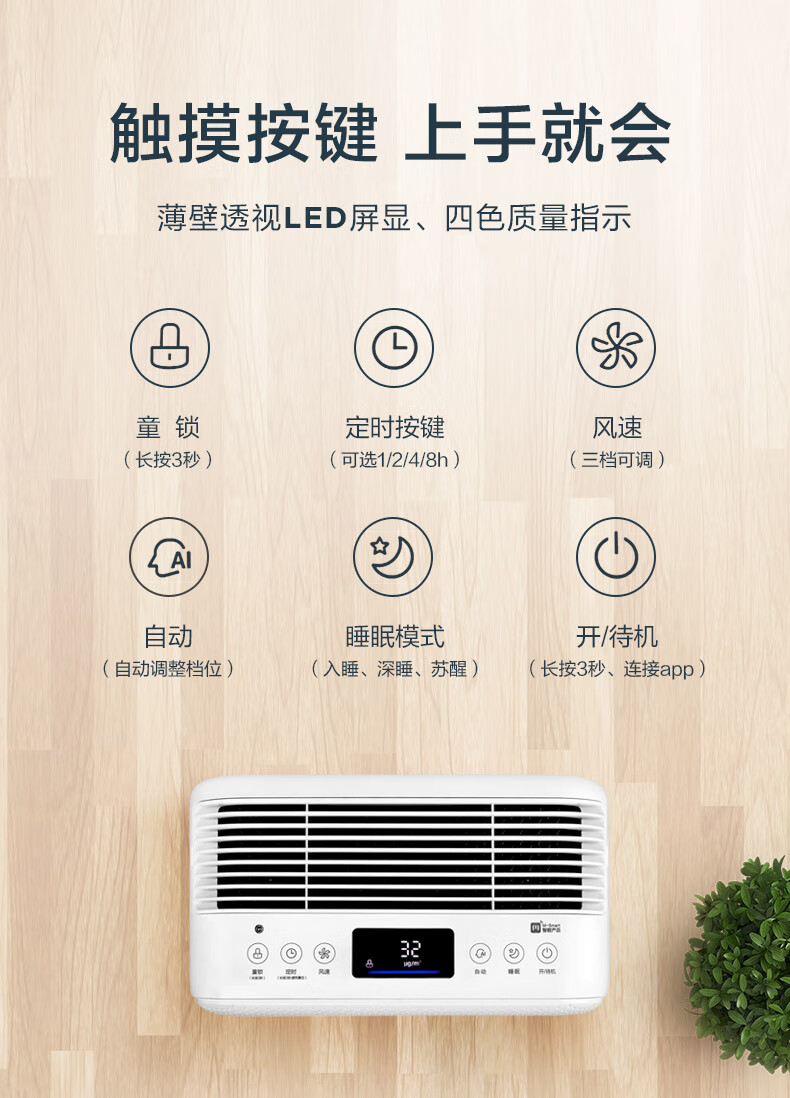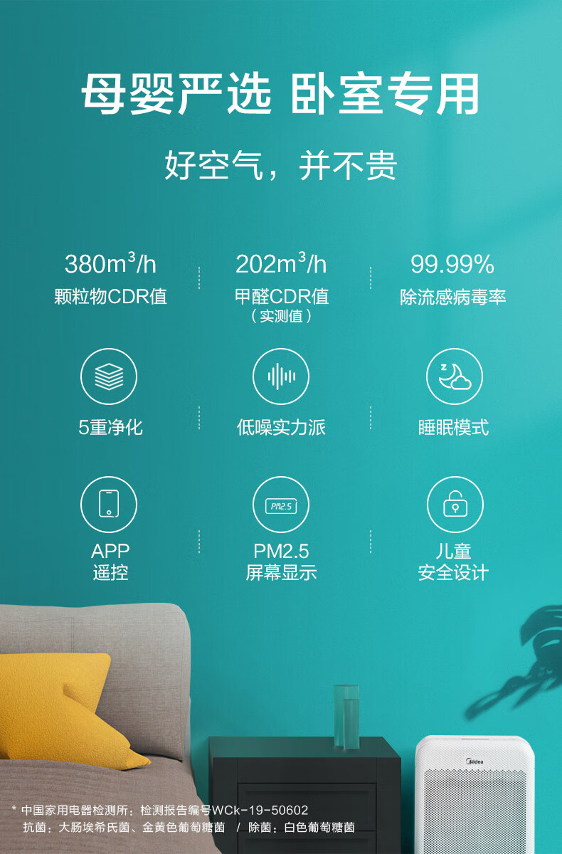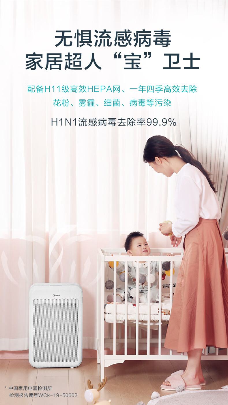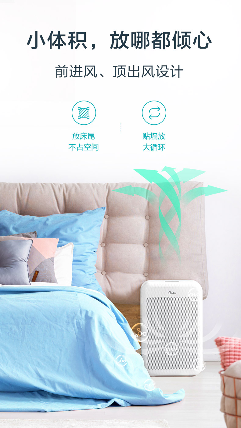 美的(Midea)空气净化器家用卧室高效除甲醛除菌异味除灰尘新风消毒机智能遥控 母婴卧室专用KJ350G-S1